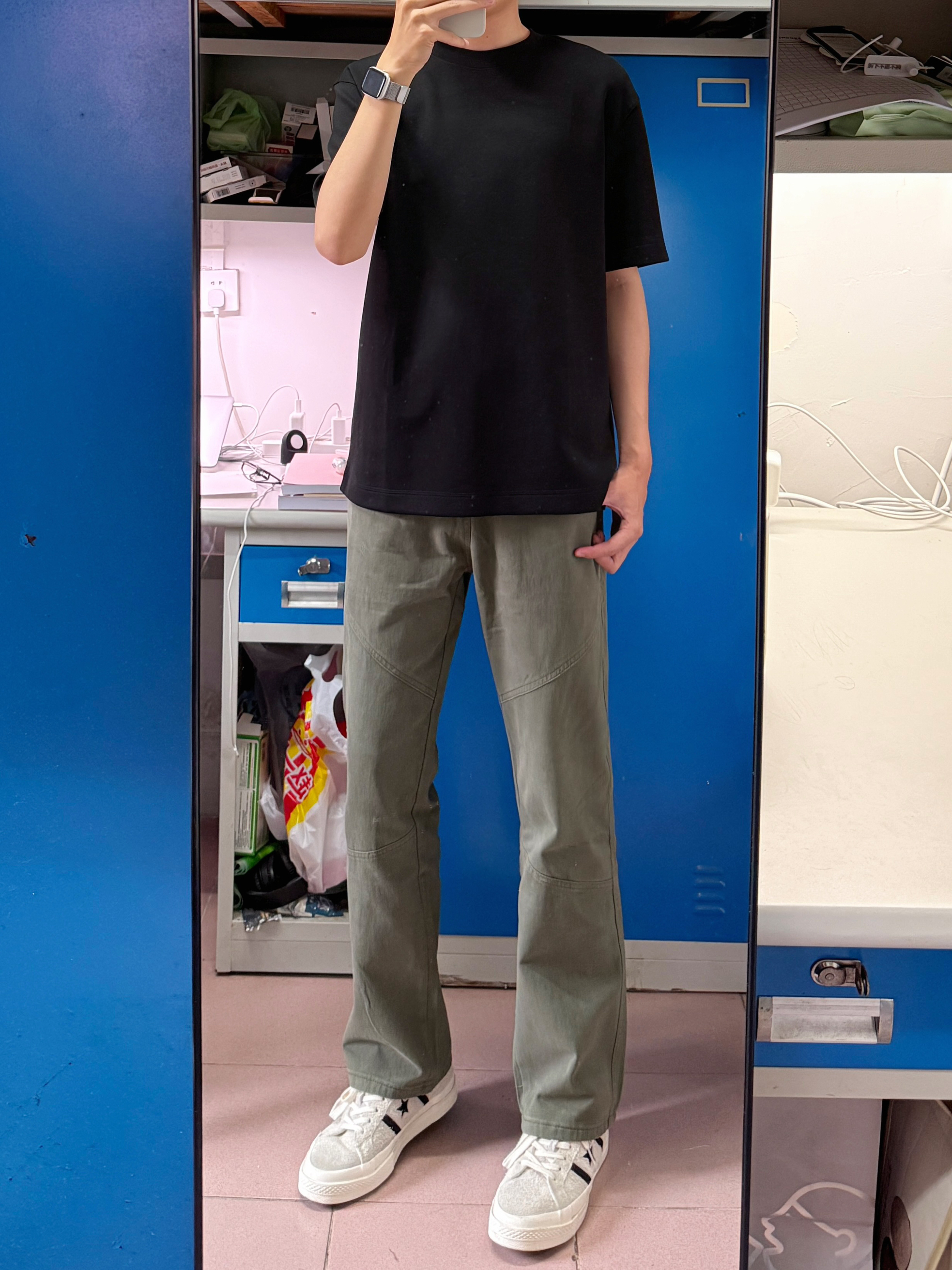 今天穿这条裤子👖 军绿色上身效果很不错,百搭又耐看🤩 真的很适合秋季户外出行穿搭 版型和质感都很好,日常也好搭配