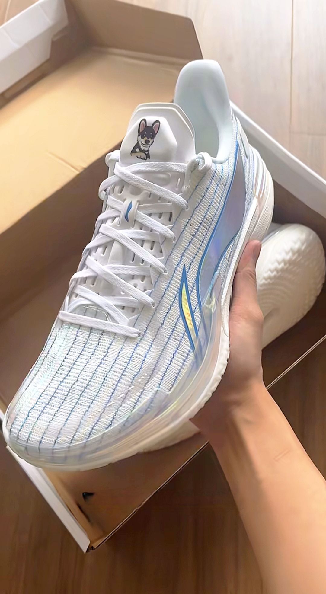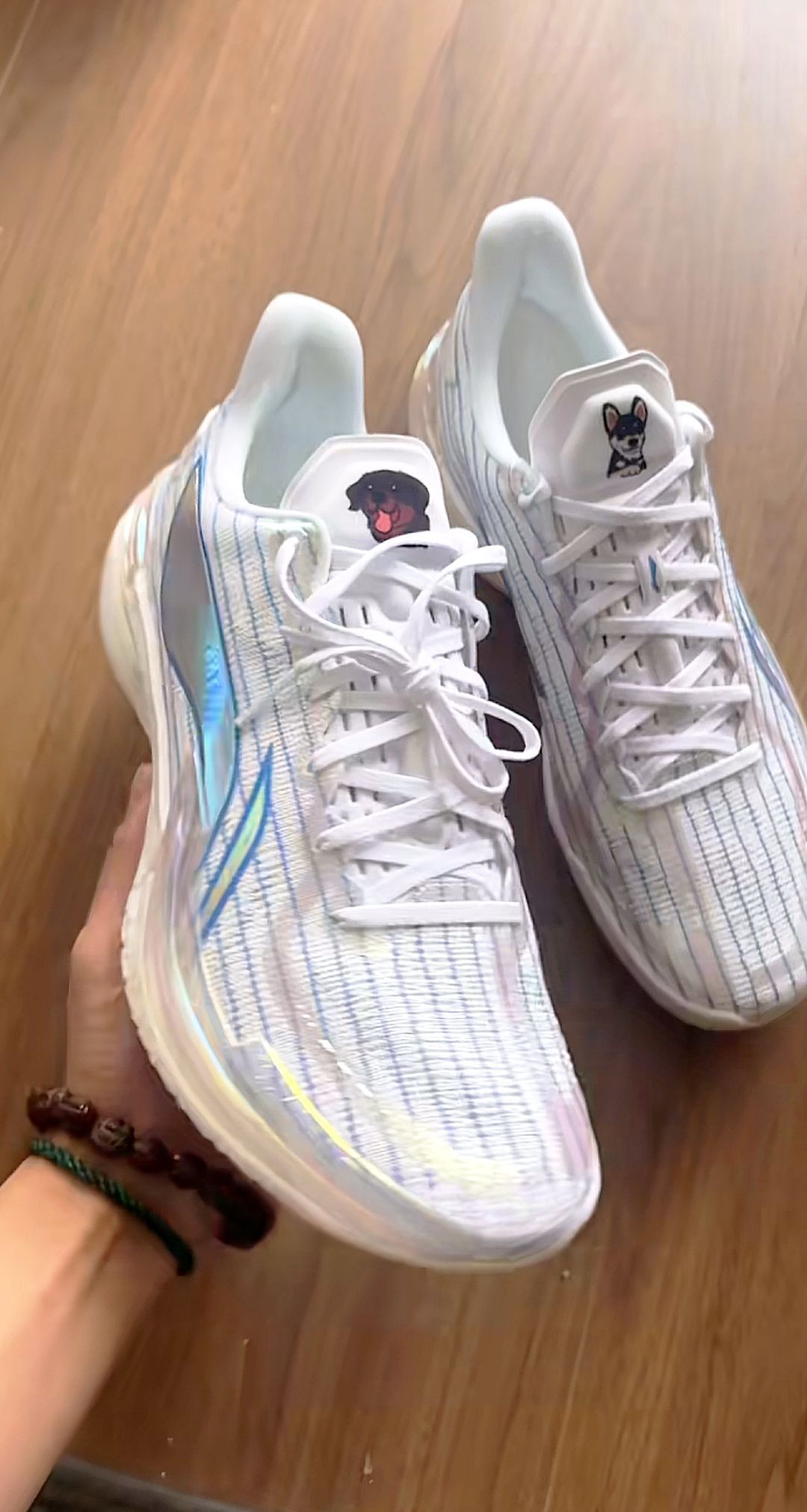 发现了一双特别帅的球鞋!鞋面编织纹理精致,线条利落又带点炫彩光泽,高级感拉满鞋标上的小狗图案超可爱,添了几分俏皮。配色清新又亮眼,上脚肯定又帅又能打,颜值性能双在线,谁看了不心动呀~无论是球场上实战,还是日常出街搭配,都妥妥的吸睛利器,妥妥的宝藏好鞋。 作为曾凡博PE在我看来简直是让伽马帅出了新高度!上脚脚感轻盈又贴服,编织鞋面透气不闷脚。缓震反馈利落,启动、急停很跟脚,支撑也到位,跑动中稳稳当...