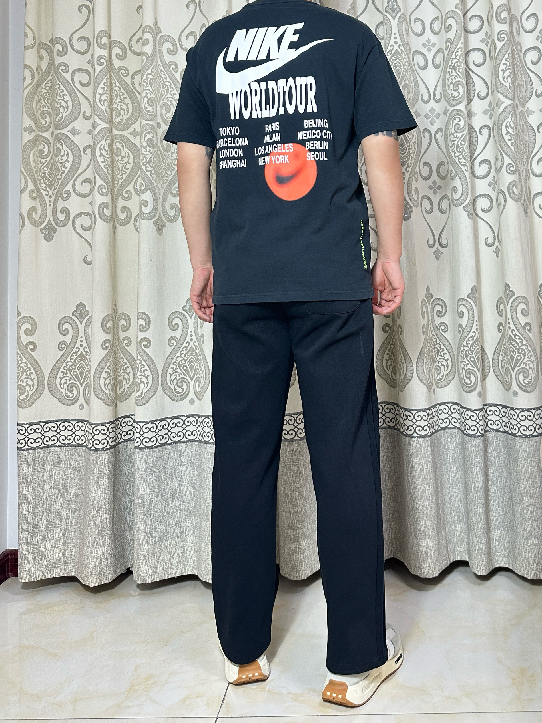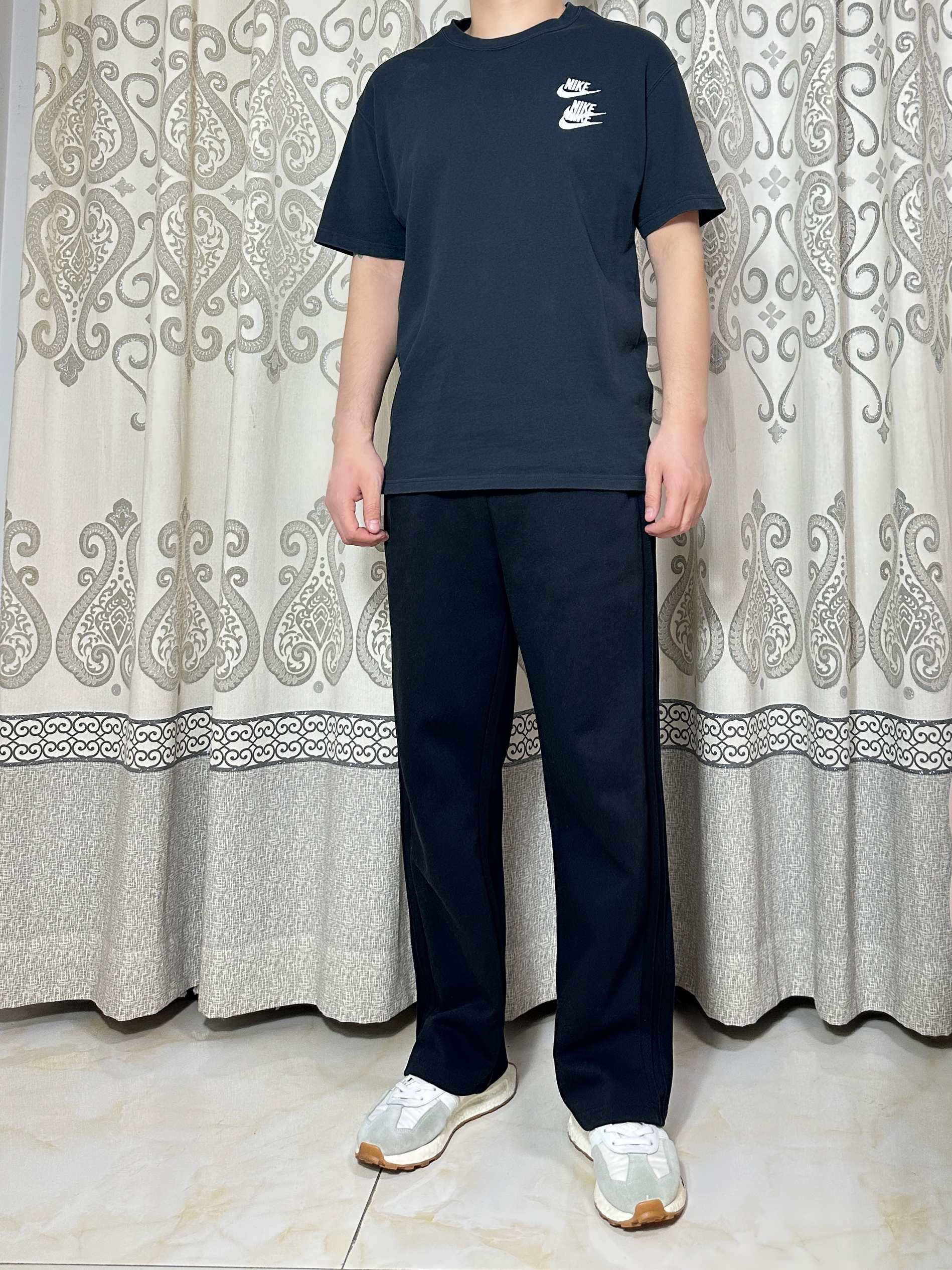 短袖是Nike的三钩短袖搭配一双adidas的爆米花休闲鞋就很帅气!