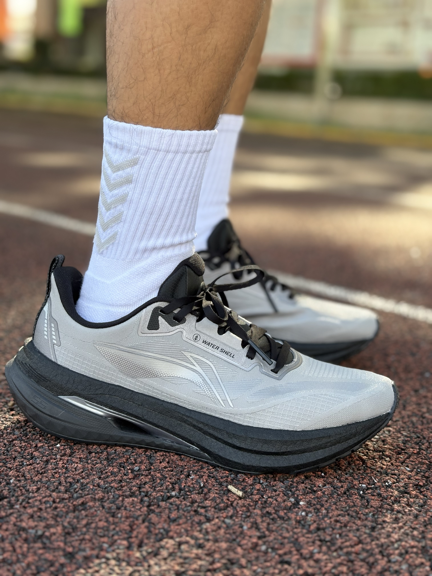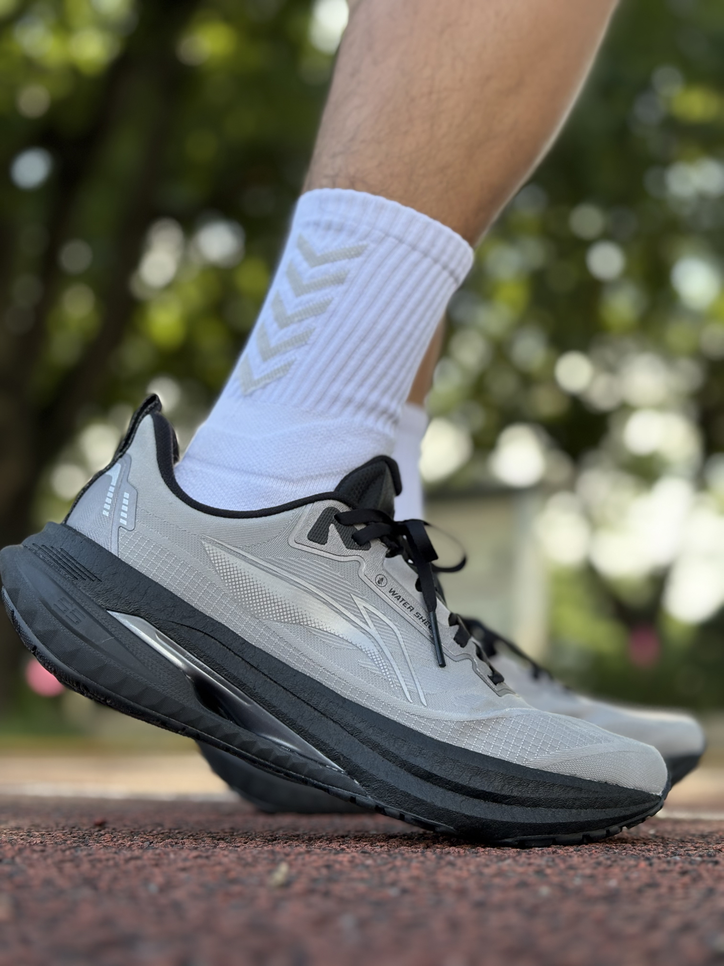 hello,这里是啊老铁吖!上次我们测评过 #李宁 吾适5s5.0,现在又出了一双吾适5.0防护版,总体做了一个升级! 这双鞋最主要的一个点就是,它的鞋面是防泼水的,我上脚之后用水测试了一下,防护功能还是蛮好的,下雨天跑步也能更轻松! 这双鞋还是用的全掌䨻科技,我穿起来感觉他的回弹更好了,过弯也非常舒适,对于日常跑步的人群应用很广,性价比也比较高!#聆听跑步的声音 #吾适5防护版 #学生党体测...