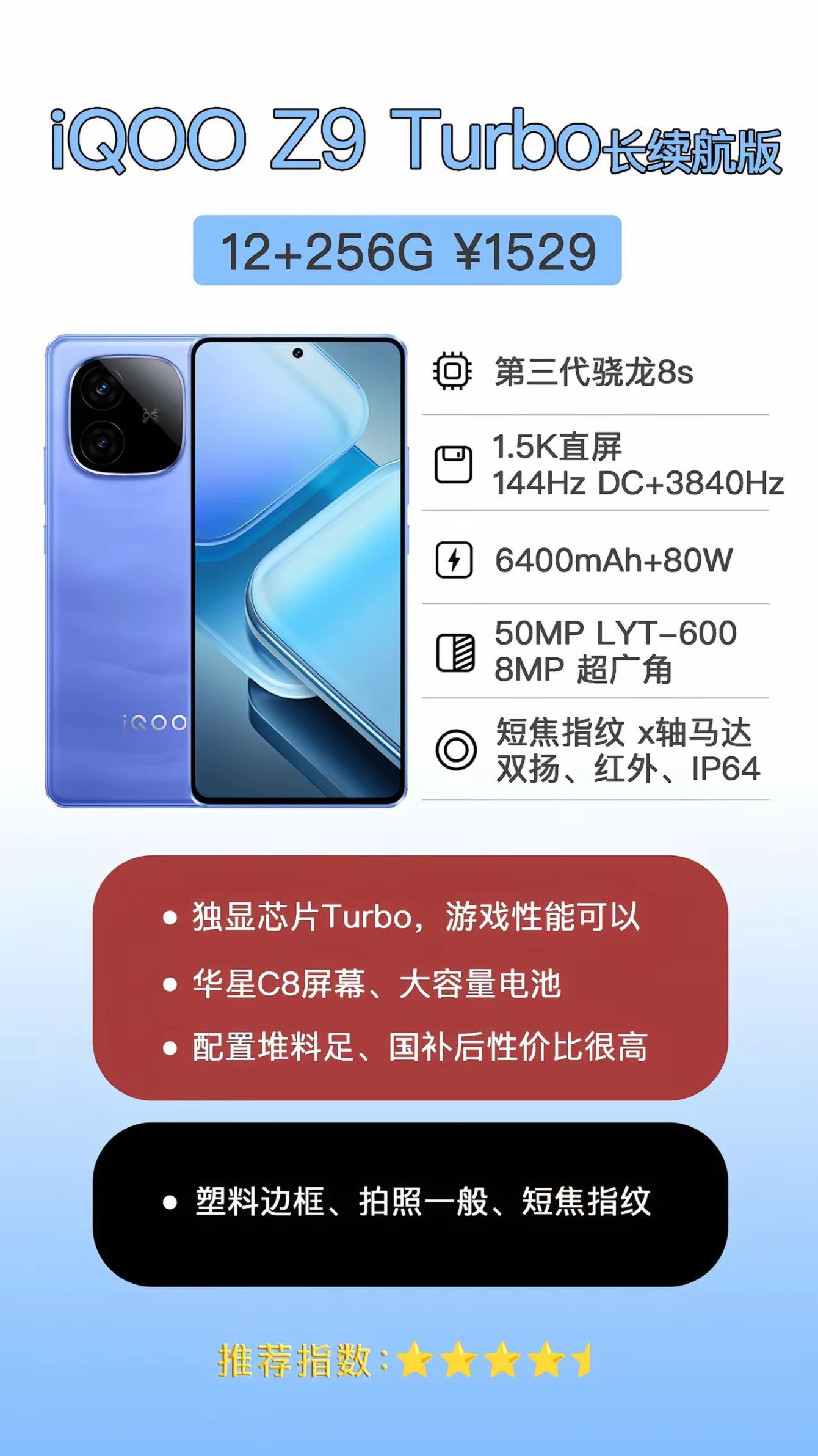 本篇笔记关联了iQOO Z9 Turbo+ 5G 手机 旗舰芯 全网通 大电池 自研电竞芯片 国补 天玑 9300+ 芯片 6400mAh 蓝海电池 星光白、OnePlus/一加 Ace5 5G 手机 游戏性能 东方屏 骁龙8Gen3 风驰游戏内核 6400mAh 冰川电池 引力钛、Redmi/红米 Turbo 4 5G 手机 大电池 国家补贴 天玑8400-Ultra IP68防水 NFC功能 3D冰封循环冷泵 长续航 全网通 浅海青等商品,为用户提供真实的使用体验和购买参考。