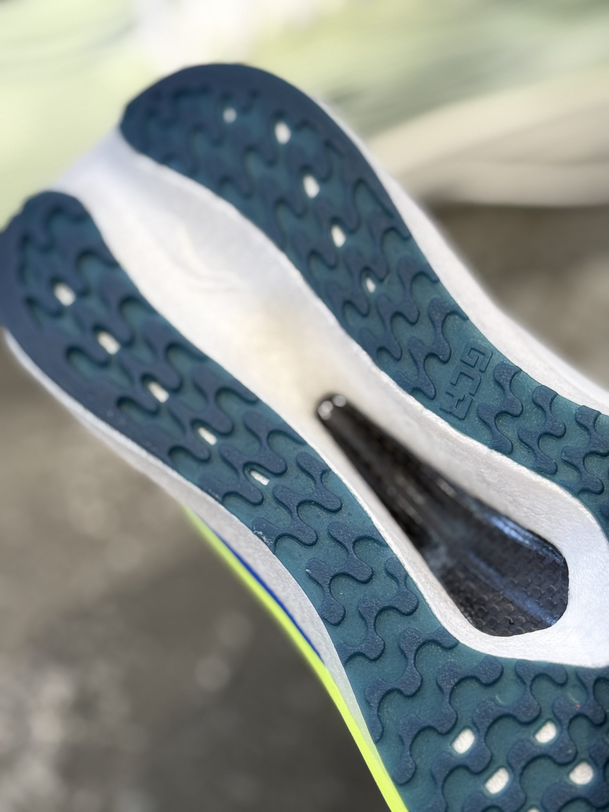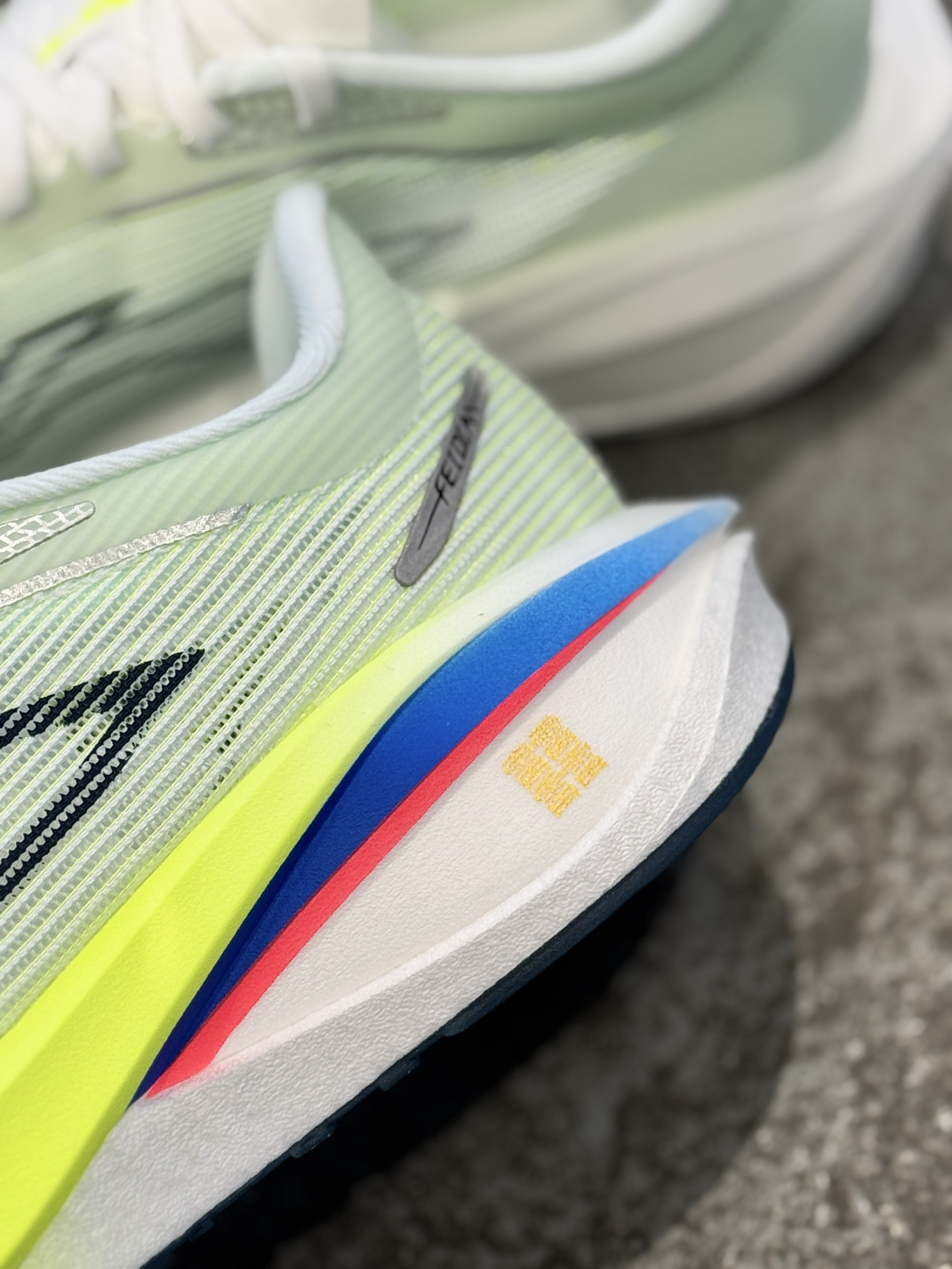 飞电5C是一双偏进阶的轻量竞训鞋。鞋面用䨻丝材质,轻透贴脚,高脚背需注意松紧。中底全掌䨻+铲形碳板,脚感偏韧,需要跑开才能释放回弹,适合配速430-530之间的节奏跑和间歇训练。碳板提供中足支撑,推进感不强但过渡流畅。大底GCR橡胶,抓地稳,前掌弯折区耐磨一般。适合有一定跑量、体重80kg以下的跑者,用于半马、全马训练或节奏课表。不适合大体重、新手或日常通勤走路穿。整体偏硬,是为跑而生的工具。