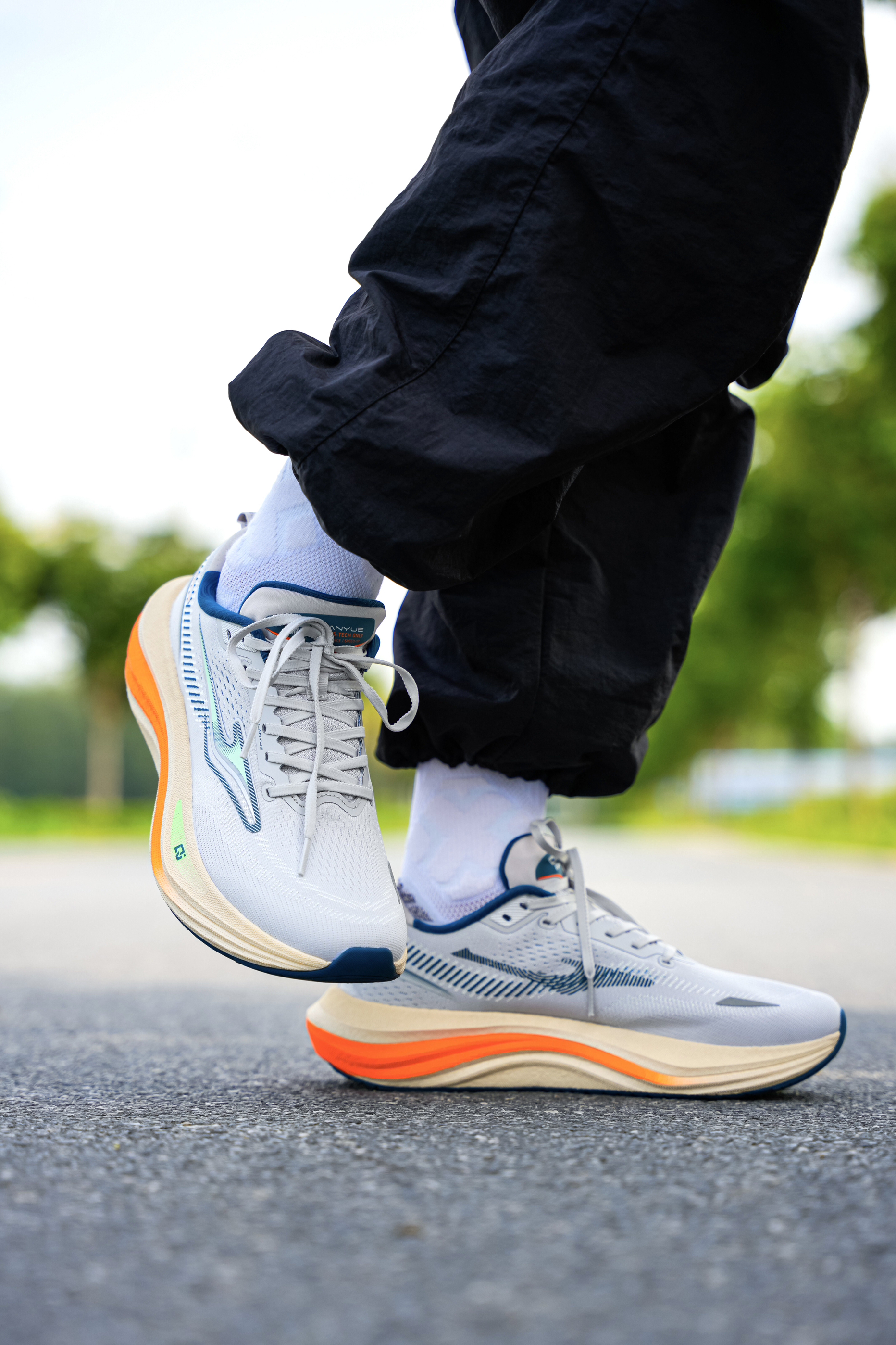 日常通勤我还是比较喜欢宽底,但没有板材的鞋! 上脚这双揽跃2,炁科技中底足够厚,我觉得脚感偏韧弹,不会软的很塌,缓震适合大体重!重量比较轻,穿起来也轻松。 贾卡鞋面比较舒服贴合,鞋楦空间大,适合宽胖脚 能感觉包裹好但不挤脚。 8mm的坡差,前后的滚动流畅 走路慢跑也不费力,加宽大底设计稳定性提升了,有保护减少崴脚… 我整体穿下来是挺不错,兼顾日常运动,尺码不偏