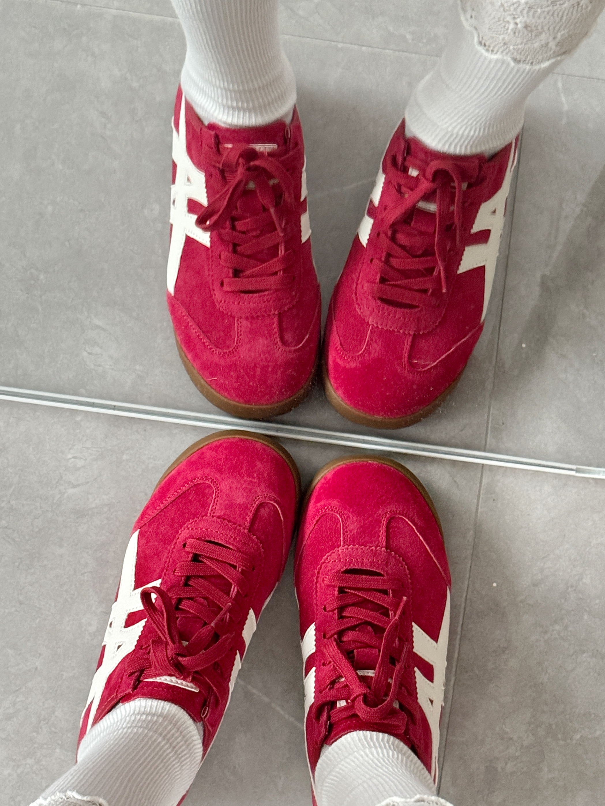 红色德训鞋复古又时髦 给日常穿搭点缀好吸睛百搭! 薄底上脚很舒服 好适合日常通勤 逛街出游穿呀🥰