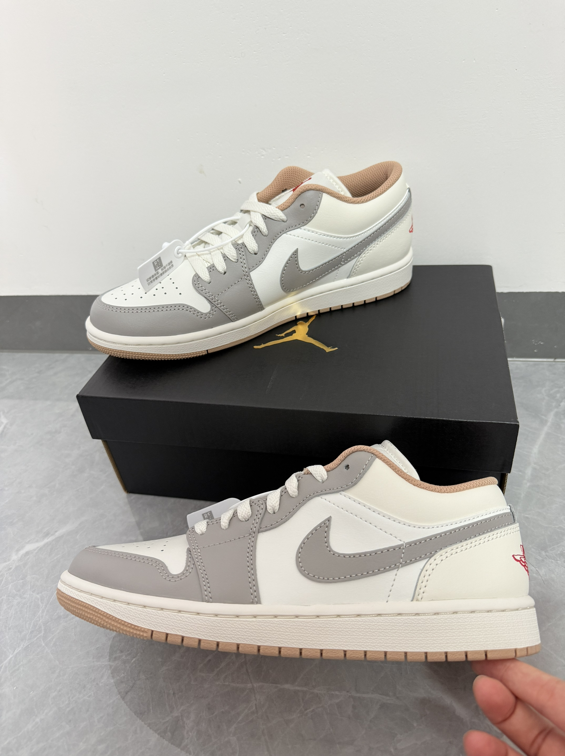 白灰粉调超温柔,经典飞人标加持🔥 低帮设计日常好搭,不管是配休闲裤还是牛仔裤都很绝~实物质感在线,细节拿捏👌穿出门妥妥吸睛,属于是穿搭宝藏单品