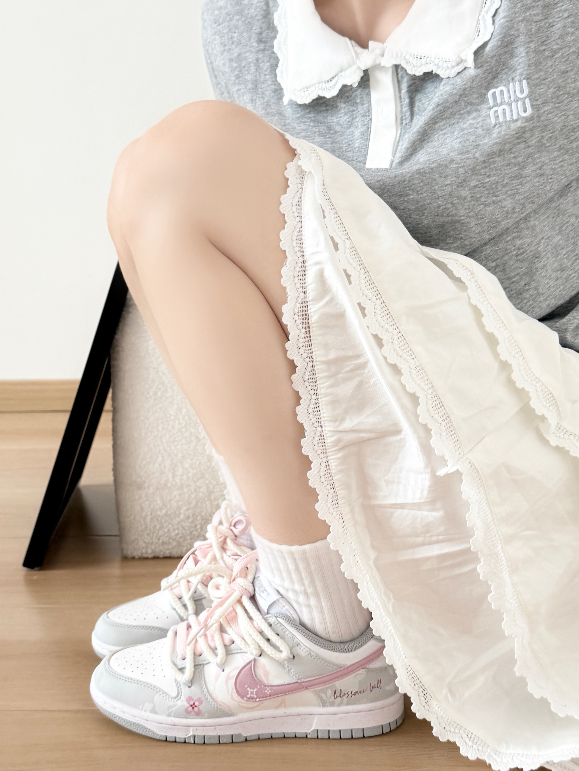 今天走粉粉嫩嫩甜妹风格🥰 低饱和度的粉色➕灰色,特别的干净清爽 像素风的小涂鸦可可爱爱 双鞋带的设计 系法有很多 姐妹们可以自己研究一下~ 薄底鞋走路也很舒服的哦🥰