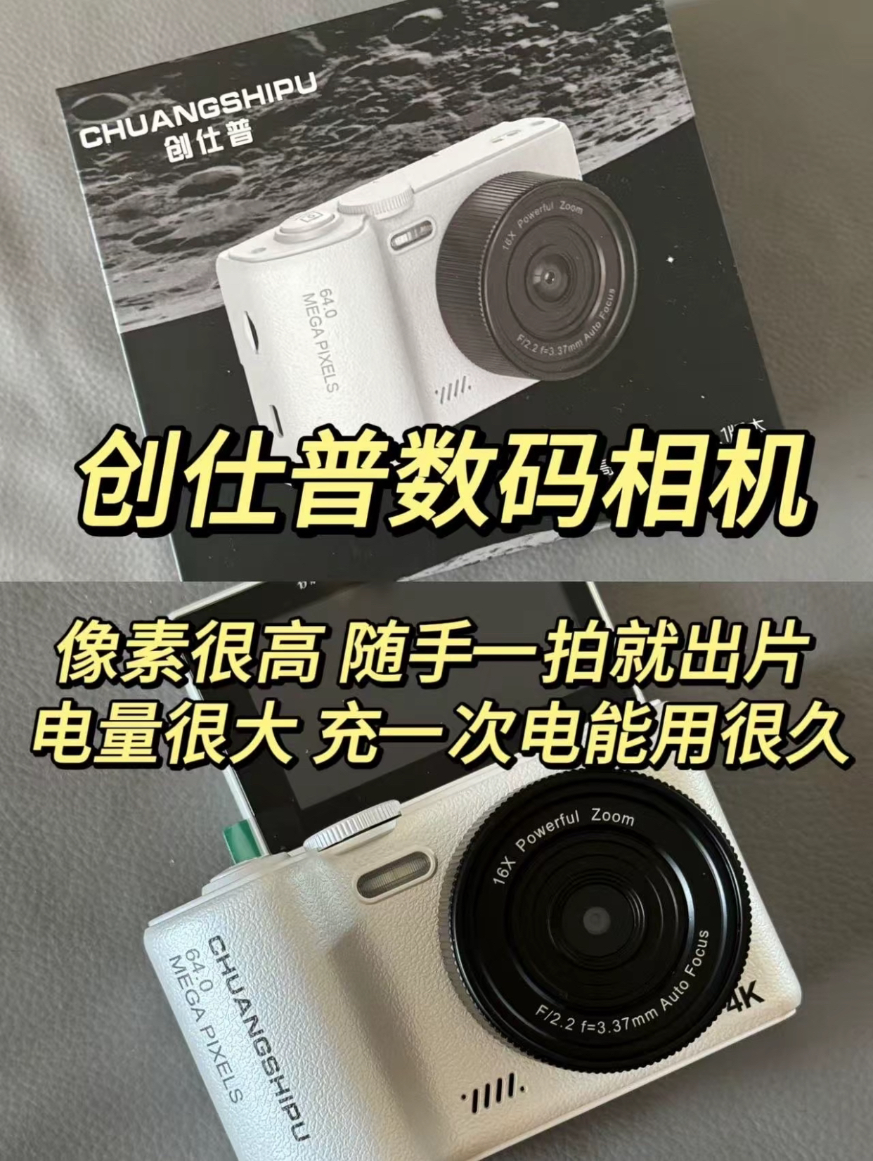 1.创仕普数码相机 这款相机我拿到手的时候就爱不释手了 ,他的像素很高,我用它随手一拍就出片了,而且电池容量很大,我充一次电能用很久呢,我现在出门旅游拍照都带他。 2.DIOR小猫跟高跟鞋 这款高跟鞋真的很好看,经典的配色,我不管穿什么风格的衣服都很百搭,而且鞋跟很高,我穿起来很显腿长呢。 3.梵克雅宝手链 这款手链我第一眼看到就很喜欢。金色的链子,我戴起来很显白,而且手链很轻,我戴时间长不会很难...