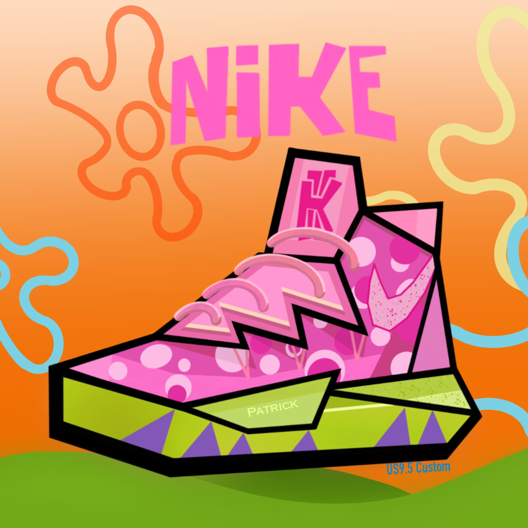 是海绵宝宝和派大星呀,欧文5的海绵宝宝和派大星配色一直都是我的最爱,爱到我不舍得把这双鞋(mei)买(qian)下(买)来,于是我就吧它画成插画,希望大家喜欢 我是姜哎呀,一个不出名的球鞋定制师,我喜欢穿球鞋买球鞋画球鞋 欢迎关注我工作室的微博 US9.5Custom