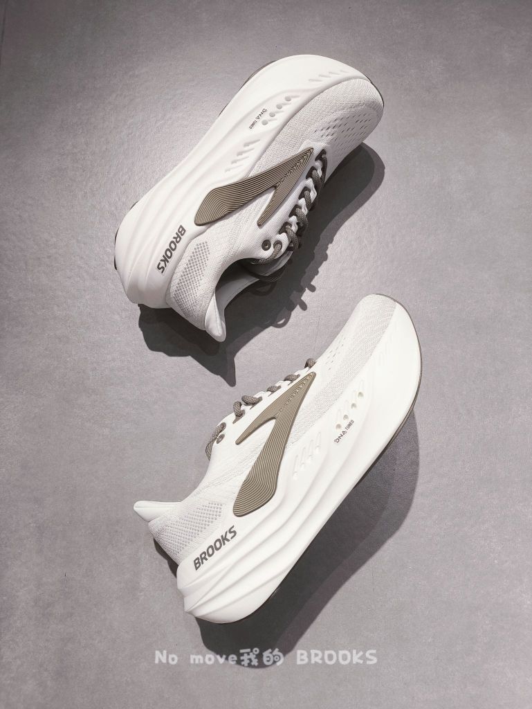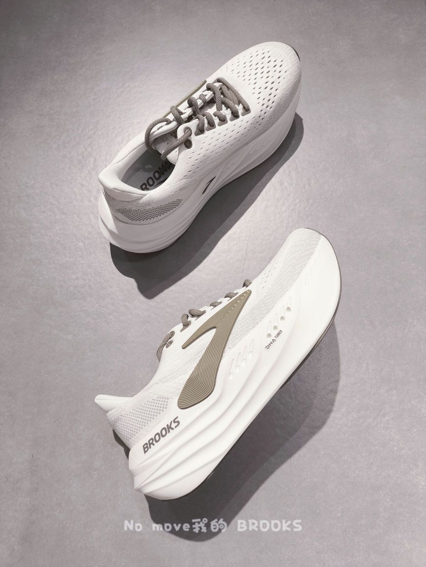 家人们,不会还有人不知道Brooks Glycerin Max吧!直接被它狠狠拿捏🤌 🎈外观简约大气,线条流畅,配色清新又百搭,日常出街穿完全没问题。鞋面是工程网眼布材质,透气一绝,跑再久脚都能保持干爽。包裹性也超棒,贴合双脚还不磨脚,高脚背的宝子放心冲👌 👣重点夸夸它的中底!采用DNA Tuned双重分子注氮技术,后跟的大分子颗粒,提供了满满的踩屎感,落地的时候就像踩在云朵上,缓震超绝,...