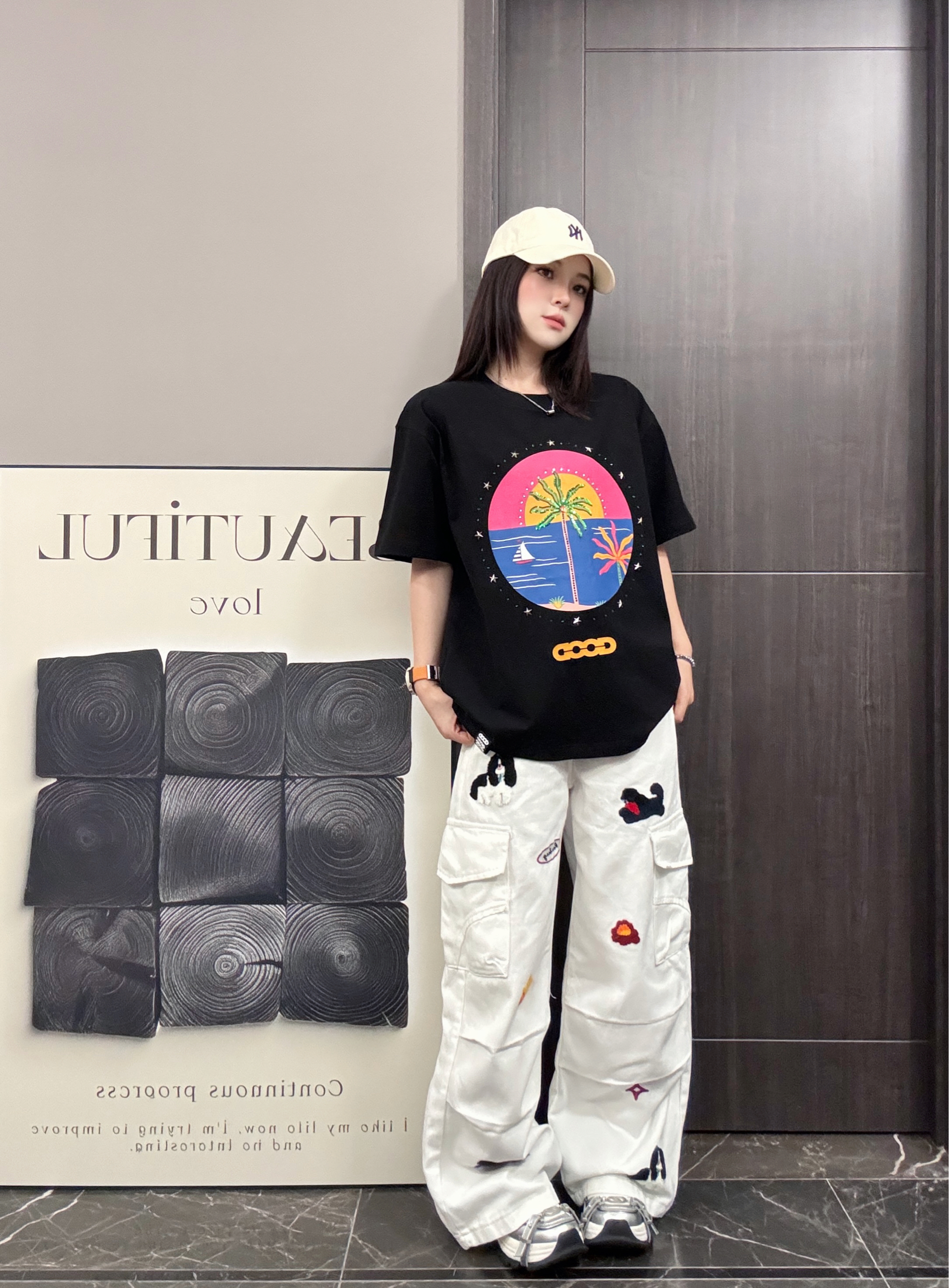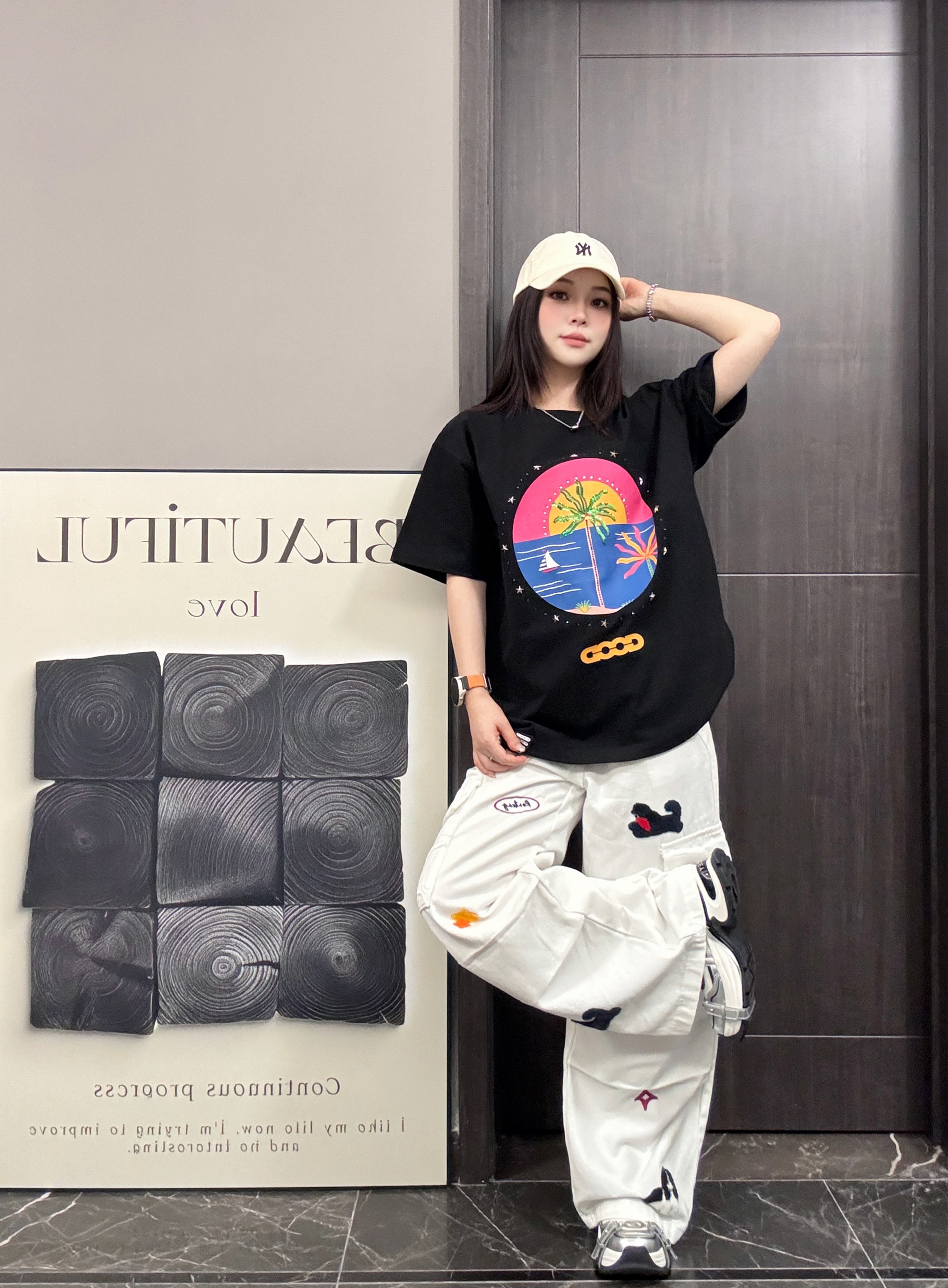 今日份酷girl👧出街喽👏 黑白穿搭不费力的松弛感💯 GOOD T恤色彩搭配也太夏天了🔵 前后都有字母logo印花潮流感拿捏🫴 重量和质感都很在线💕 ✨随便搭配了一条阔腿裤 又是松弛感满满的一身🥳