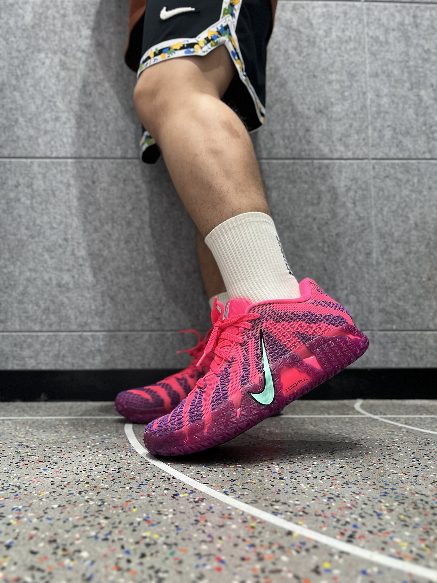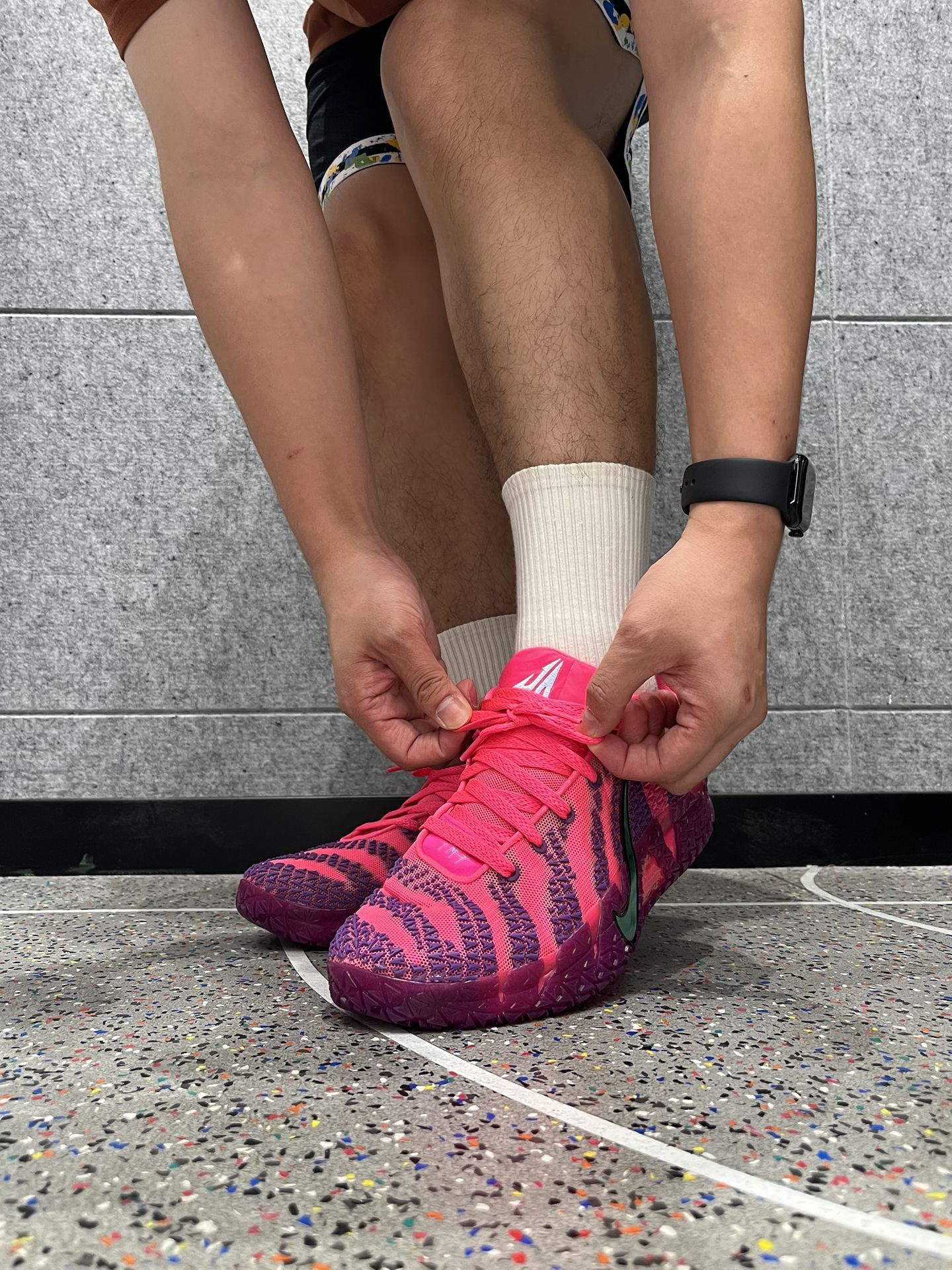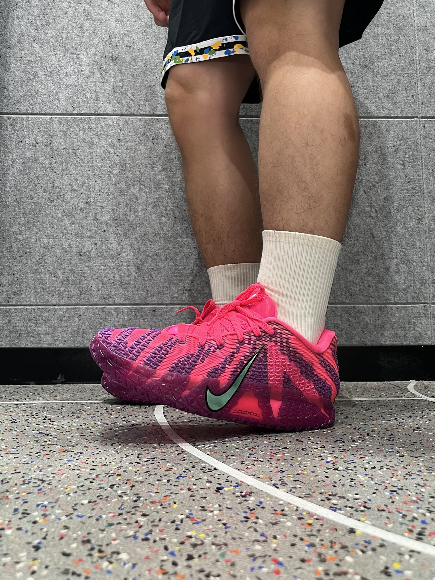 开学返校穿哪双球鞋?这双莫兰特3代,玫红紫配色,大胆的亮色,可以实战可以配短裤出门~ 鞋面的满印很个性但不刮手,全掌ZoomX不用磨合即穿即可感受到软弹,个人感觉脚感略胜前两代~ 鞋头没有很明显拇外翻,但初穿略压脚背,中段包裹紧,整体重心偏高,需试穿多感受一下。 #新鞋零时差 #暑假球鞋穿哪双 #球鞋真心话 #开学先迈哪只脚 #2025年中球鞋大盘点