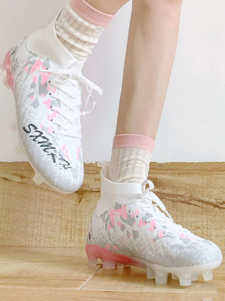 这双足球鞋颜值在线 少女白桃粉配色🍧 实物hin好看!上脚穿着粉嫩嫩滴~ 穿着打球⚽️都动力满满呀 脚感尊的不错,尺码也挺标准滴 #七夕礼物推荐 #开学先迈哪只脚 #球鞋推荐