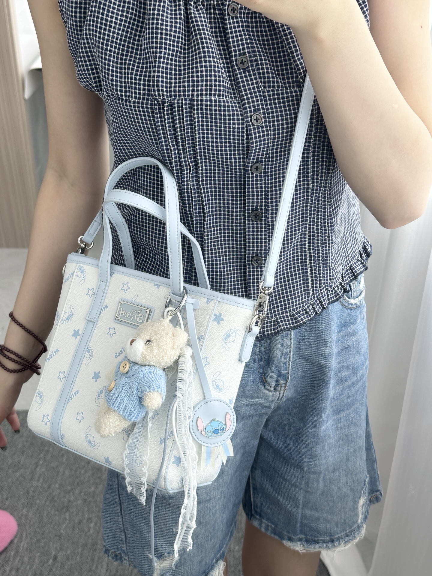 本篇笔记关联了Disney/迪士尼 史迪仔系列 学院风时尚简约PVC卡通可爱逛街约会单肩包斜挎包菜篮子包手提包 蓝色等商品,为用户提供真实的使用体验和购买参考。