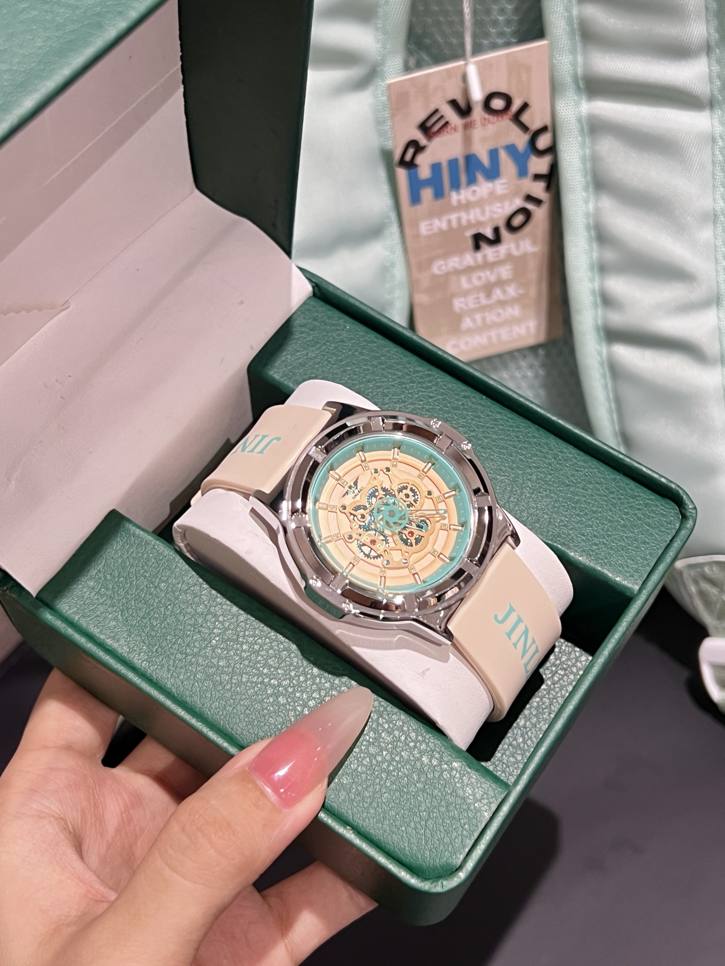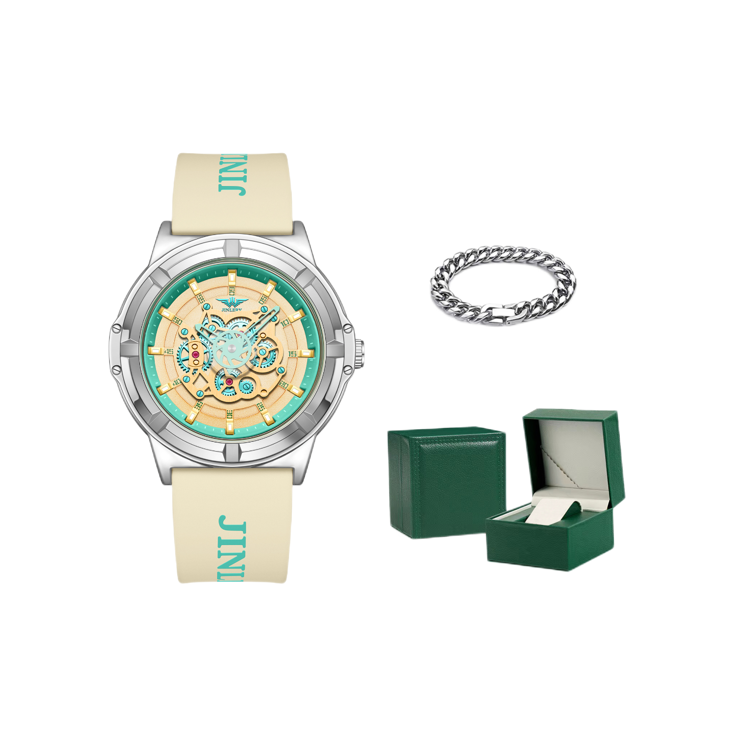 本篇笔记关联了JINLERY/精利 40mm橡胶表带机械风高颜值大学生潮流休闲个性百搭石英男士手表 【礼盒装】黄绿色 J8013J3等商品,为用户提供真实的使用体验和购买参考。
