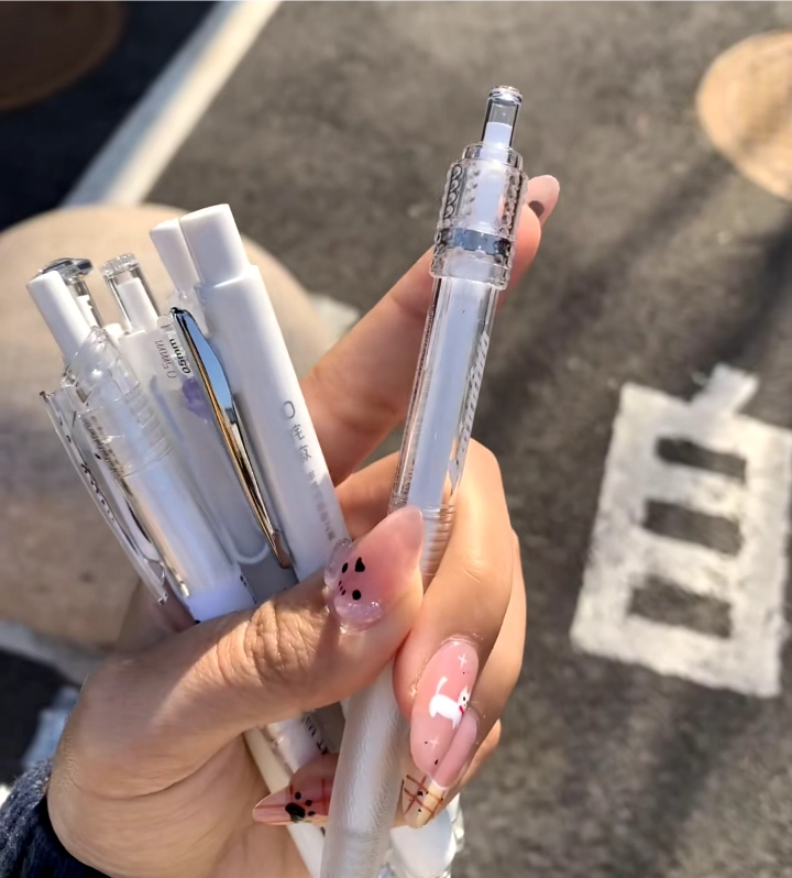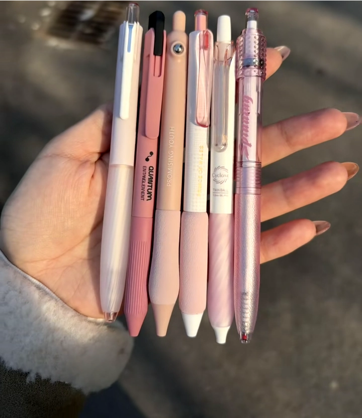 朋友安利的按动笔真心好用👍! 颜色超多很少女心💖,写起来流畅不断墨。按动声音小 唯一不足是笔身塑料感略强,总体很值~
