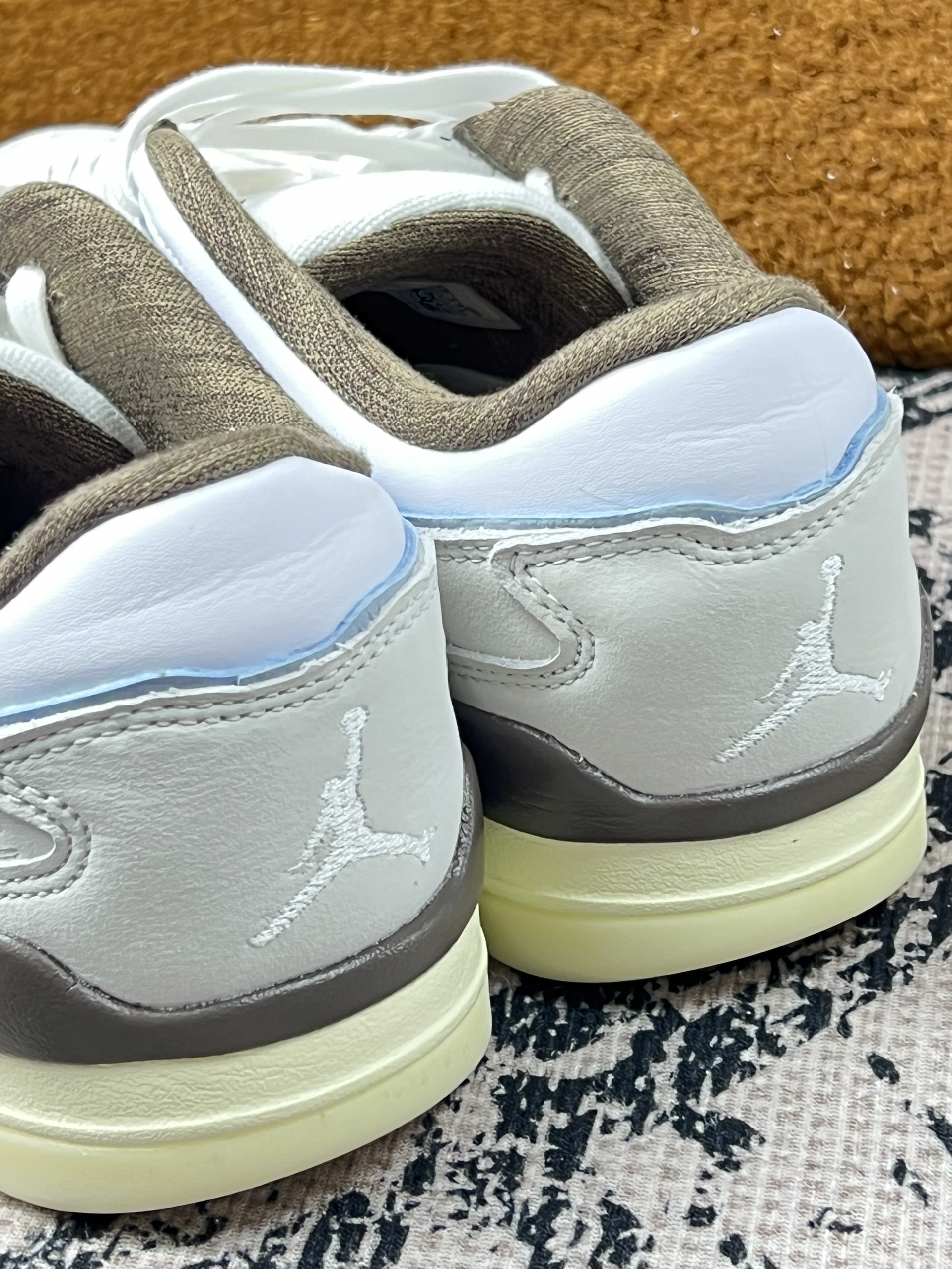 这双AJ外观很吸睛,以浅蓝色牛仔布为主,搭配深蓝色的牛仔拼接设计,再加上简洁的白色鞋底,整体洋溢着清新又随性的牛仔风情,还有经典的Jumpman标志点缀,细节精致,设计感十足 上脚后,舒适度还行,走路时脚底不会有硌脚的感觉,日常通勤完全能hold住。不过它的缺点也挺明显,牛仔布材质相对不耐磨,穿久了容易出现磨损痕迹 ,而且清洗后可能会有轻微掉色。另外,鞋子的透气性一般,夏天长时间穿着,脚会有点闷...