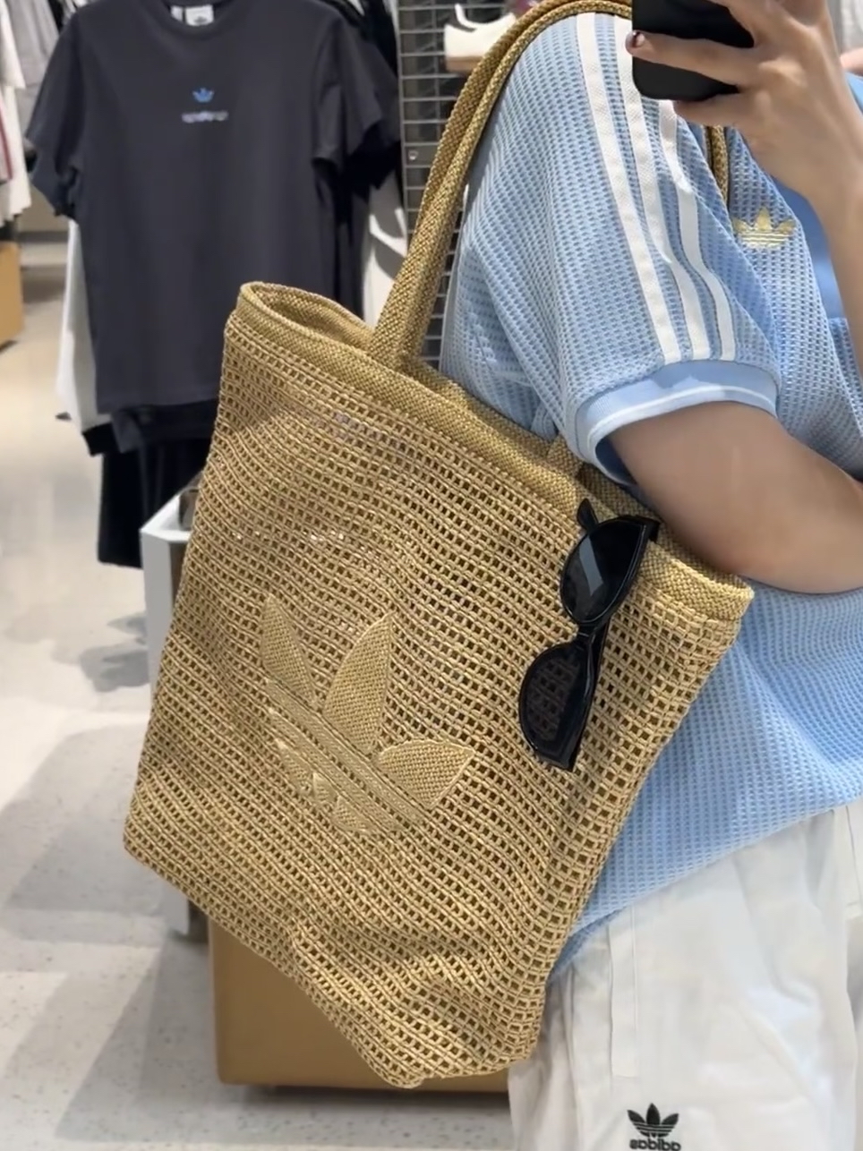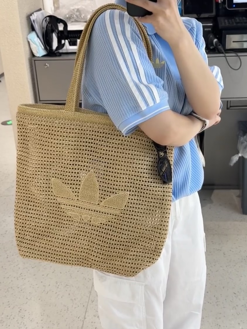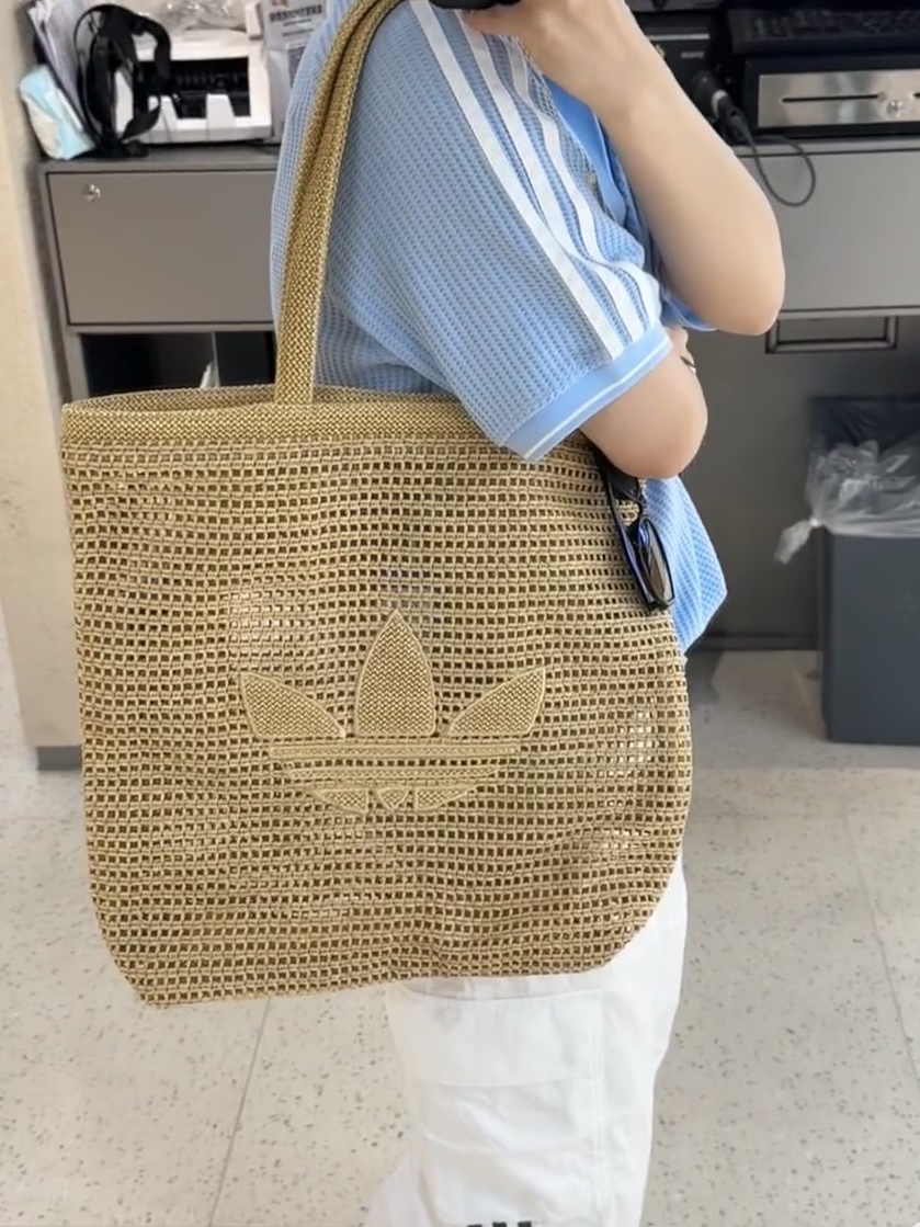 我最近挖到了超适合夏天背的包包😍。简约的托特包型,编织材质很有度假感。经典品牌徽标点缀很吸睛👀。它容量大,日常出行的东西都能装下🤗。用的是可再生材质,环保加分👏。不过包没有拉链,物品安全性欠缺些,总体而言很值得入手~