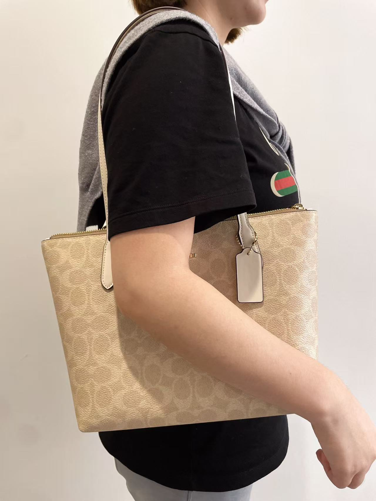 本篇笔记关联了Coach Fiona 24 中号 品牌印花金属Logo帆布拼皮革手提购物袋托特包单肩包 沙黄色拼粉笔白色等商品,为用户提供真实的使用体验和购买参考。