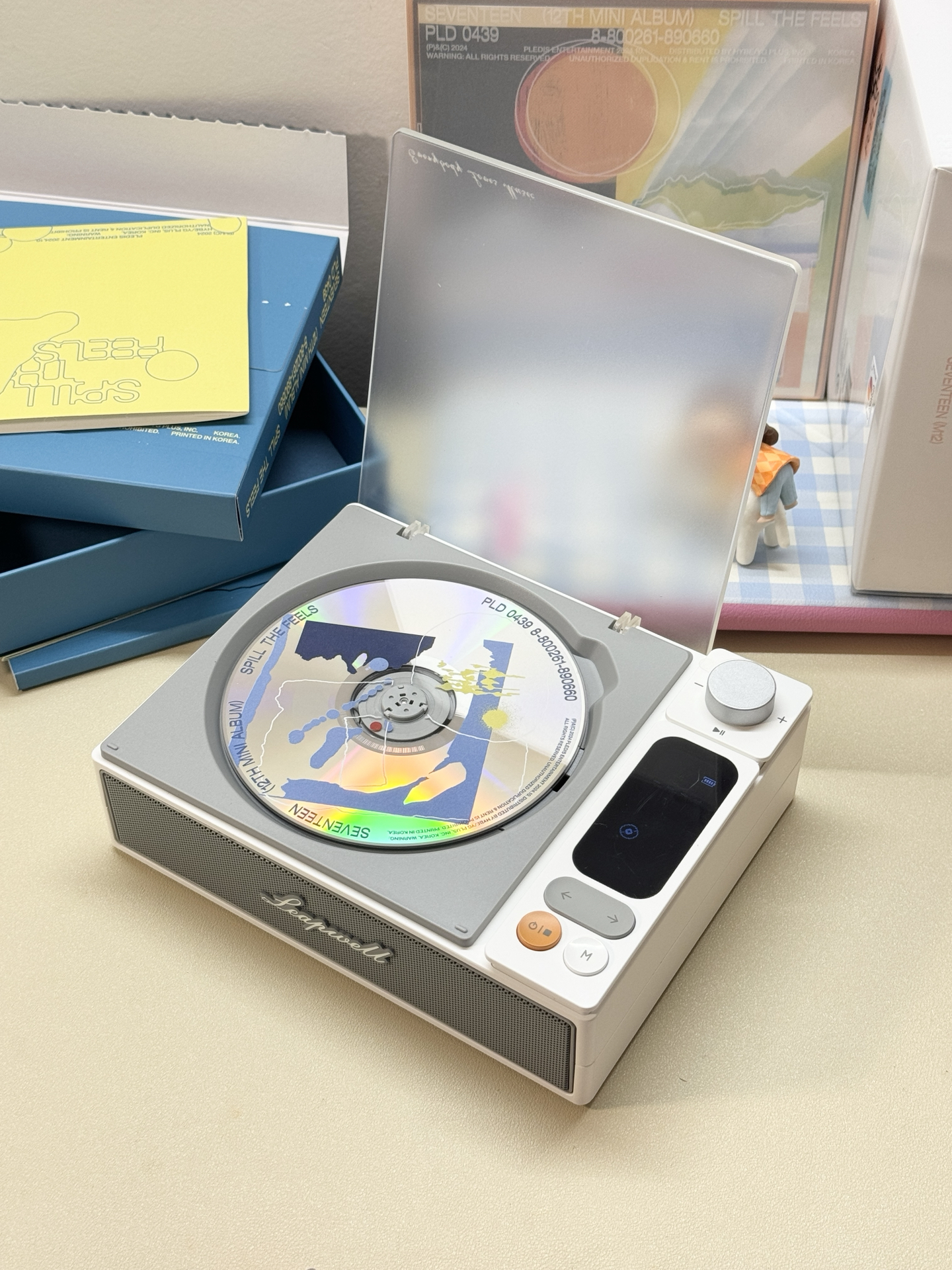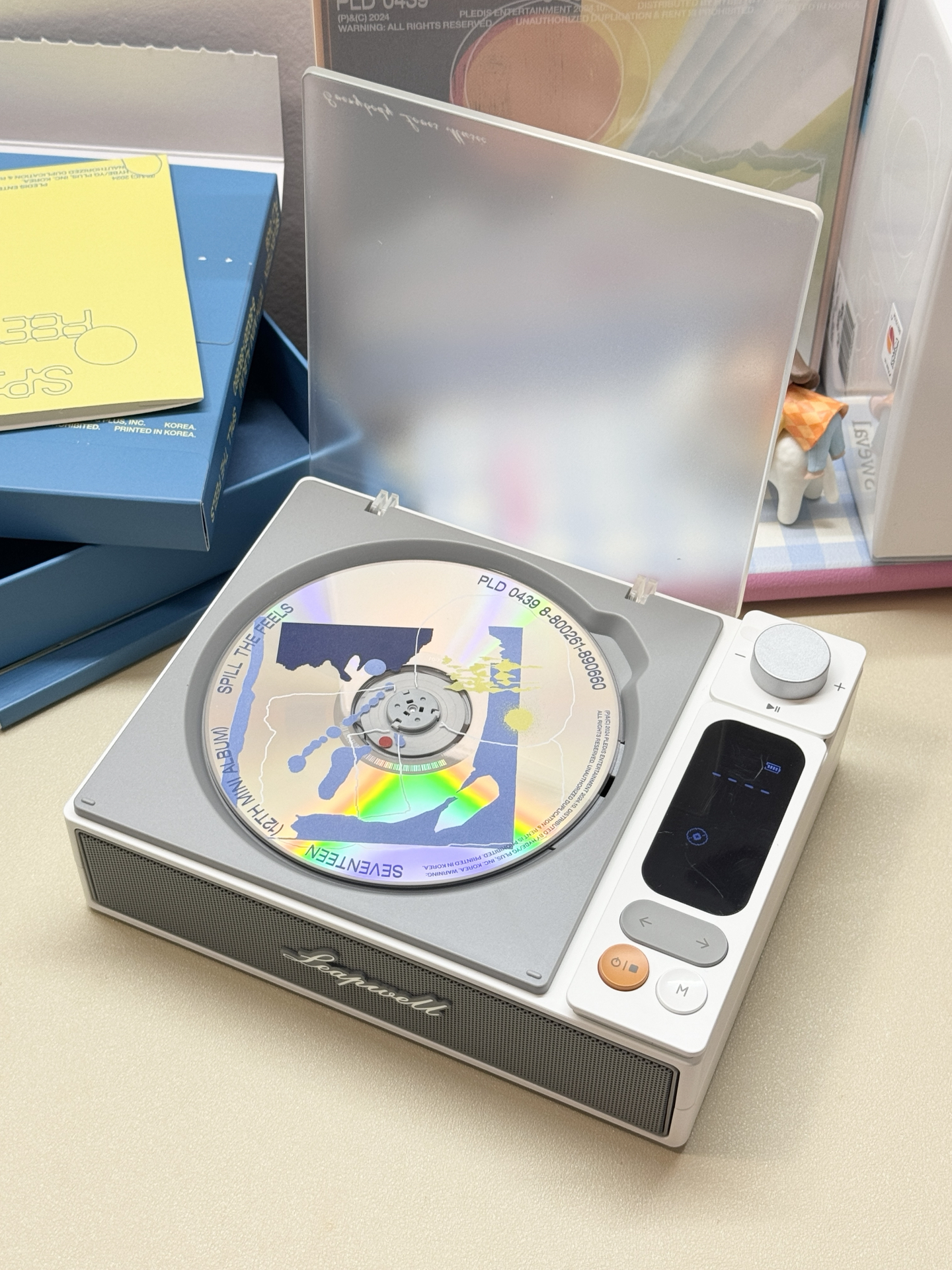 咱这一堆专辑可算有“搭档”啦! 这个CD机我真的爱惨🥰。小巧不占地儿,放哪都成~ 颜值在线,放CD超好看。音质实测也很绝,盖子一盖立体声就来了,还能多样玩法,送礼也超合适!