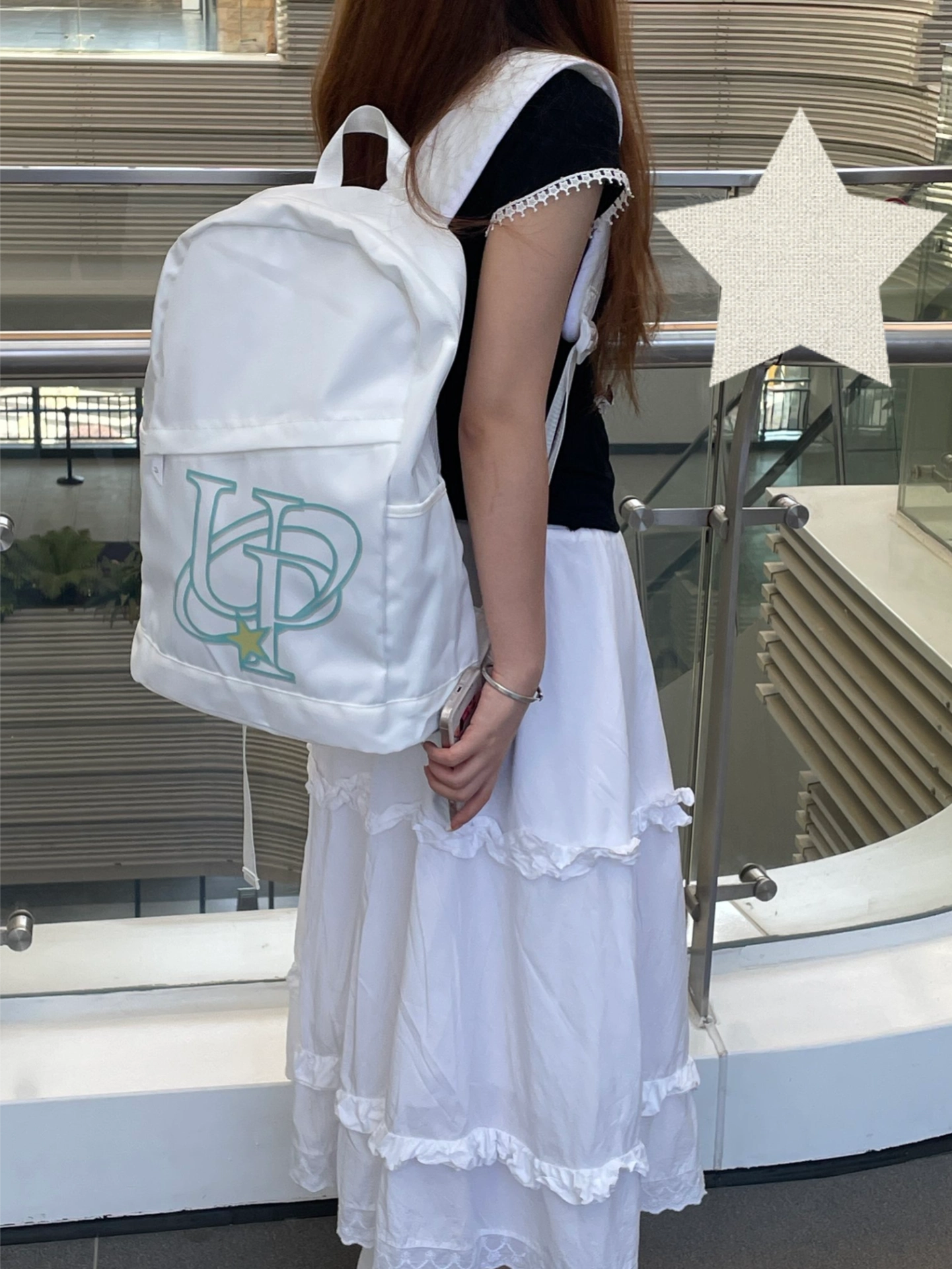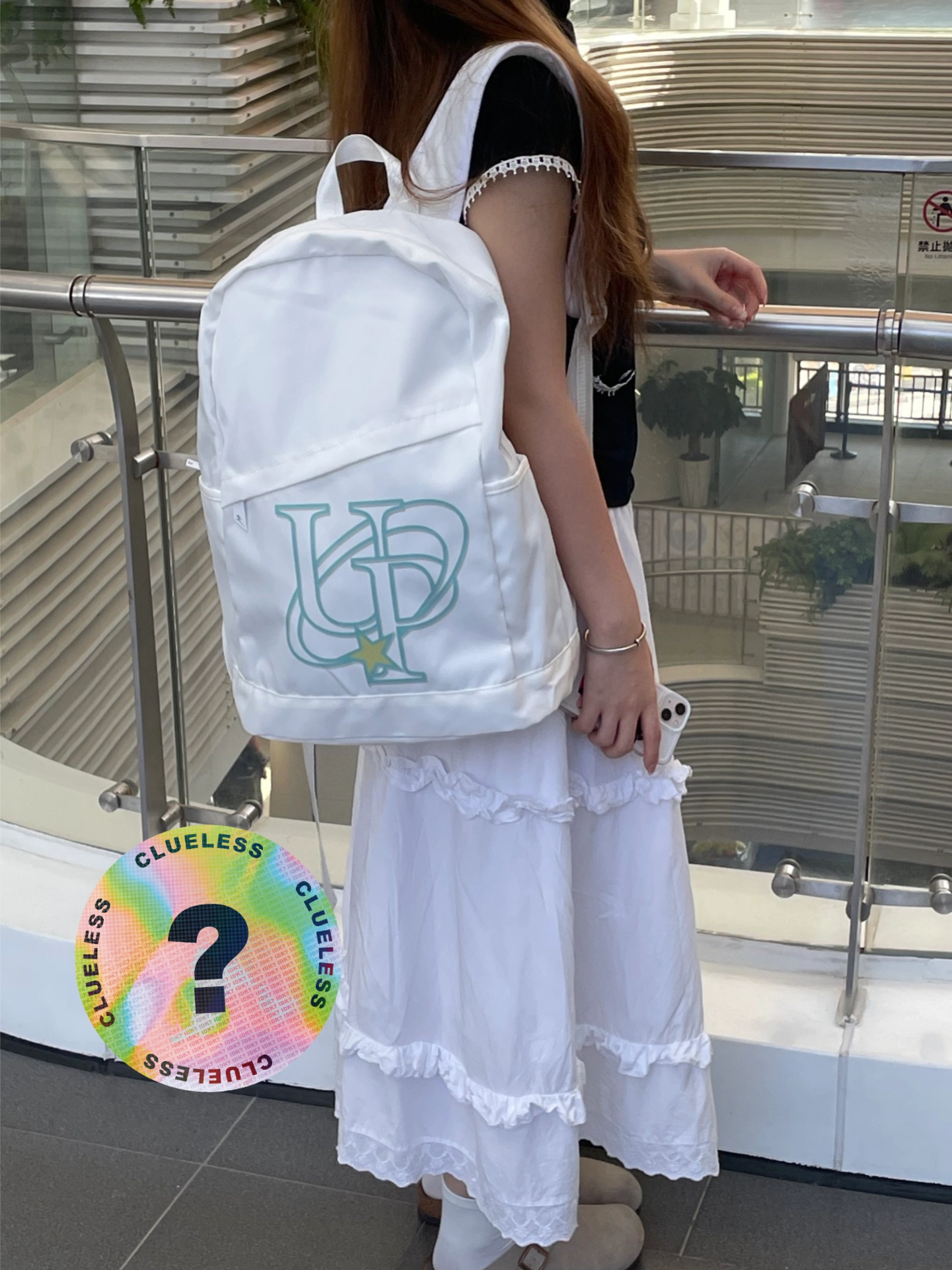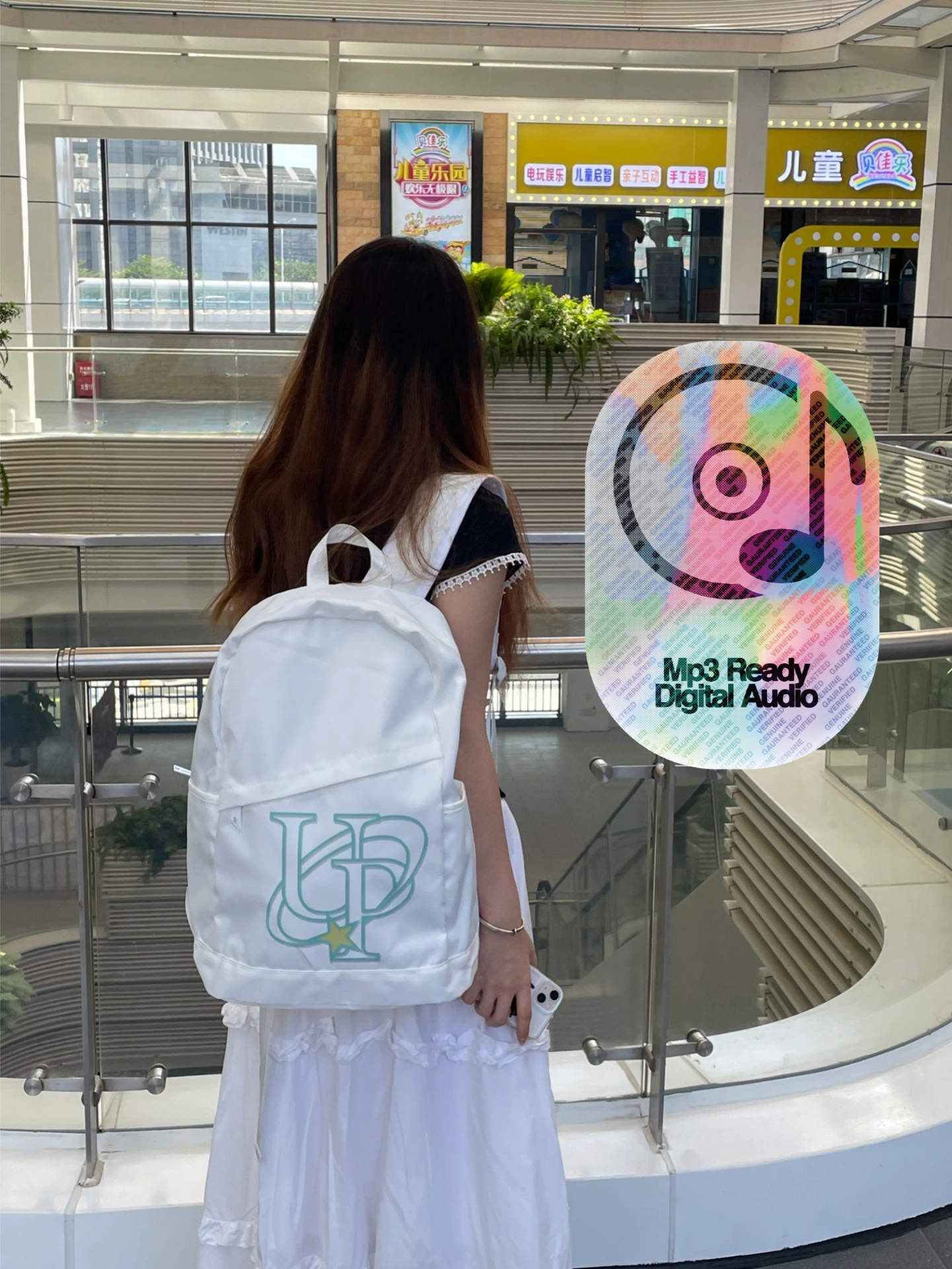 我发现了一款超适合学生和上班族的双肩包✨!干净纯粹的白色,搭配清新蓝绿字母印花,真的韩里韩气~防泼水设计,日常使用不怕小水花💦。有夹层,收纳方便。不过白色可能不耐脏🤔。价格平价,流行的学院风元素,通勤、休闲都合适,四季百搭,冲就完事儿🎉!