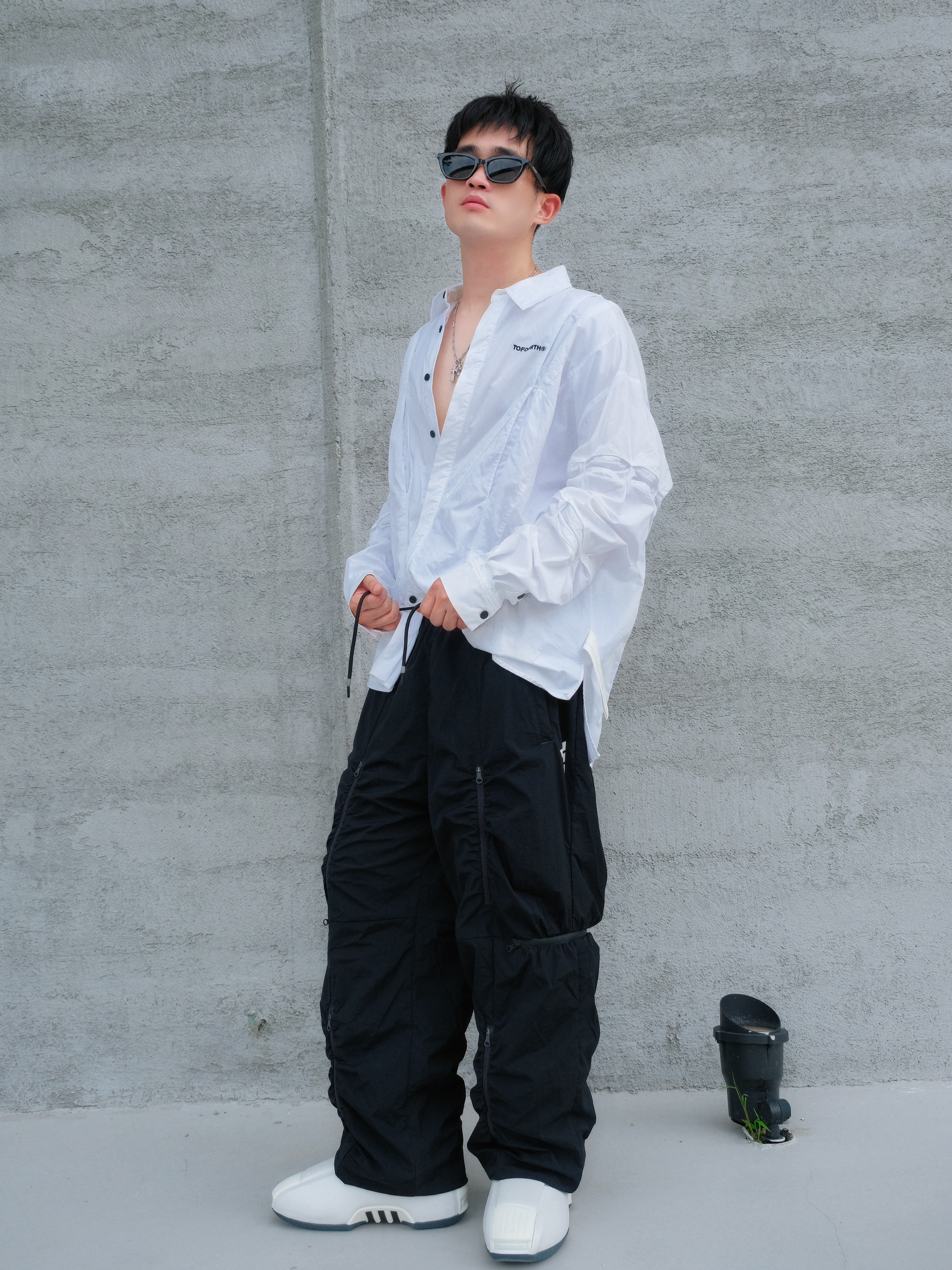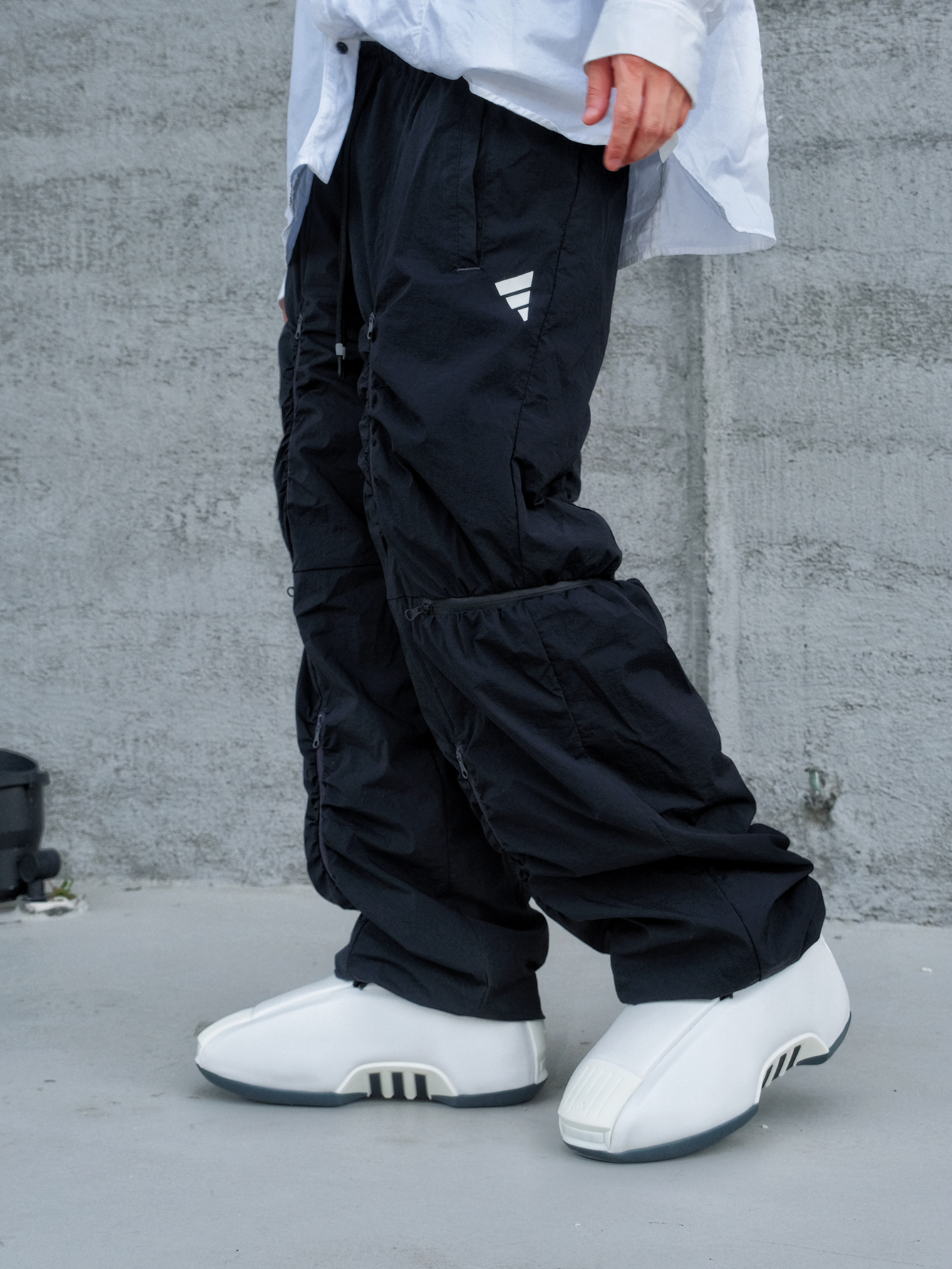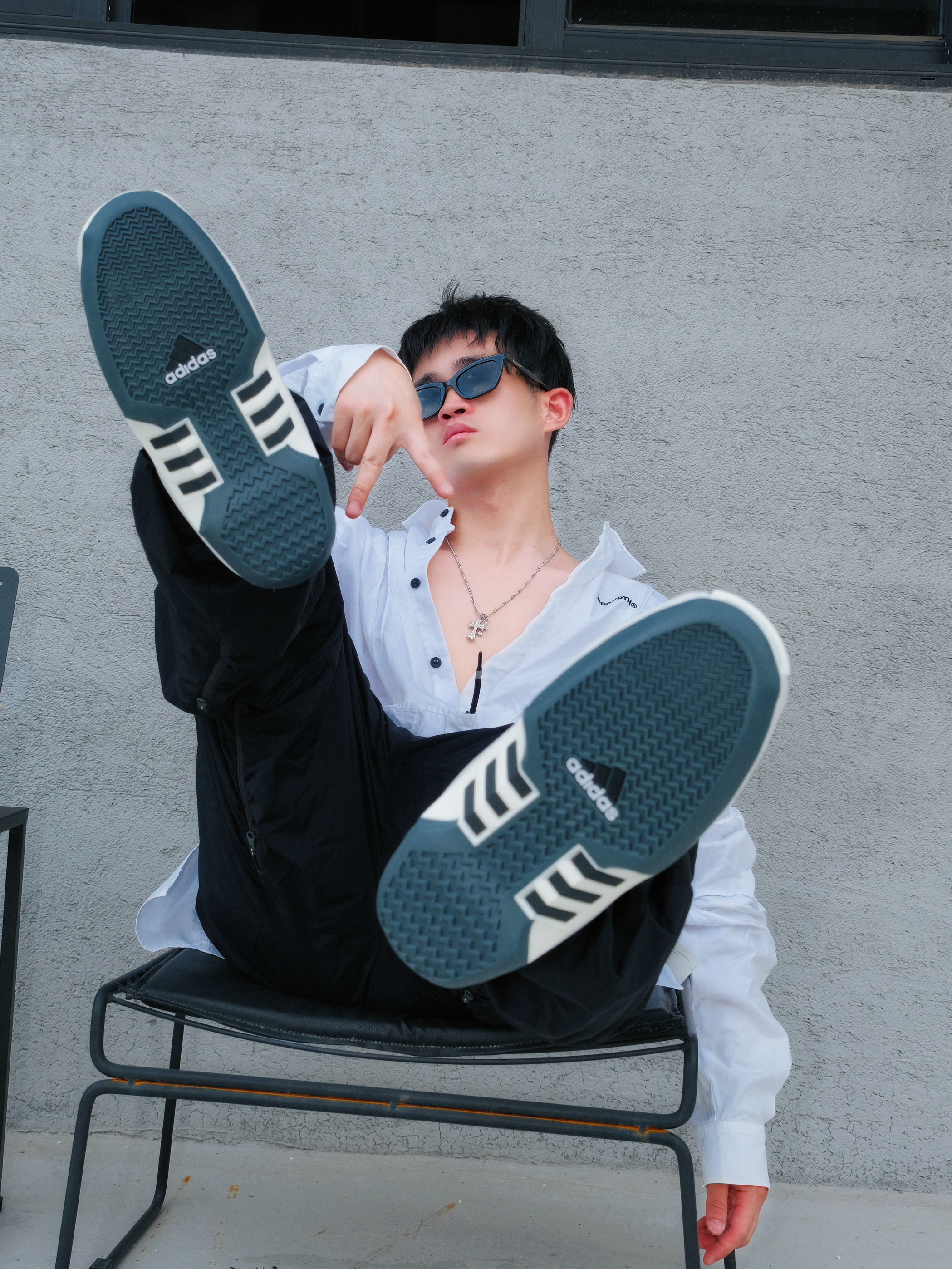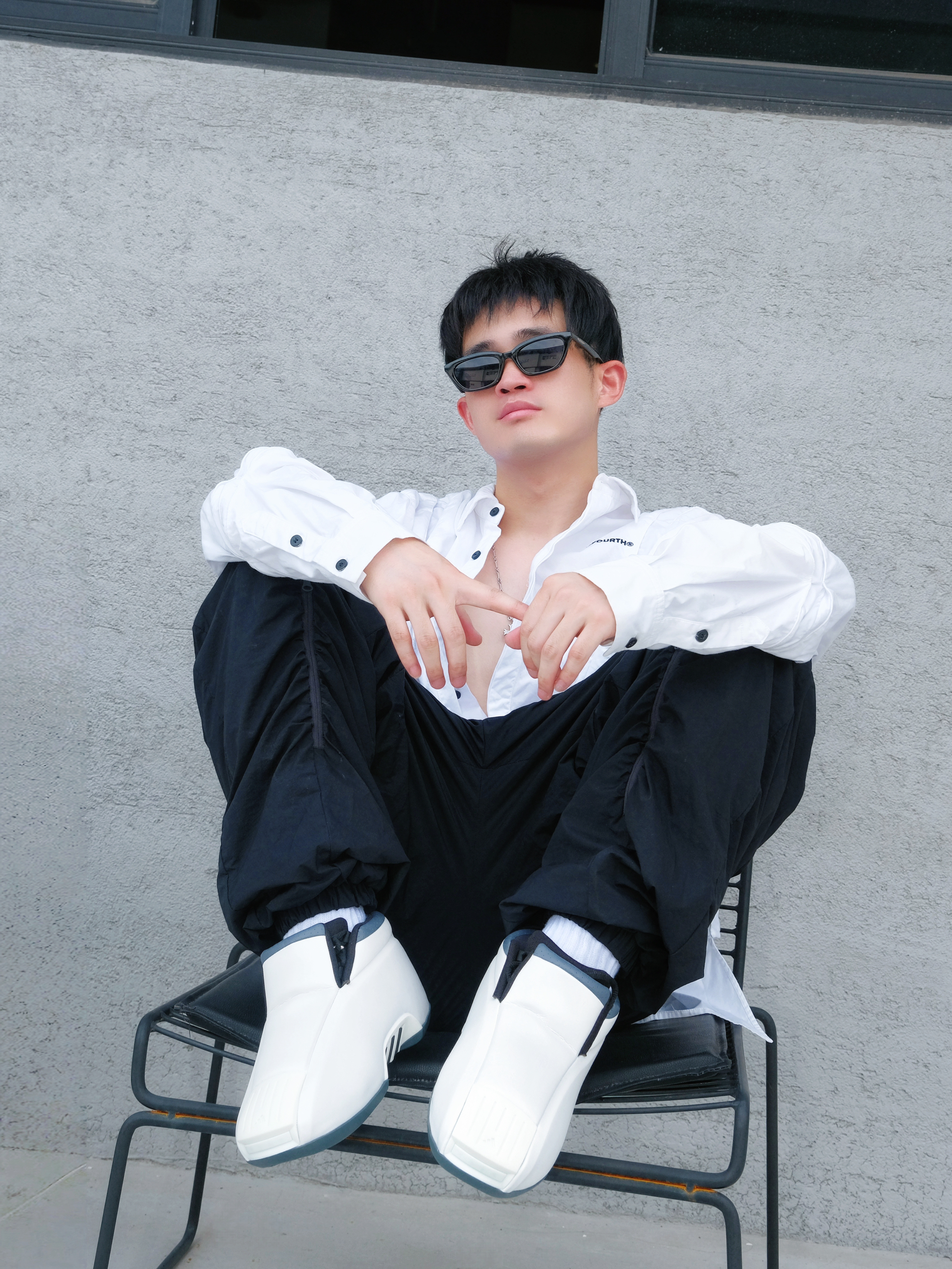 初秋出街最爱这身!在灰色墙角找把户外椅小坐,风吹过,超级放松的氛围。☀️ 穿搭是简约休闲风:白衬衫宽松舒适,配上黑色阔腿裤👖,遮阳又显瘦。 ⚠️重点来了—— Crazy 2 Zero Metallic复古篮球鞋!防滑耐磨的底子稳稳的,日常通勤太实用。致敬科比的TT跑车设计,穿出满满的回忆,让整体造型更有情怀感。👟 整体Look:黑白配 + 酷黑墨镜😎,项链小小点缀,随性又显气质。简单get潮流范儿...