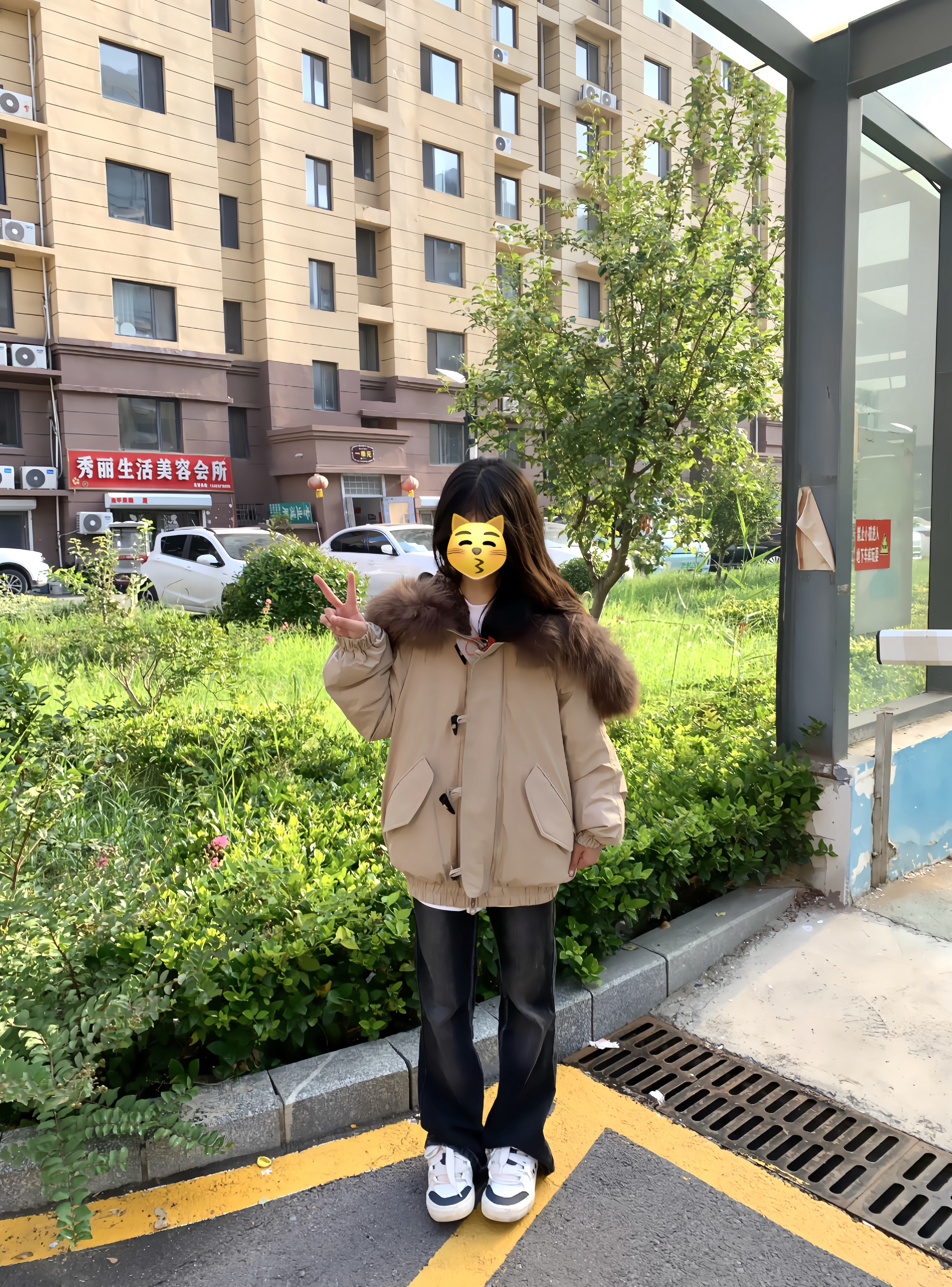 🧥 | 超韩的卡其色大毛领棉服呀,软乎乎毛领好显气质,宽松版型适配各种身材,填充棉很蓬松,秋日穿温暖又好看~ 👖 | 搭配微喇黑裤,瞬间拉长腿部线条,复古又时髦~