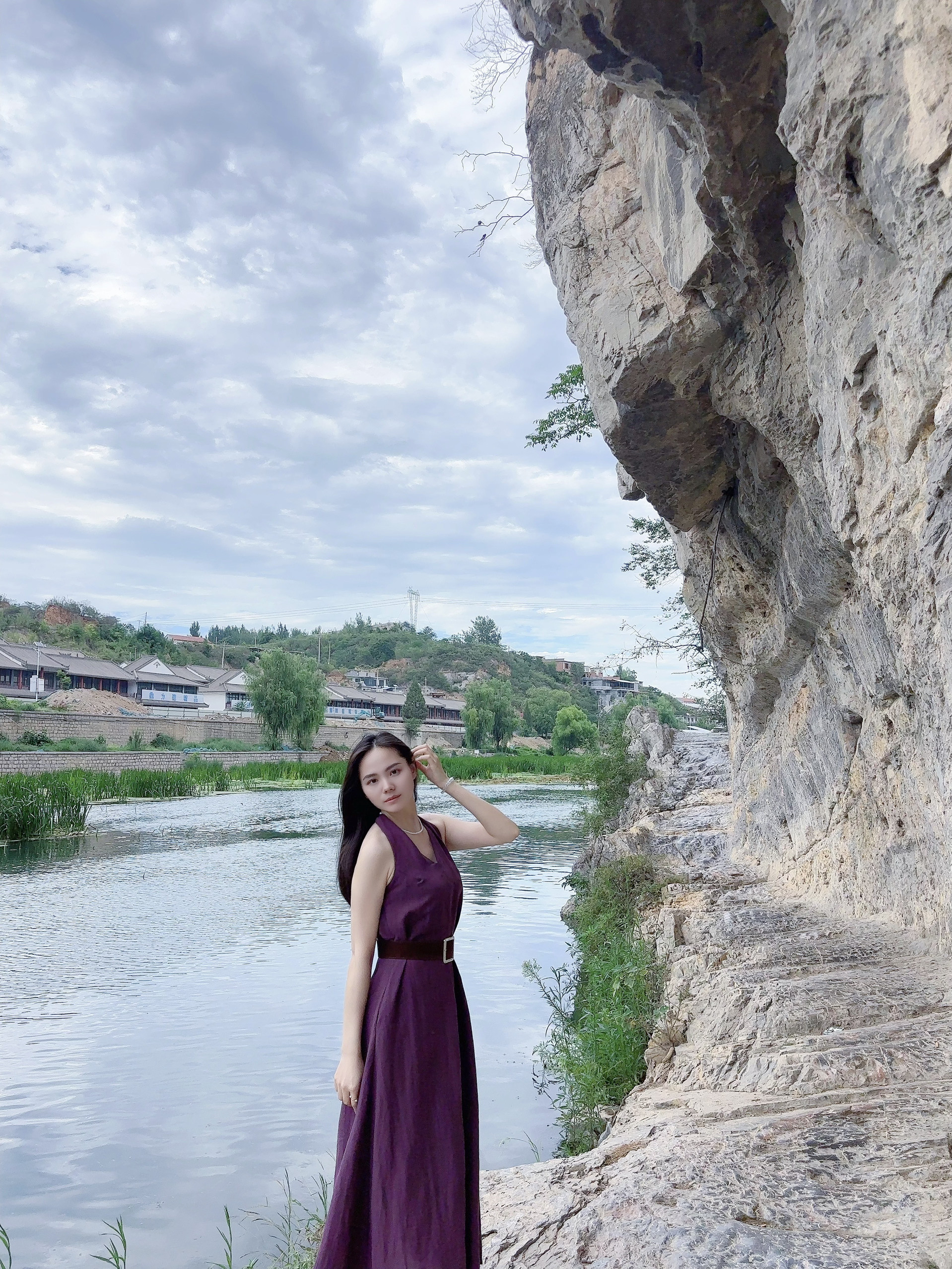 紫色挂脖连衣裙 简单好看 显气质 出去玩穿着很方便 而且显白 很出片 喜欢😍