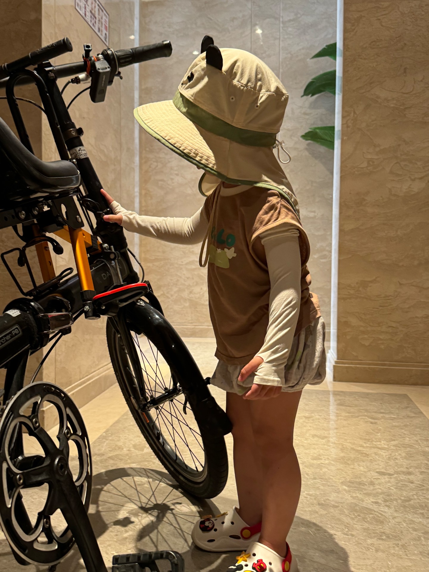 我做完近视手术后彻底放飞啦~入了辆折叠自行车带娃骑🚴,车身超轻便!刹车很稳,带娃很安心。就是术后眼睛敏感,骑车得戴护目镜~👍
