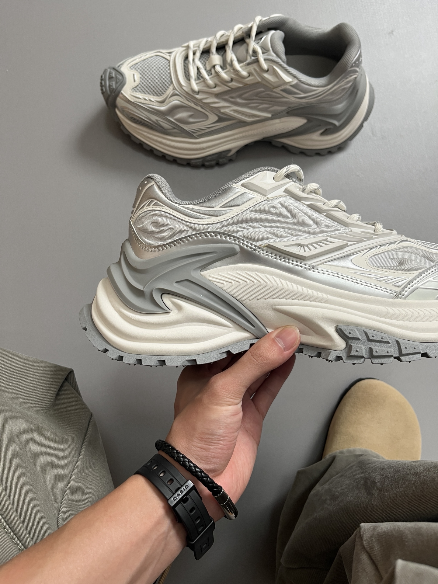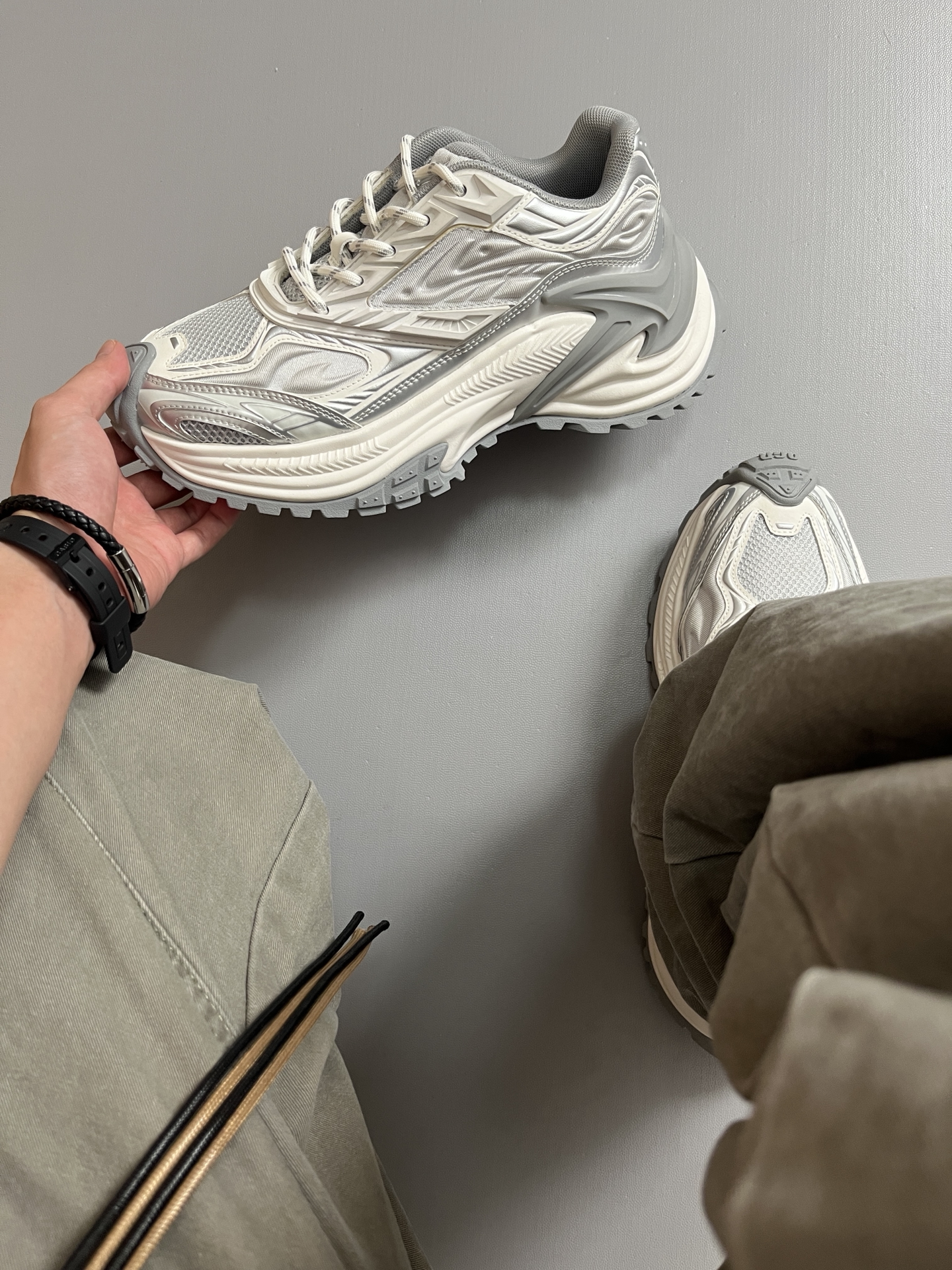 老爹鞋的热度居高不下,不是没有原因的🤔 看上 #OGR 家这双响尾蛇EX系列,尊滴酷呀! 银色🩶和白色🤍的拼接更显高级耐看 鞋身做工细节有弧度,更有复古机能风的感觉 加厚增高的6cm中底,大长腿既视感谁懂呀!🥹 ✅尺码参考:170/120 穿着41 不偏码的 @OGR官方 #ogr老爹鞋 #OGR机甲鞋 #这双没有班味 #七夕大声表白爱 #美鞋也能暴走一整夏