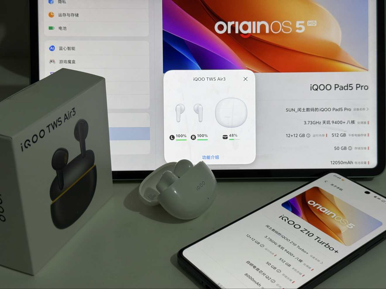 本篇笔记关联了iQOO TWS Air3 半入耳式蓝牙耳机 降噪游戏通话长续航 真无线 低延迟 奔霆白等商品,为用户提供真实的使用体验和购买参考。