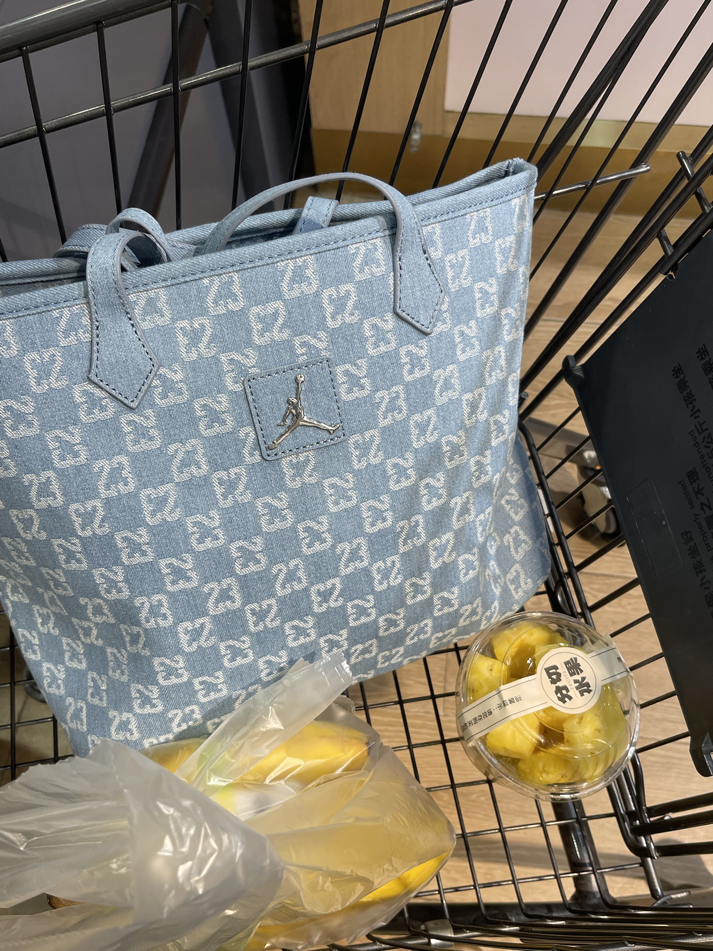 本篇笔记关联了Jordan 满印老花系列 常规情侣款棉拼再生纤维托特包单肩包手提包 淡牛仔蓝 JD2523005AD-001等商品,为用户提供真实的使用体验和购买参考。