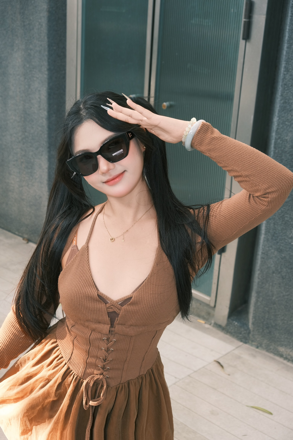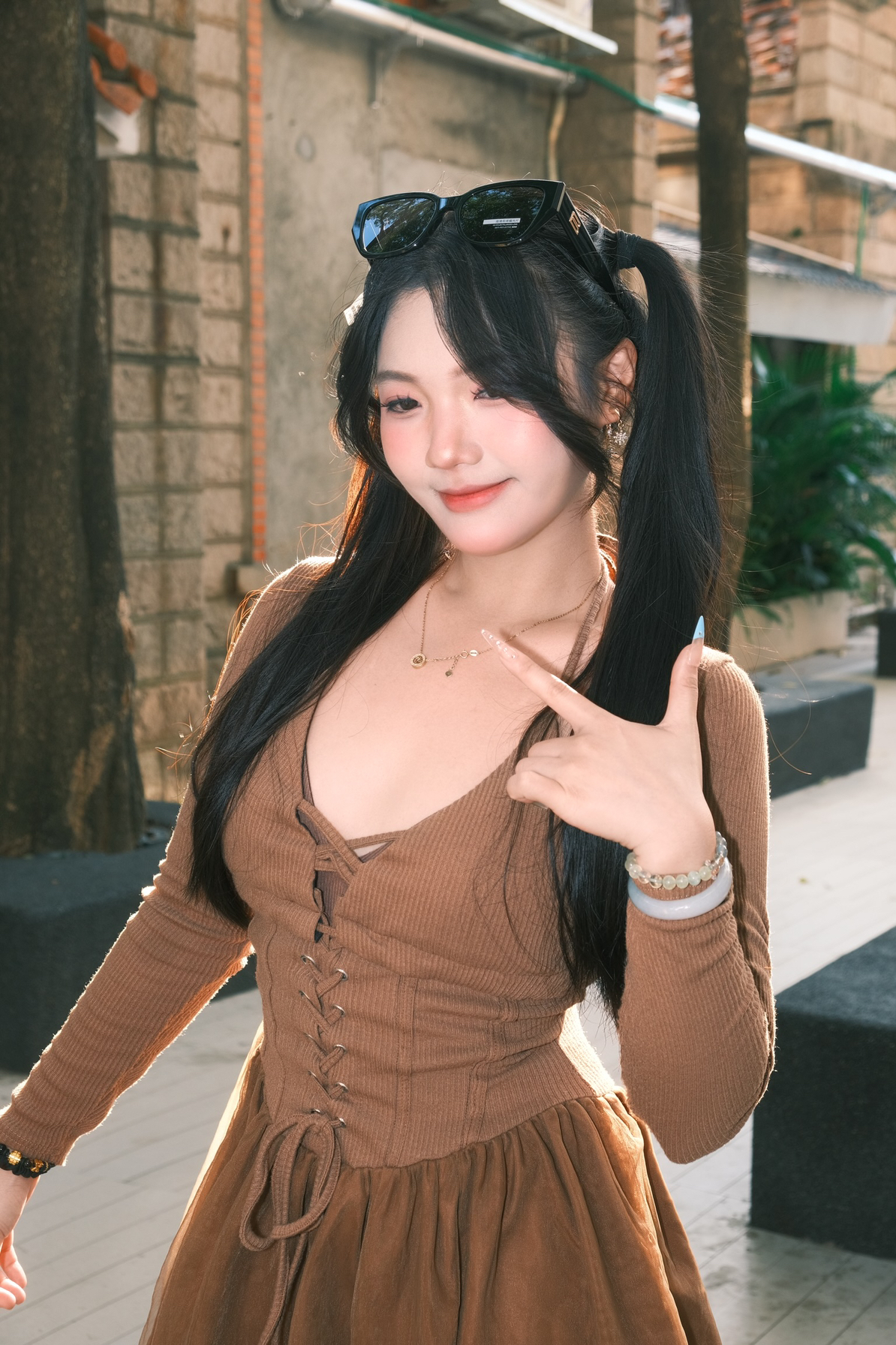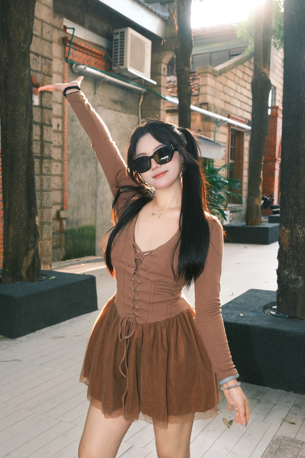 七夕街头甜酷模版🕶️ 浅当一下七夕街头最靓的崽✨ 咖啡棕连衣裙自带温柔滤镜☕ 交叉绑带+蓬蓬裙摆,纯欲又俏皮💕 墨镜一戴,把阳光和小尴尬都“屏蔽”~ 硬朗黑框撞出甜酷反差,眼神藏进神秘里, 走路都带风,时髦感直接拉满🆒 小项链、雪花耳饰点缀细节💎 双马尾发型拿捏元气感🎀 七夕这么穿,出街回头率爆棚💥 约会氛围也狠狠拿捏~