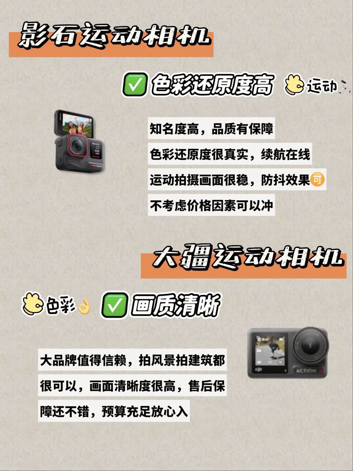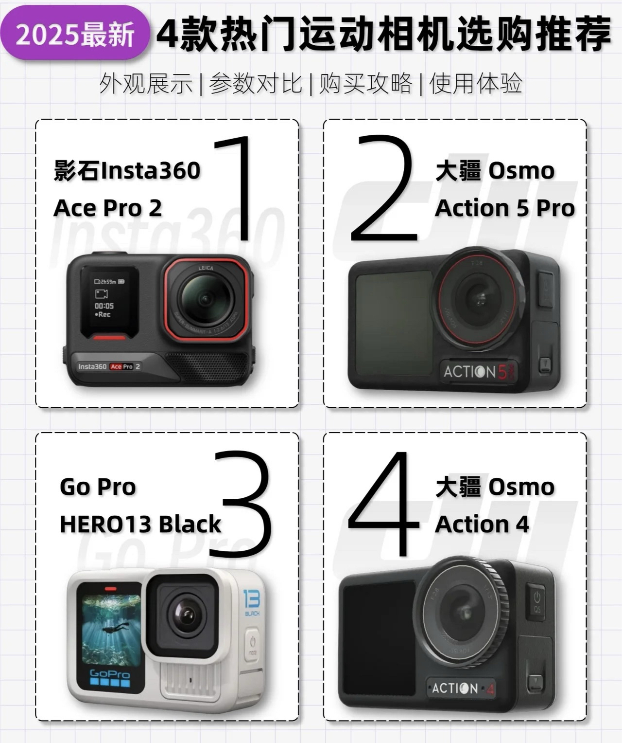 本篇笔记关联了DJl/大疆 Osmo Action 4 运动相机 超清画质 裸机防水 前后双触摸彩屏 录像防抖 长续航拍摄 标准套装、Insta360/影石 Ace Pro 运动相机 4K AI智能防抖 2.4英寸翻转屏 磁吸快拆 全景 防水 影像 超广角 夜拍 高清画质 隐藏 智能摄像 黑色标准套装、山狗 G10 高清 录音运动相机 防抖 第一视角 标准套餐等商品,为用户提供真实的使用体验和购买参考。