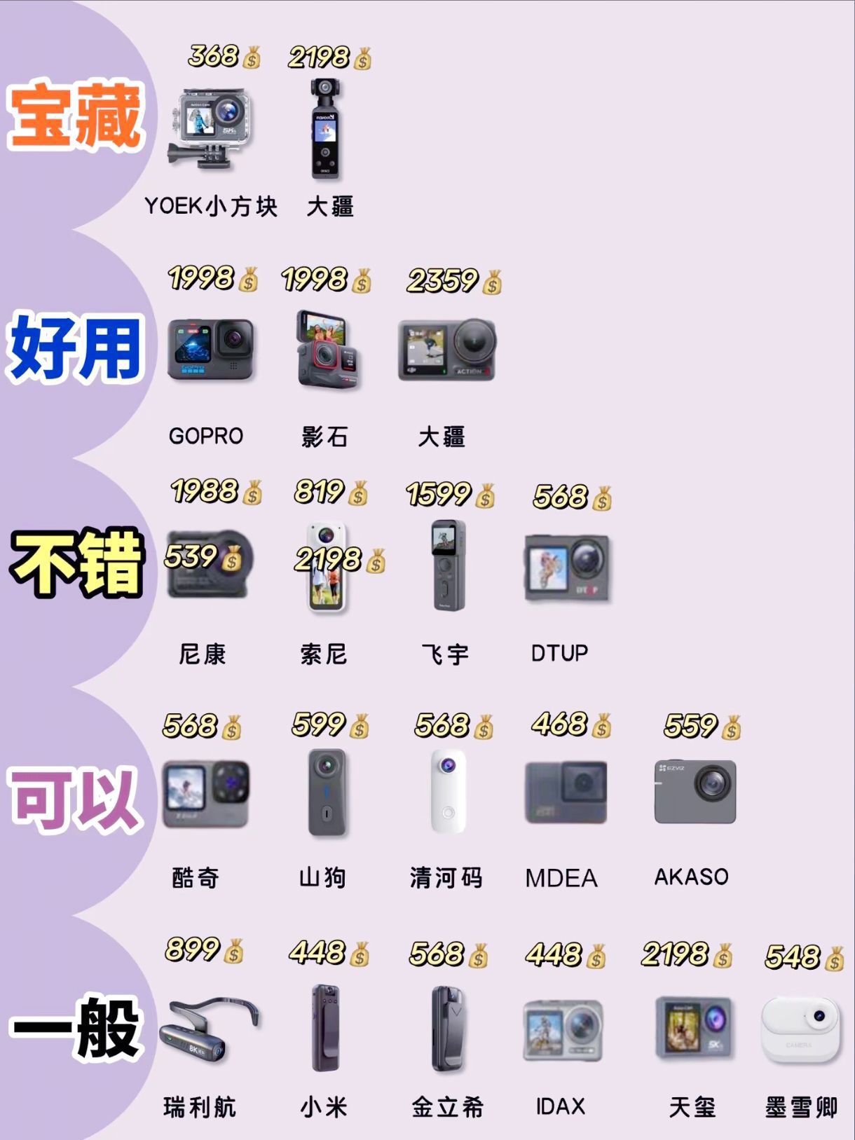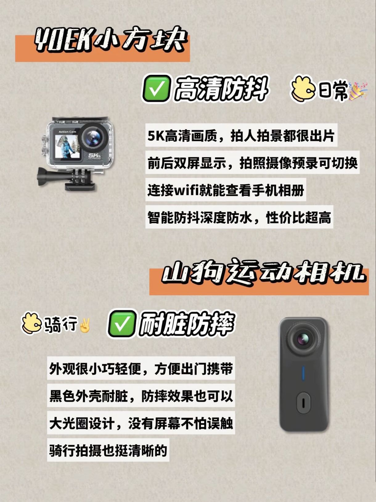 玩户外拍Vlog运动相机怎么选?别被花哨参数忽悠! 实测筛选👇直接抄作业就完事: YOEK小方块 (368$):要性价比选它准没错!5K画质够清晰,双屏翻转自拍超方便,防抖防水都🉑️,学生党/入门党无脑冲! 影石 GoPro (1998$):色彩准、画面稳是真牛!运动抓拍、日常记录质感都拉满,预算够的闭眼入稳得很~ 大疆 Action (2198$):风景/建筑拍摄画质巨清!大品牌售后省心...