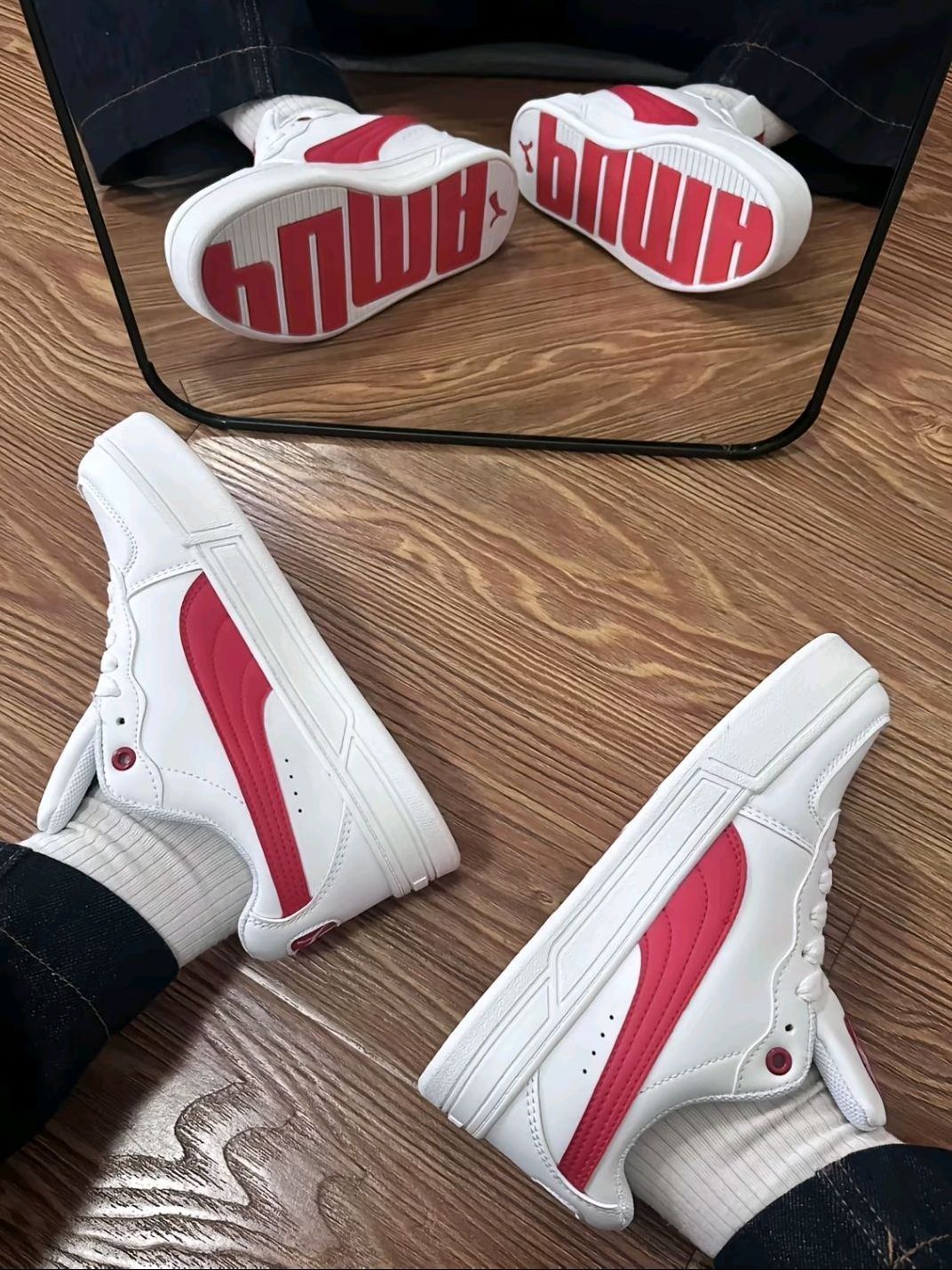 新学期要活力登场?这双彪马板鞋,就是你的校园穿搭“神队友”! 颜值在线:经典白鞋+撞色线条,简约又亮眼,不管是配校服裤走青春风,还是搭牛仔裤耍酷,都能让你在同学堆里脱颖而出,开学第一天就收割目光~ 舒适护航:软弹鞋底像踩棉花,跑操场、赶课路、站社团招新,一整天下来脚也不喊累,为忙碌的校园生活疯狂“续航”。 细节加分:鞋型利落显脚瘦,暗藏品牌巧思,连鞋底都有潮趣设计,不经意露出超吸睛,轻...