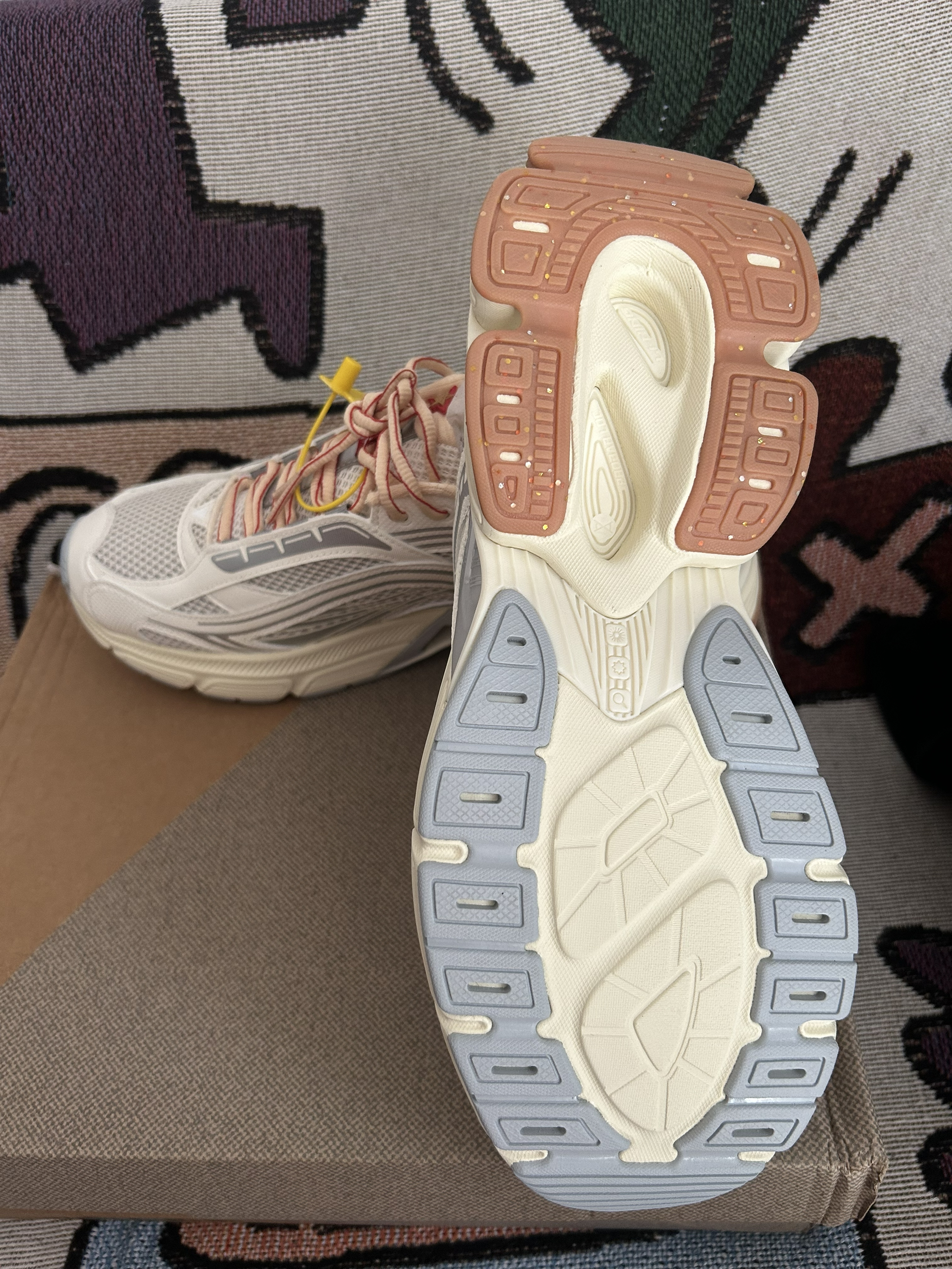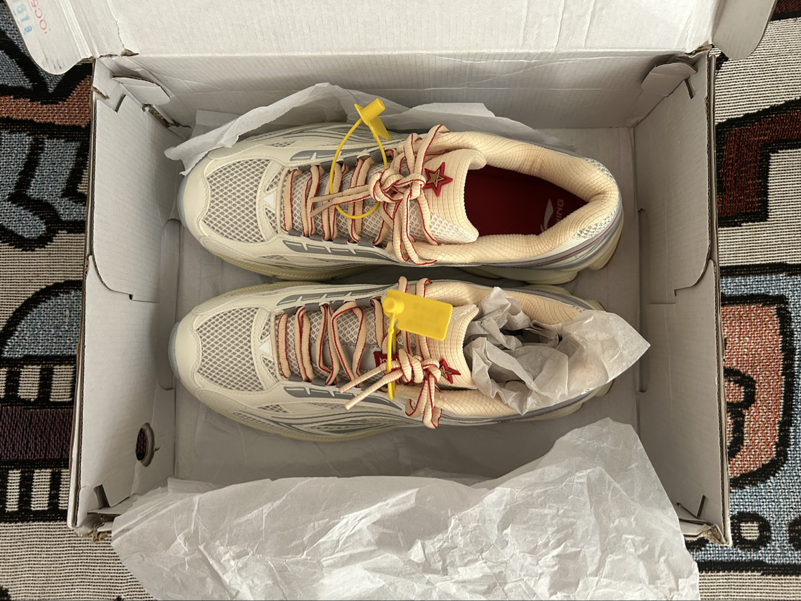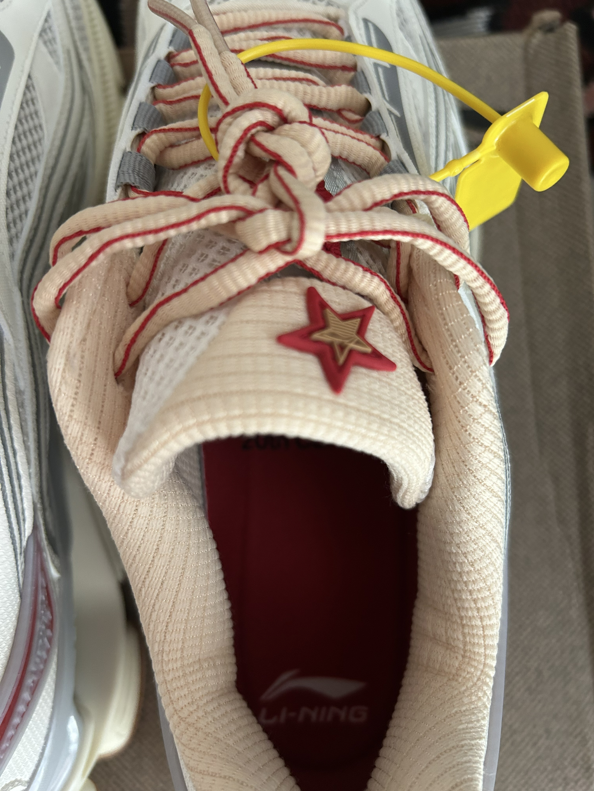 太喜欢李宁这款极光RENEW了!颜值高,造型和一些细节设计很用“星”。鞋底的设计很有特点,用了金箔元素点缀,鞋底材质软的,试穿了一下很舒适!