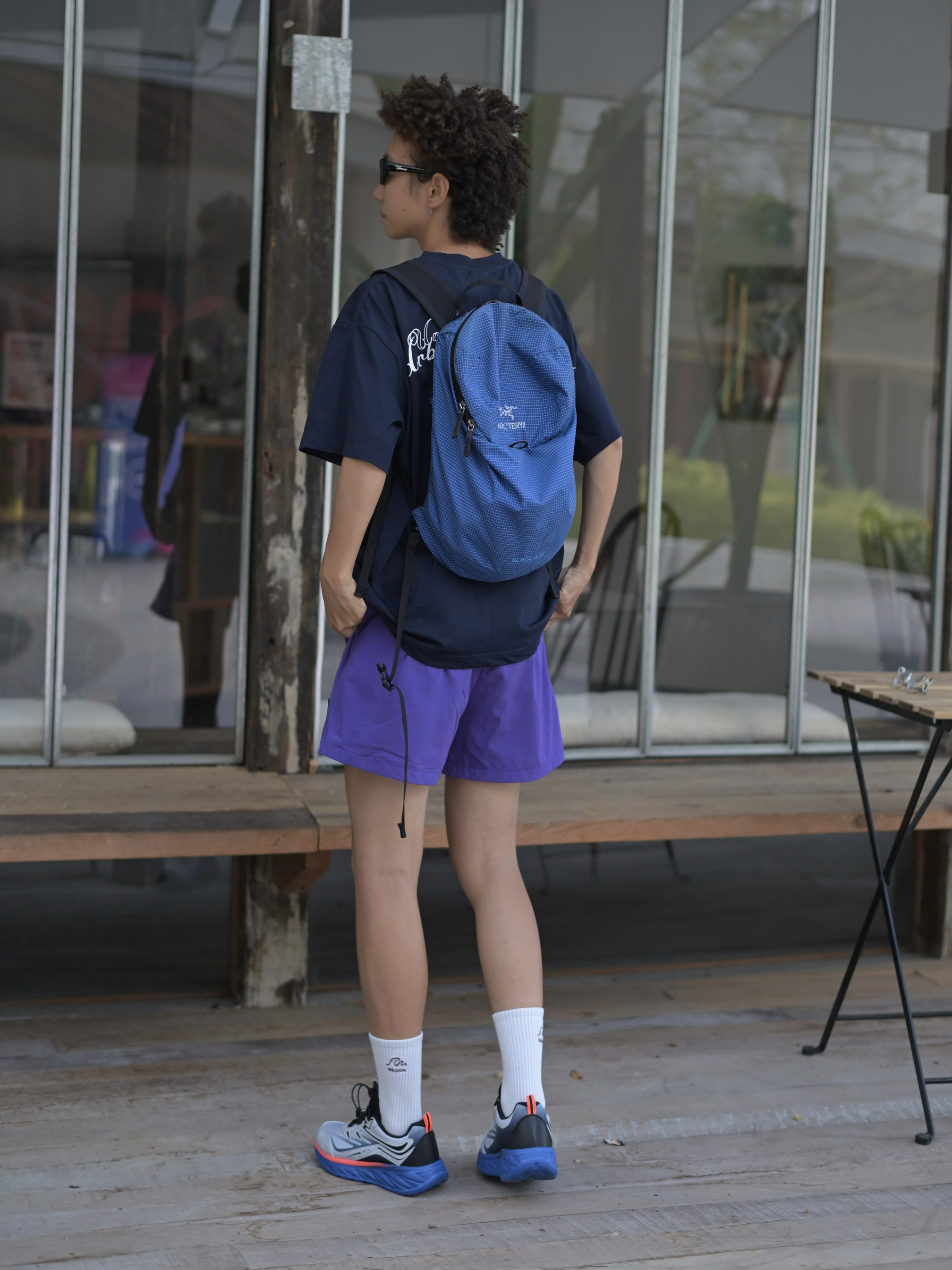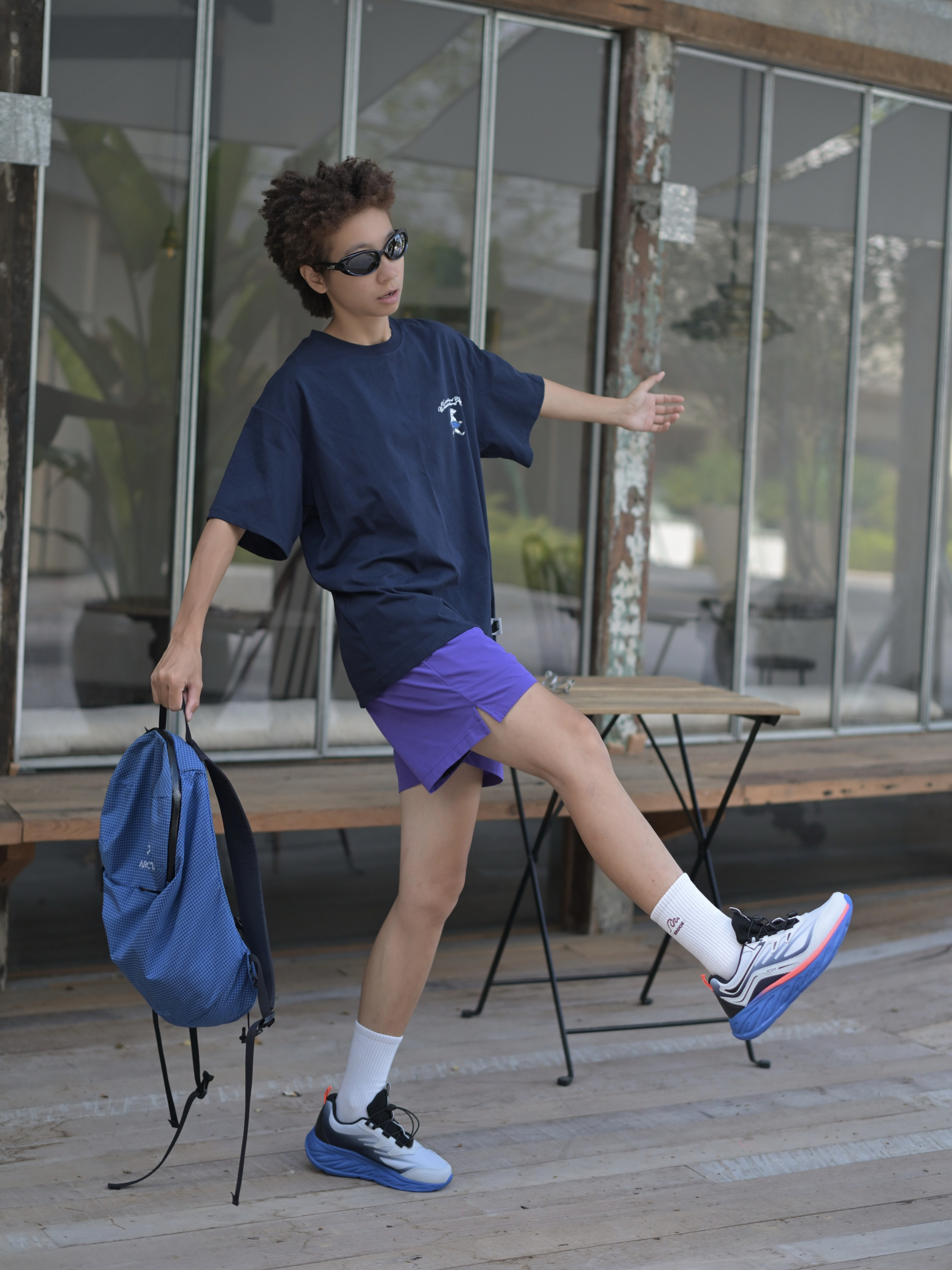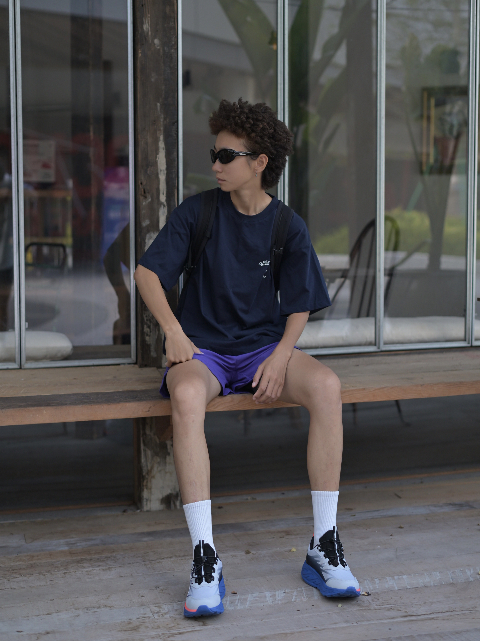 嘿,这是哇圆哇圆哒的穿搭频道🔥 168CM|55KG 👔:M 👖:m 👟:39码 今日份运动风穿搭来咯 上身蓝色系短袖 氛围感拉满 下半身搭配紫色哒短裤 穿上俺的运动鞋 Gogogo出发咯~