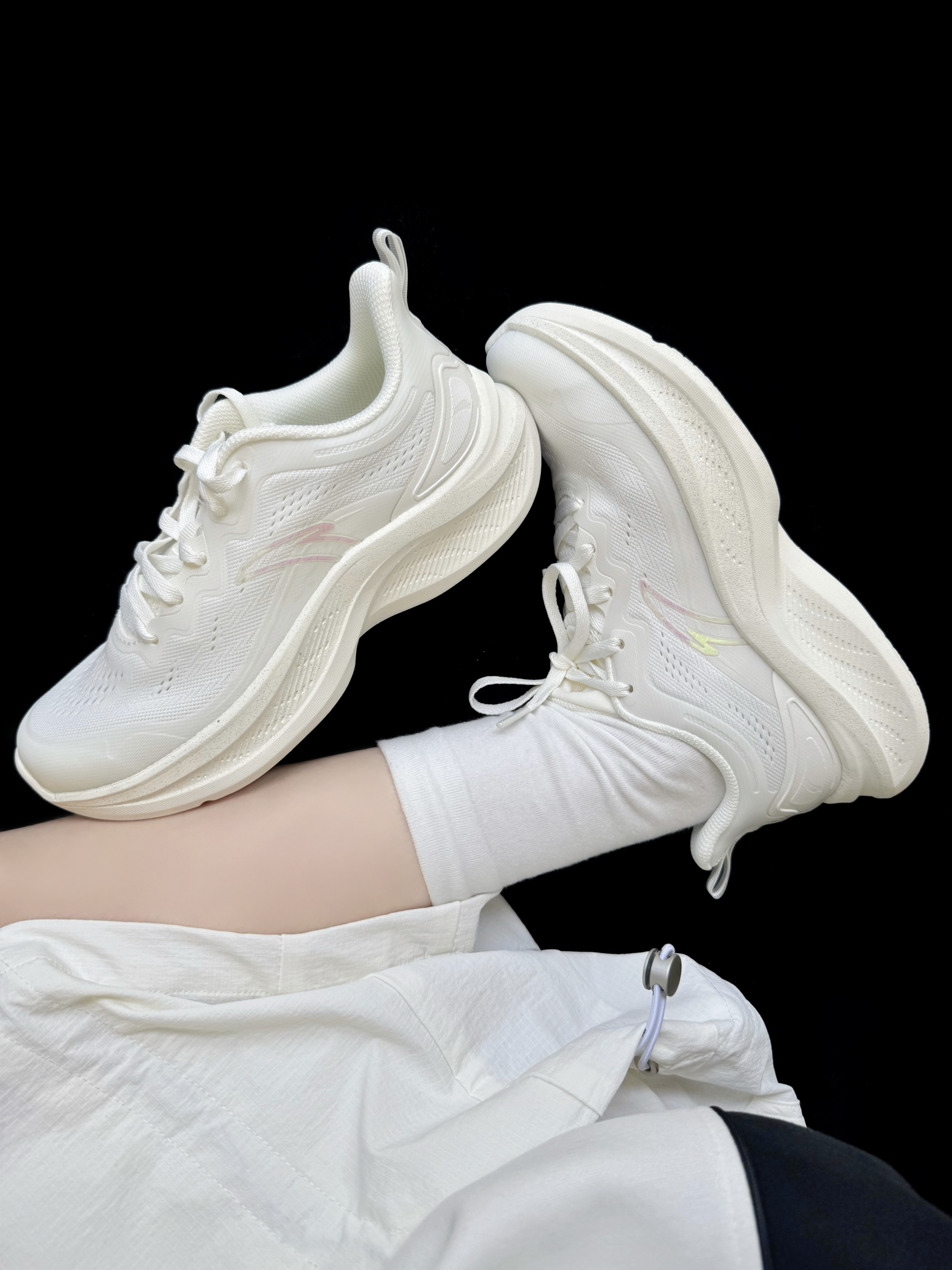 - 不愧是安踏飞云!奶呼呼的白月光跑鞋🏃🏻♀️ 上脚包裹性和抓地力都嘎嘎好 网面设计不闷jio~透气又百搭! 鞋跟处还做了细闪 在阳光下超美☀️ 妥妥的是我心中白月光没错了!