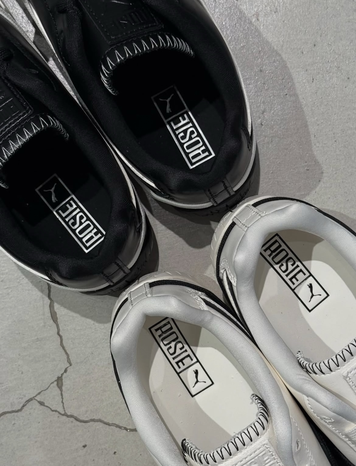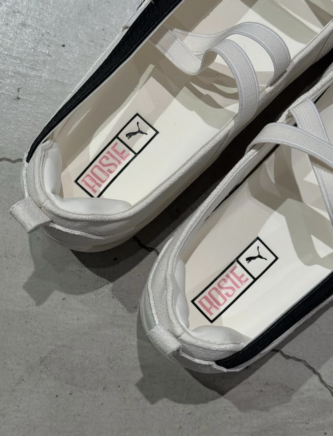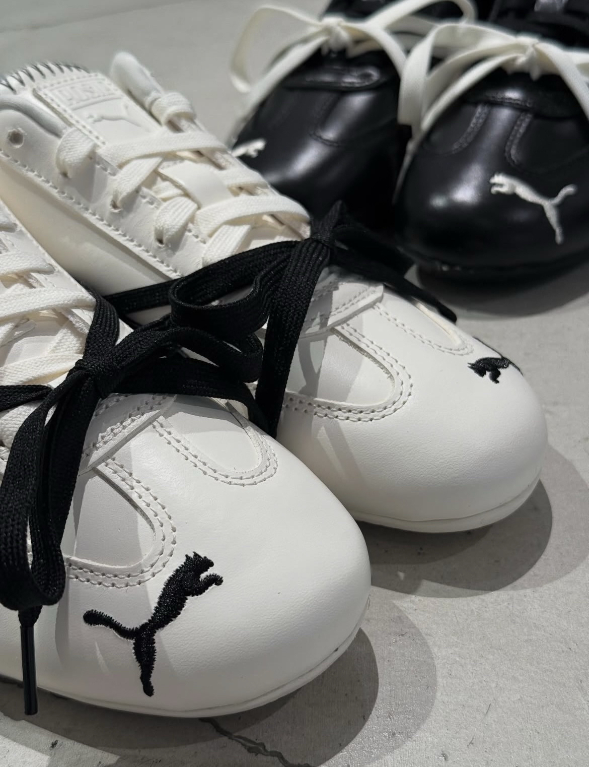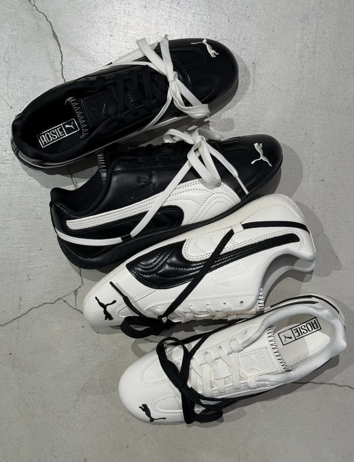 此次联名一共发布三款新鞋,用黑白基础色调打造的赛车鞋,还有轻盈可爱的芭蕾鞋,都很适合甜酷的小姐妹。