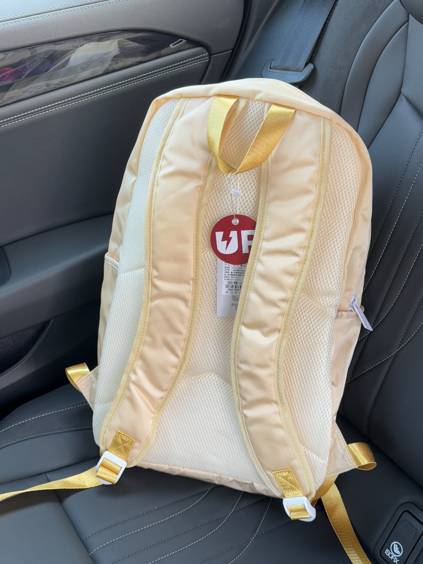 好喜欢这种奶乎乎配色的双肩包 包包的容量特别大能装很多东西 电脑、书本、iPad、伞都装得下 背起来很舒适 宽肩带也不会勒肩膀 元气感满满~