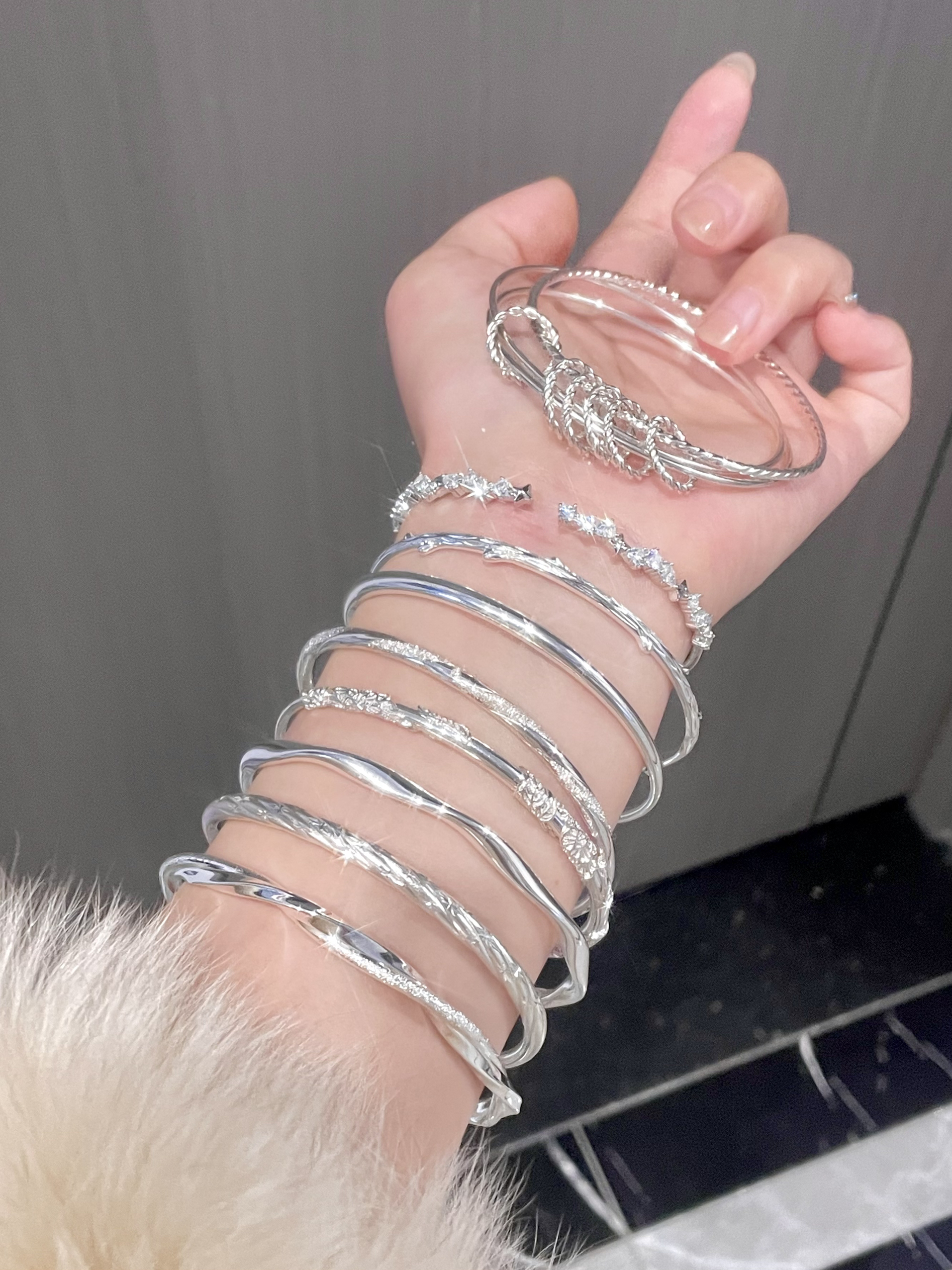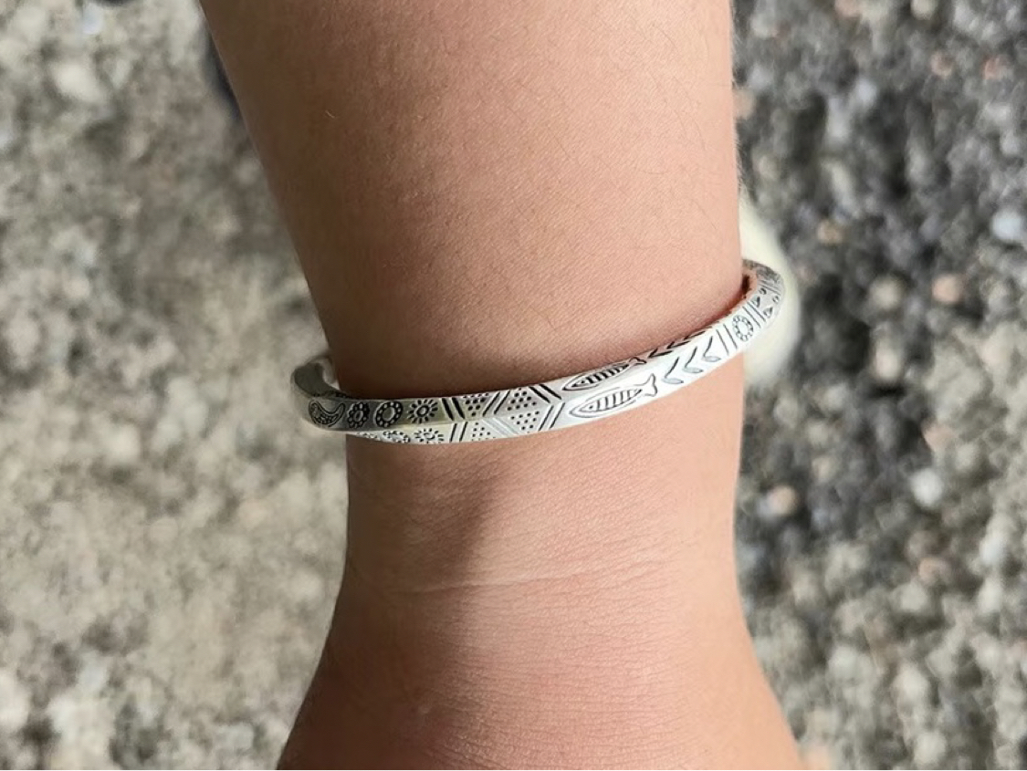 家人们,逛重庆金店看到个银手镯,直接戳中我! 雕花精致得很,银亮亮的显白又好看,日常戴低调又有存在感 ,细腻又温柔! 银质润润的,戴手上衬得肤色好干净。推拉设计超贴心,不管她手腕粗细都能适配,日常搭裙子、T恤都很绝,低调又藏着小心思~