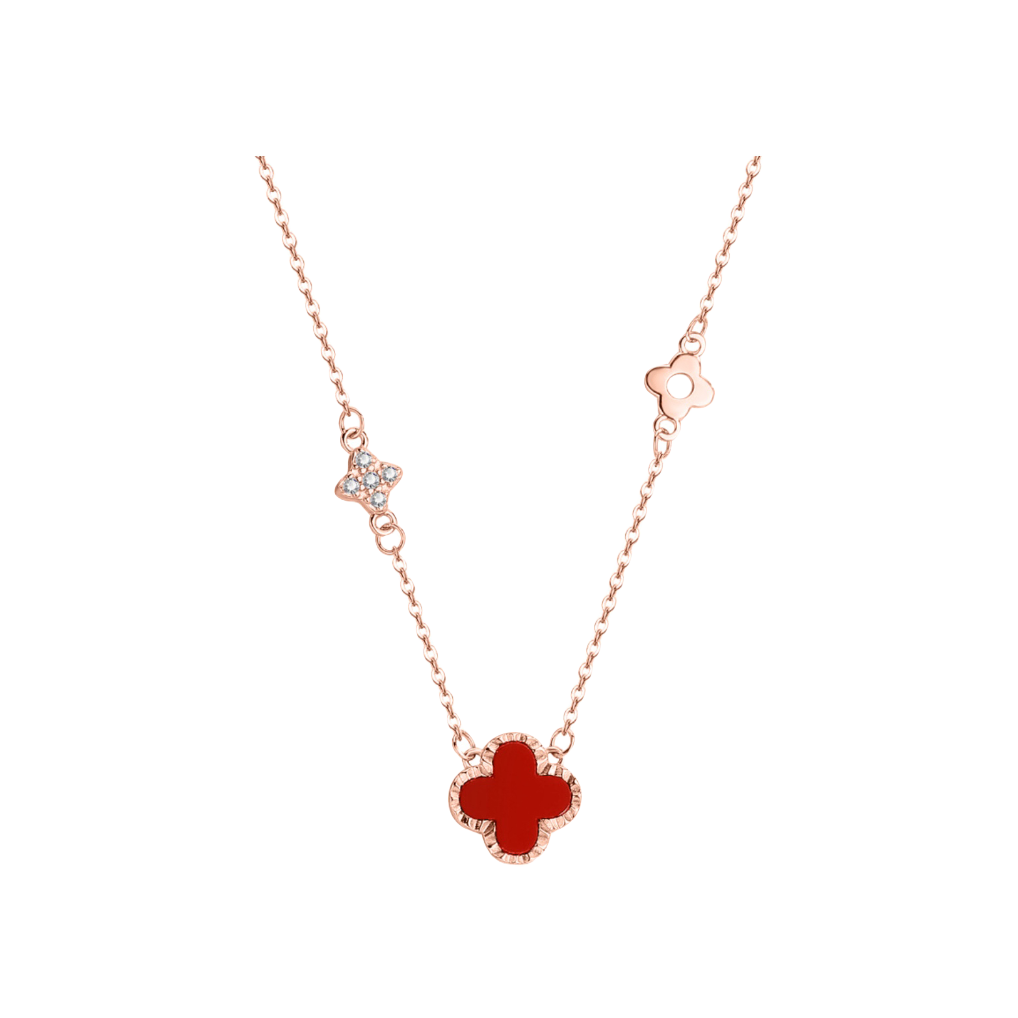 家人们,最近七夕准备送女友项链的可以看看这条! 四叶草造型,红玛瑙衬着细链,日常戴很提气色,精致又不浮夸 。女孩子看到就心动,七夕送对象,肯定能戳中她~