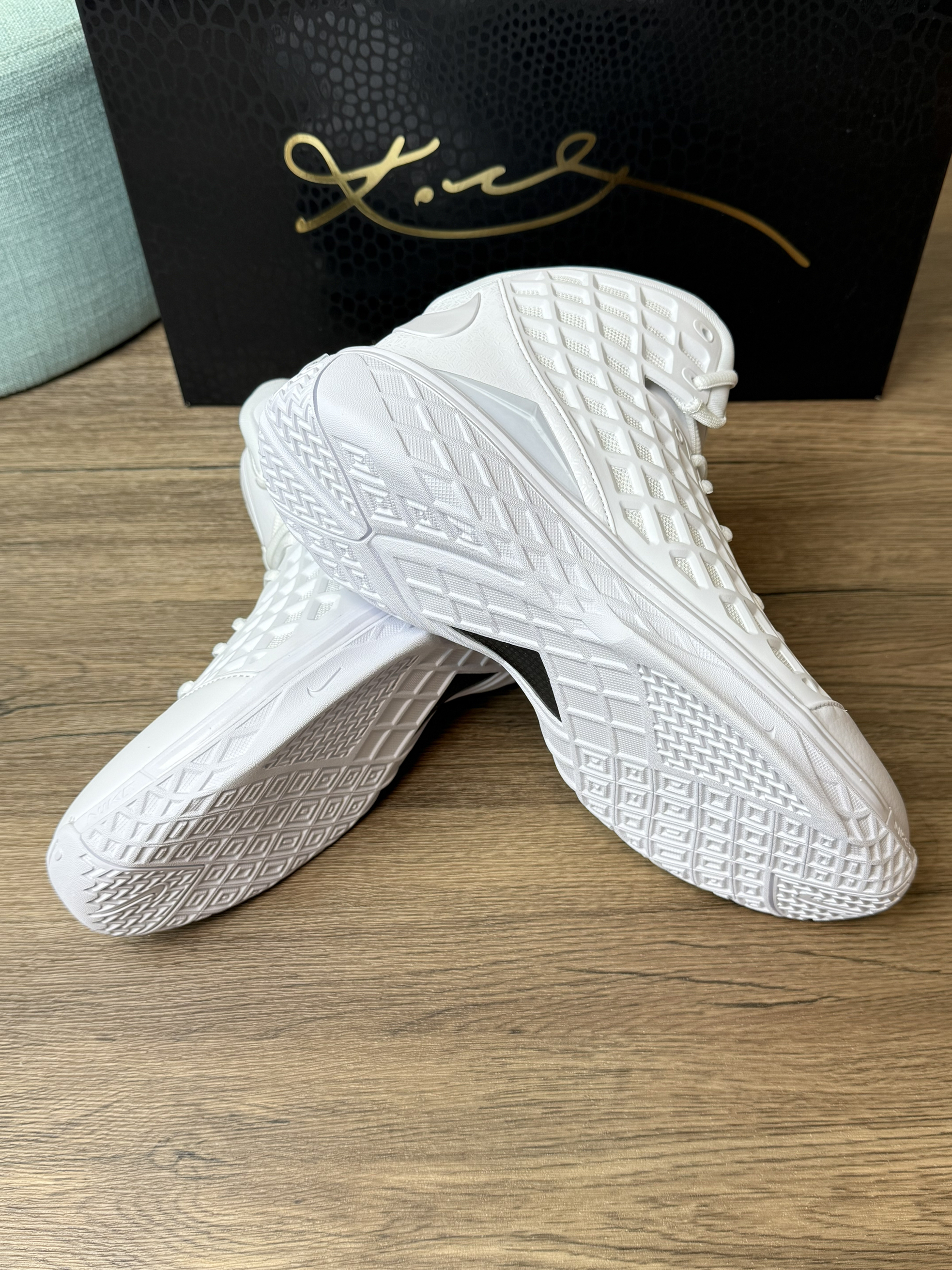 🤔最近刚入手了这款复刻回归的Kobe 3 “Halo”纯白配色,最令我纠结的是要不要拿来实战还是好好收藏起来? 🤨首先,我简单上脚了一下,颜值真的没得挑!极简全白皮革鞋身+网格状的TPU,干净又高级,上脚就是清爽复古范儿,搭配运动裤或牛仔裤都妥妥的帅。 😍其次,保留了3代原版的包裹感和贴地脚感,并且还升级了全掌的Zoom Strobel单元,启动快不拖沓。抓地力在线,急停变向稳得很。 🥰最后,缺点...
