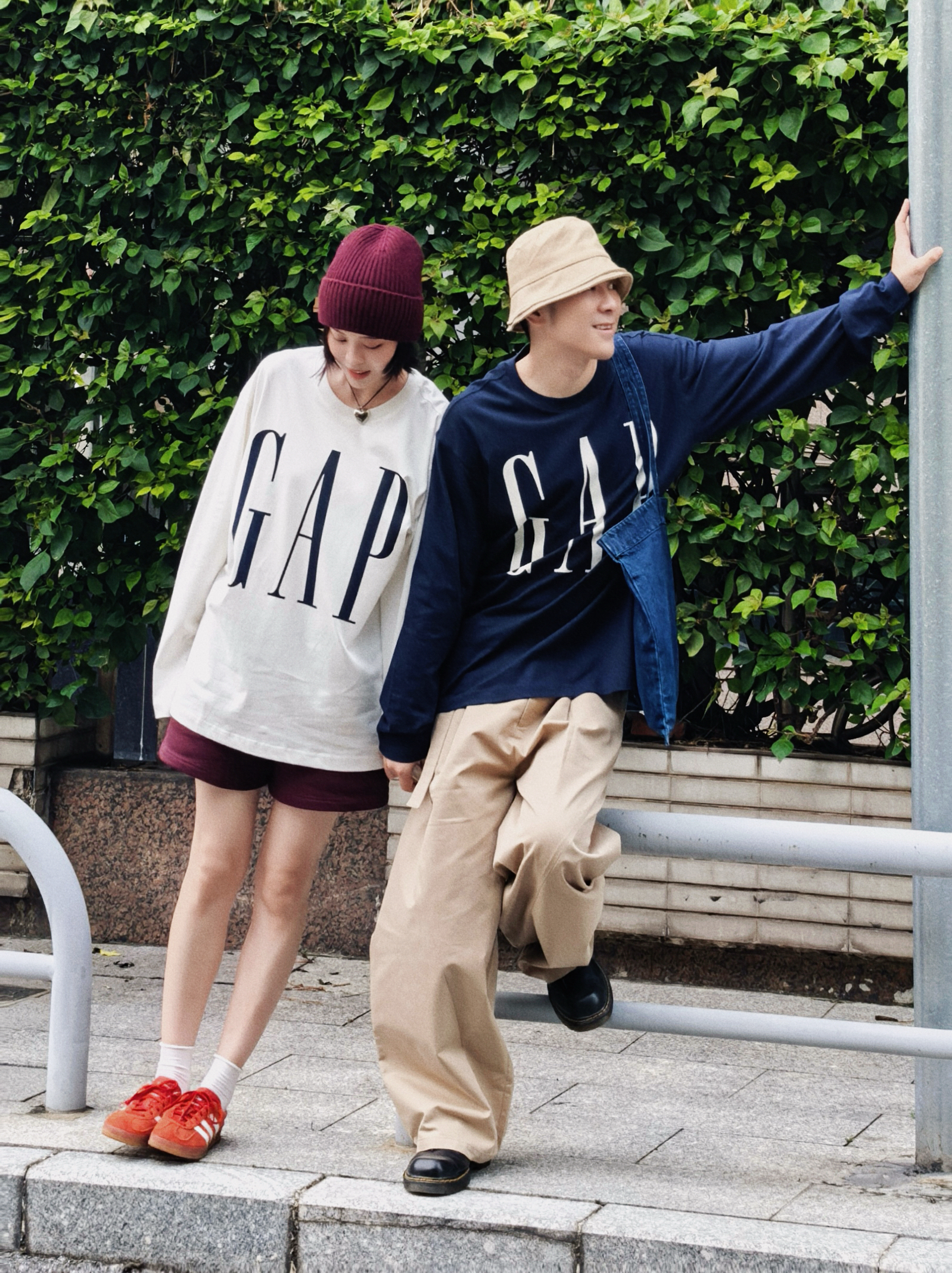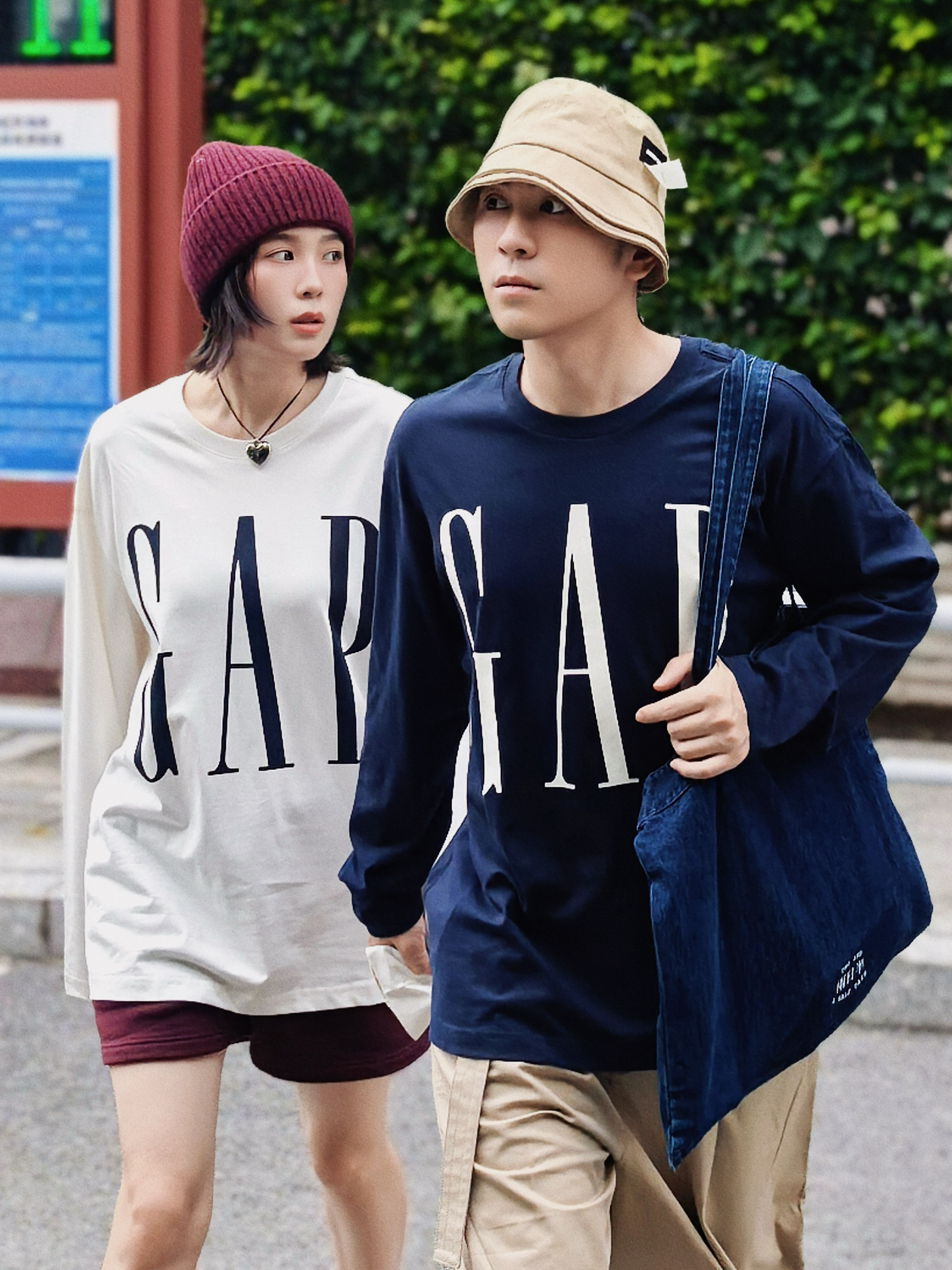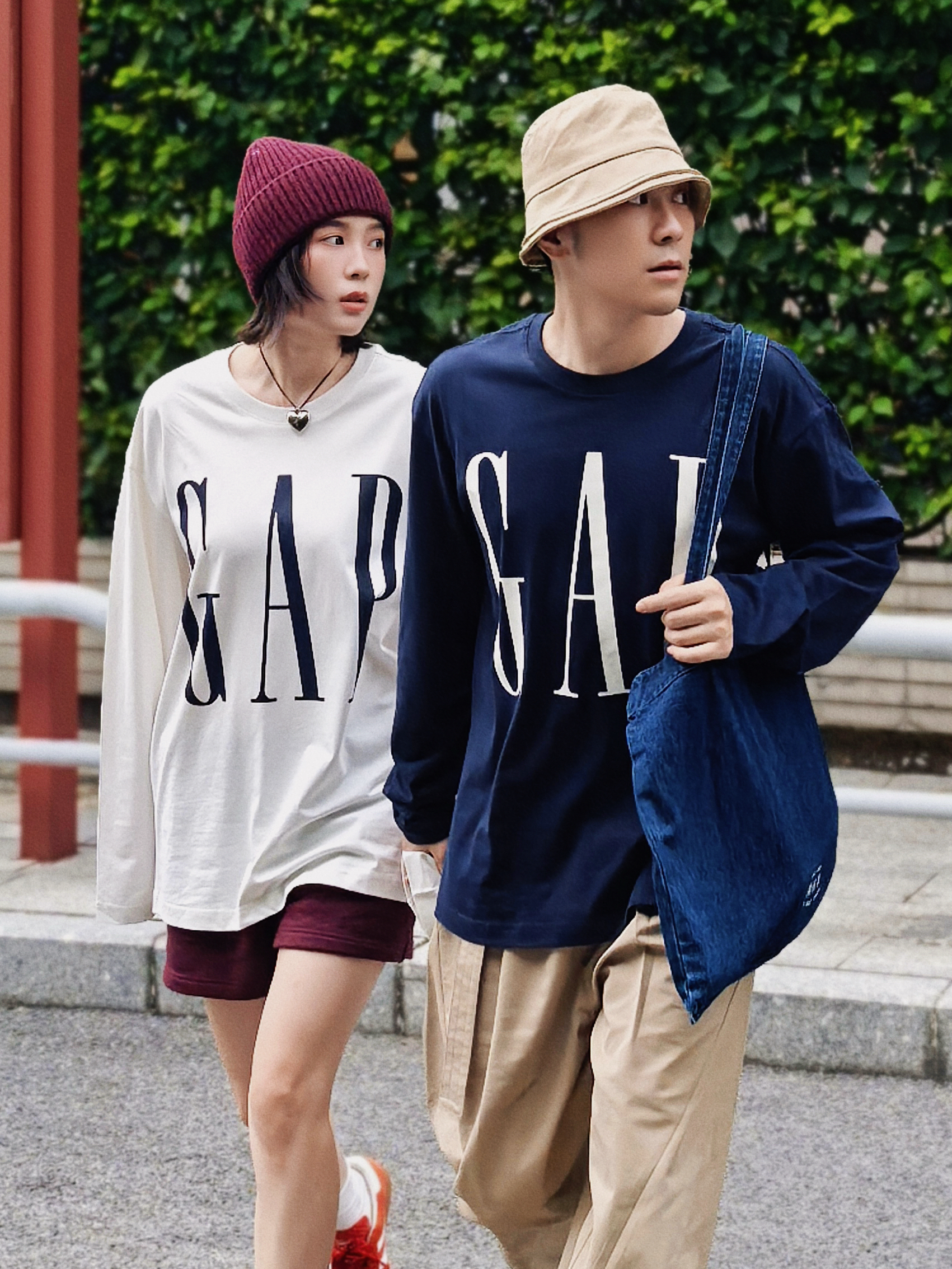 和你逛秋街 情侣穿搭甜过糖炒栗子 我的红帽戴着都藏不住笑意 他的卡其帽藏不住眼里的温柔 同系列GAP长袖T穿在身上 基础又个性不要太好搭配了 2个颜色都爱 成年人不做选择就都要了 原来喜欢一个人连逛马路的时光都那么快乐