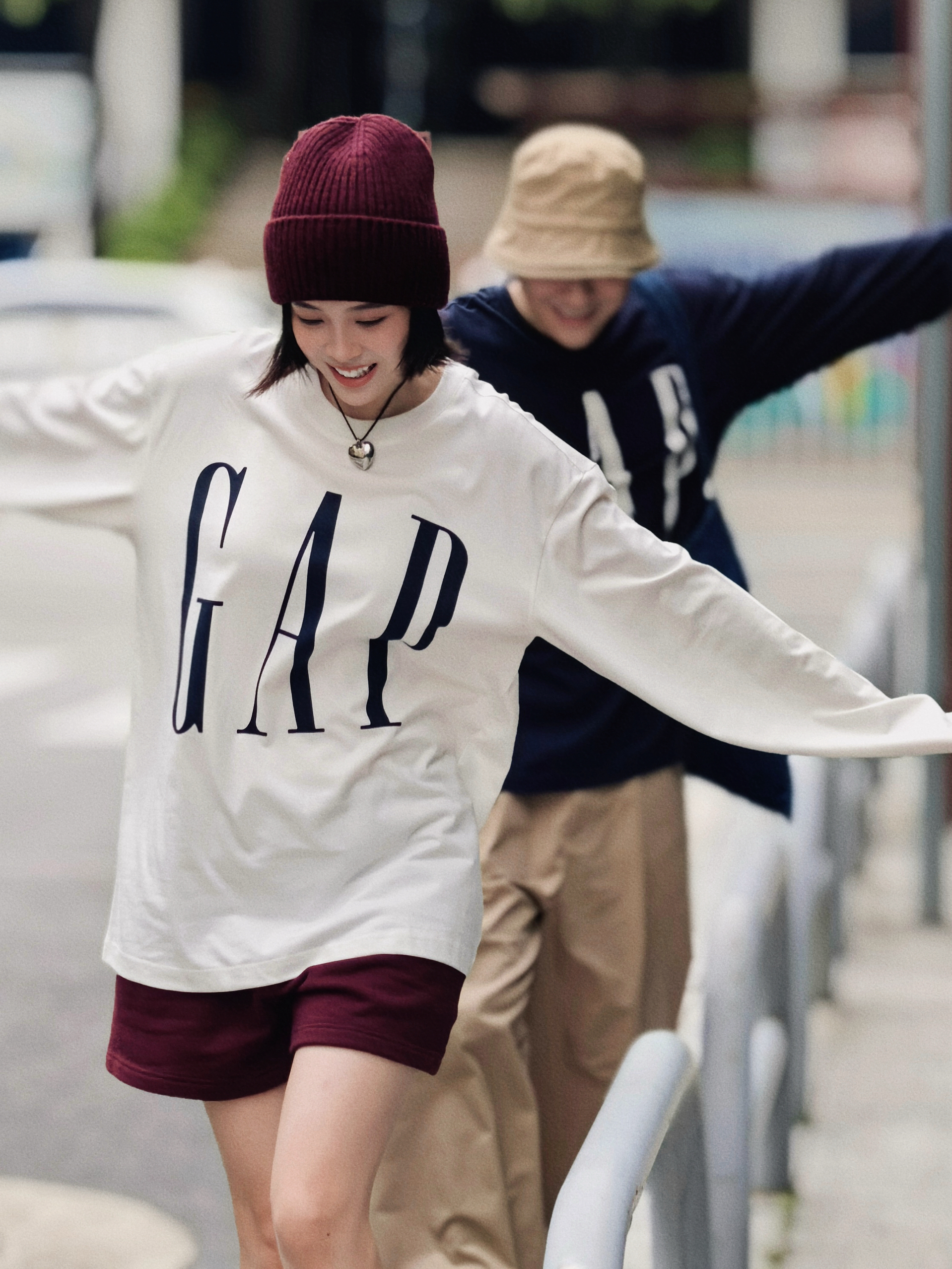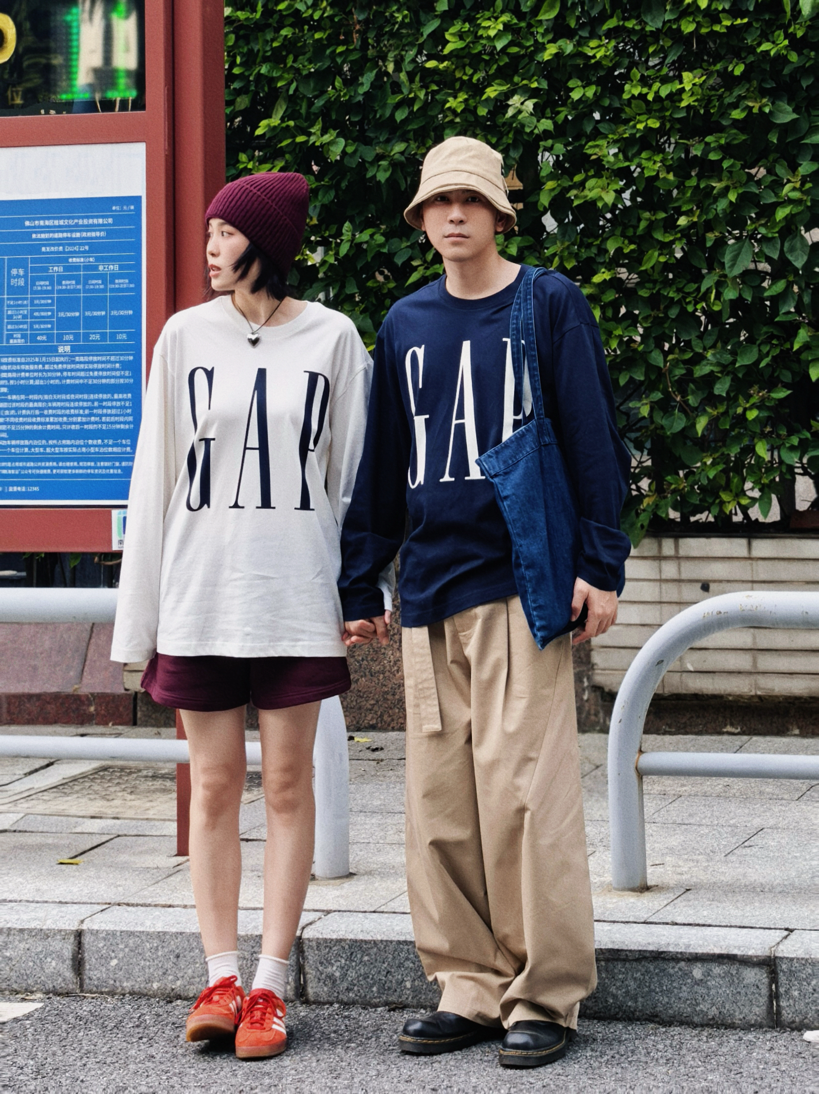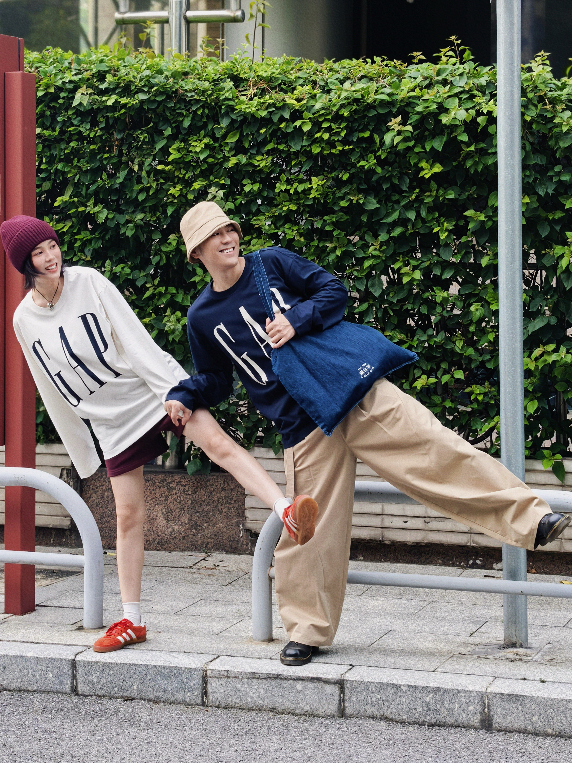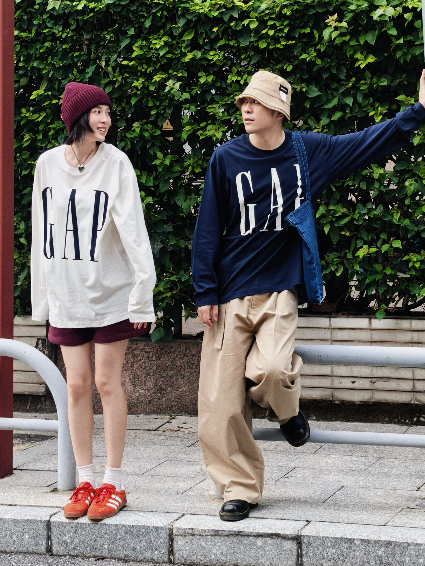 和你逛秋街 情侣穿搭甜过糖炒栗子 我的红帽戴着都藏不住笑意 他的卡其帽藏不住眼里的温柔 同系列GAP长袖T穿在身上 基础又个性不要太好搭配了 2个颜色都爱 成年人不做选择就都要了 原来喜欢一个人连逛马路的时光都那么快乐