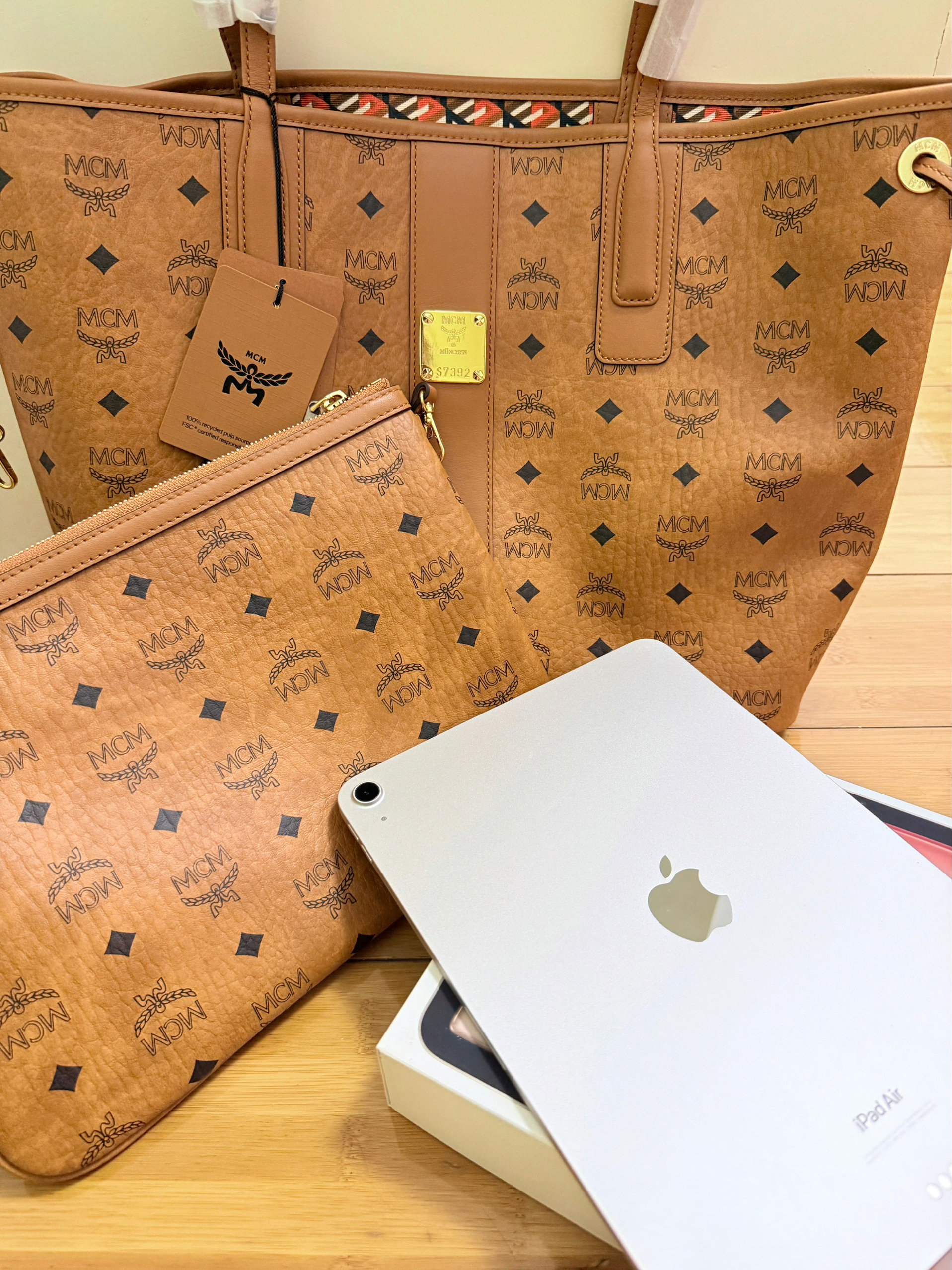 本篇笔记关联了MCM Liz Visetos 中号 通勤饰边涂层帆布纳帕皮革老花满印印花内衬大容量菜篮子子母托特包单肩手提包 棕色干邑色 、MCM Liz 小号 老花满印涂层双面内衬大容量人造革帆布饰边牛皮革菜篮子子母包大托特包手提单肩包 棕色/干邑色 等商品,为用户提供真实的使用体验和购买参考。