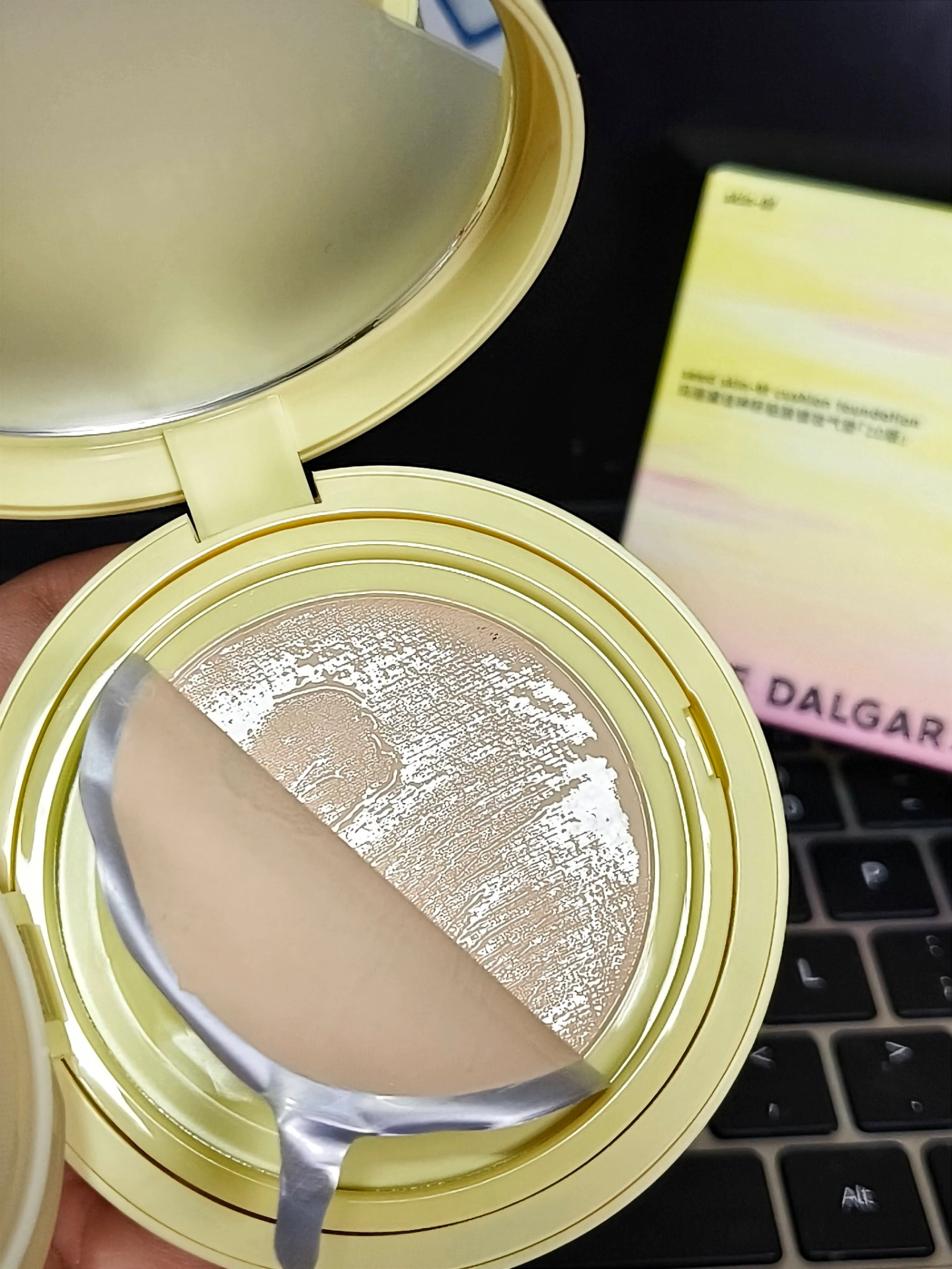我最近挖到宝啦👏!这气垫颜值好高,配色像夏日晚霞般绚烂~上脸效果真的不错👍,持妆好,防水还不咋脱妆,跟散粉搭配起来妆效超绝🥰。作为油皮的我用着很可,性价比满满。才十几分钟,我就快速拥有了好气色💯。不过,里面的粉扑会让盖子不太合得紧😕。适合学生党、上班族日常用~