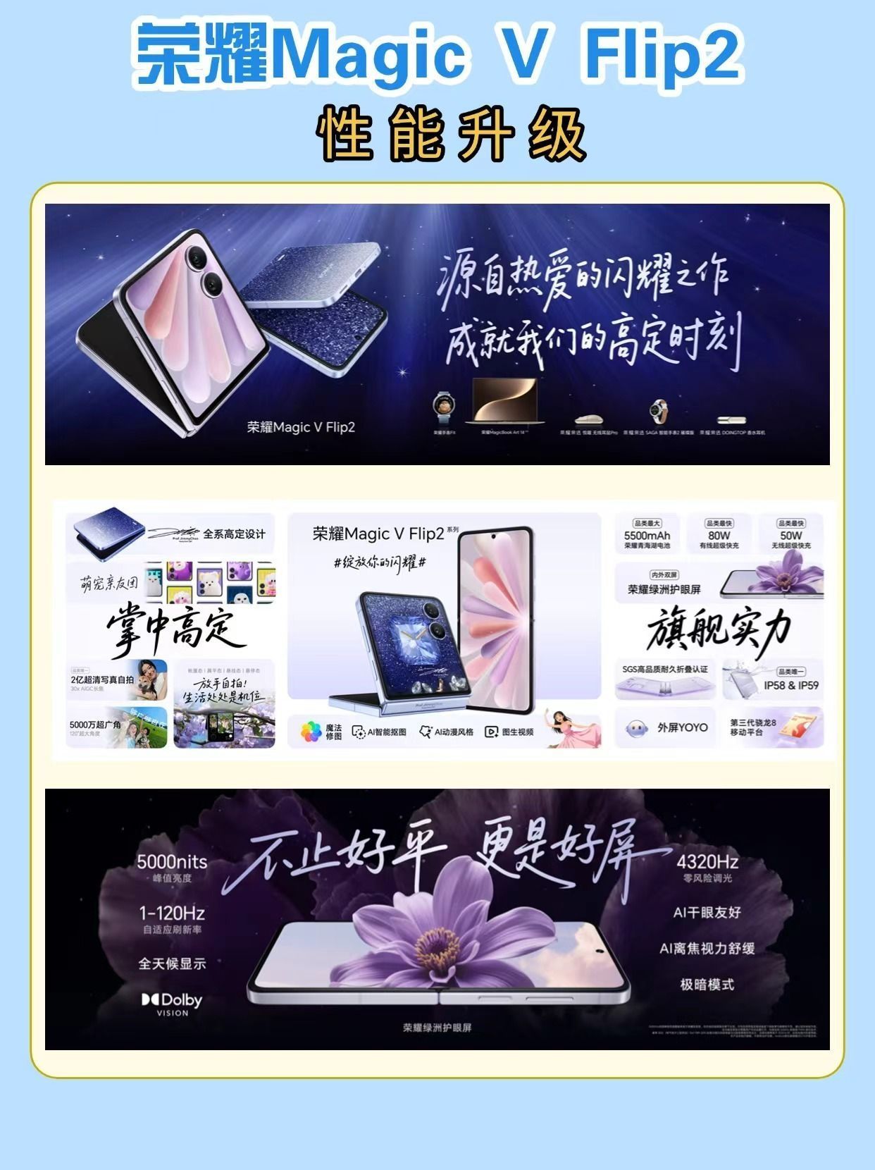 本篇笔记关联了HONOR/荣耀 Magic V Flip2 5G 折叠屏手机 5500mAh青海湖电池 120HZ刷新率 2亿像素主摄 全网通 超清 快充 晨曦紫、HONOR/荣耀 Magic V Flip2 5G 折叠屏手机 5500mAh青海湖电池 120HZ刷新率 2亿像素主摄 全网通 超清 快充 织梦蓝等商品,为用户提供真实的使用体验和购买参考。