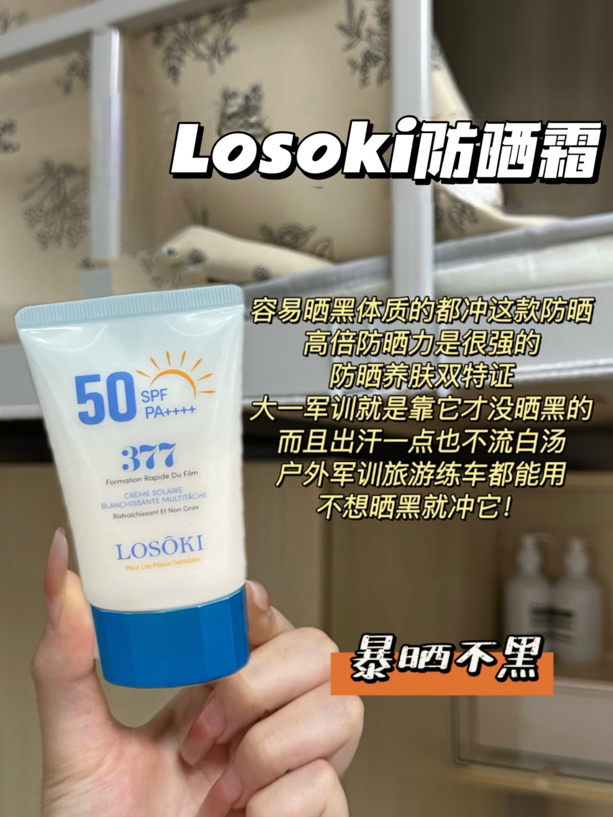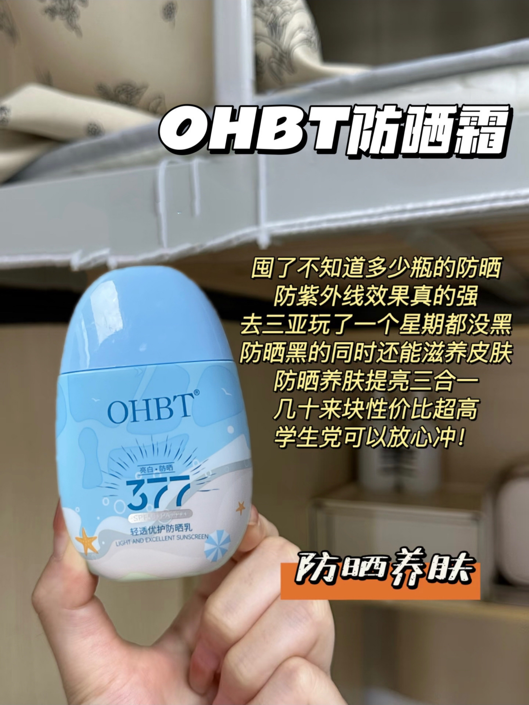 本篇笔记关联了LOSOKI(美妆) 377防晒霜 SPF50/PA++++ 50倍防紫外线面部身体美白 清爽防汗、laroche posay/理肤泉 大哥大防晒霜 抗光老隔离轻盈 有香型50ml SPF50+/PA++++、OHBT 轻透优护防晒乳 SPF50+/PA++++ 滋润等商品,为用户提供真实的使用体验和购买参考。