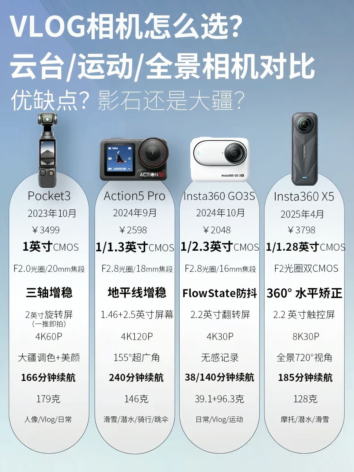 本篇笔记关联了DJI/大疆 OSMO Pocket 3 手持云台相机 便携 美颜 摄像 横竖拍 旋转屏 vlog 标准套装、DJI/大疆 Osmo Action 5 Pro 运动相机 户外摩托骑行潜水徒步 vlog相机 便携式 超旗舰画质 电子防抖 旅拍 畅拍套装等商品,为用户提供真实的使用体验和购买参考。